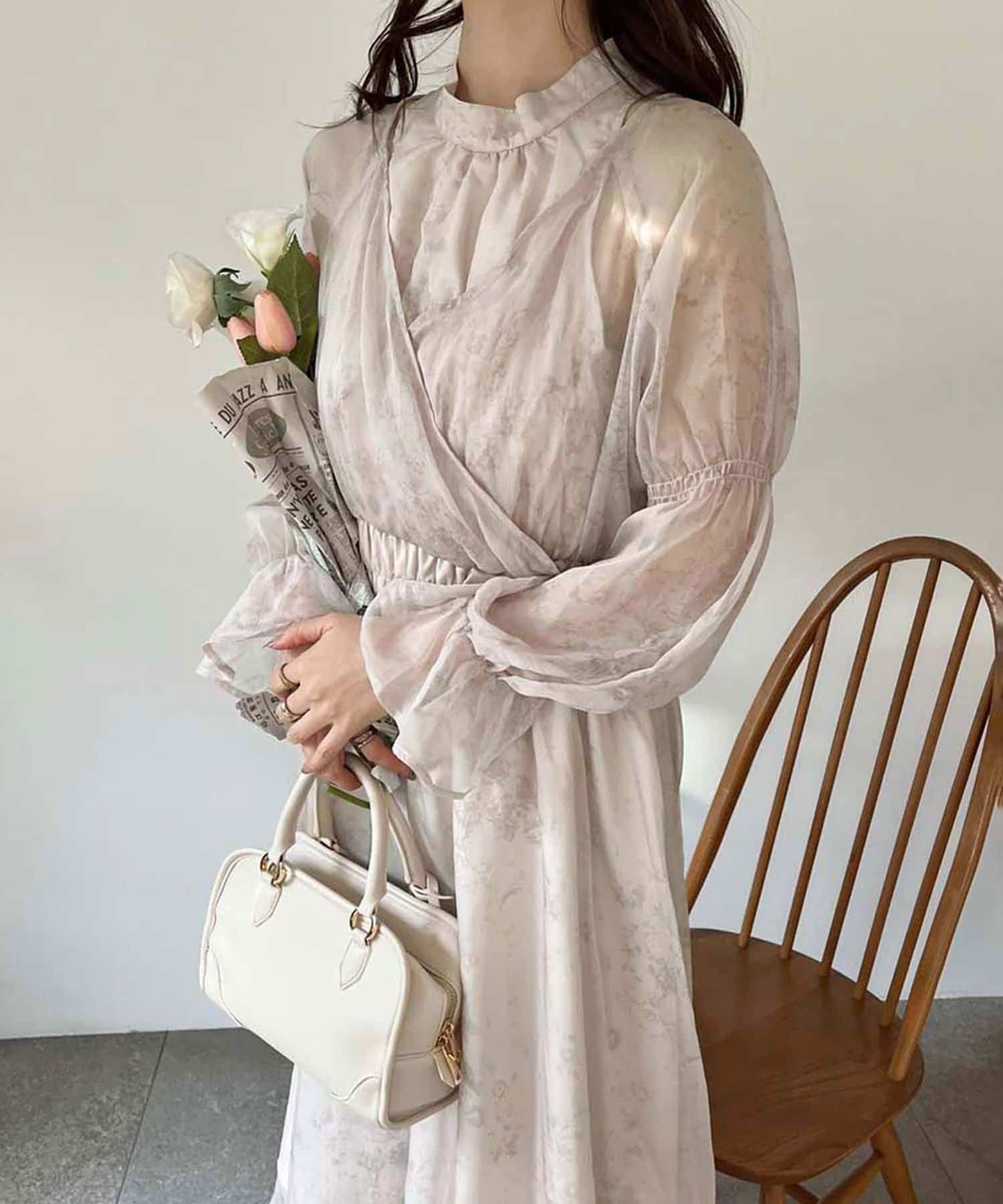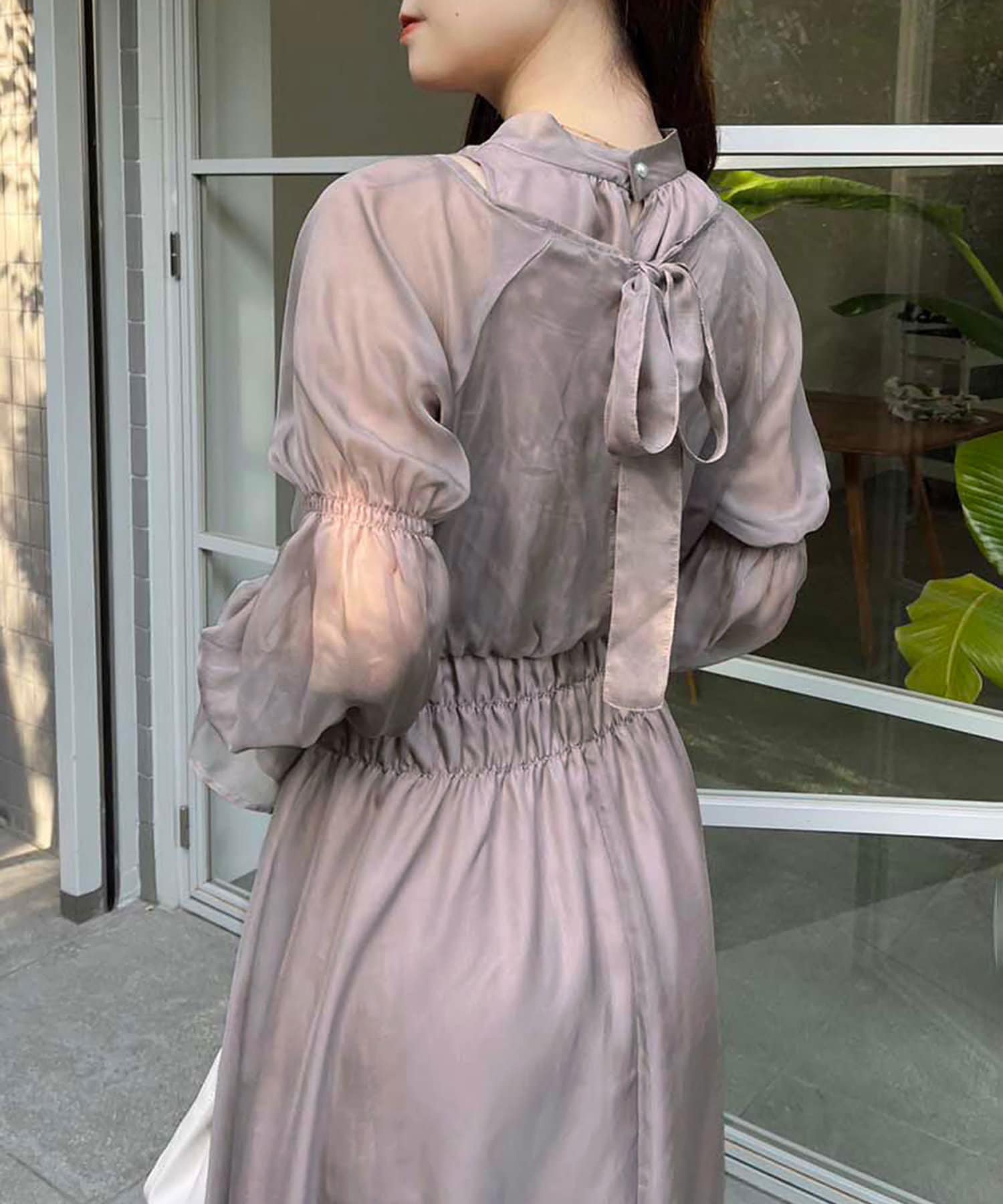 袖にもシャーリング加工を施し、ふんわりとしたシルエットもポイント。