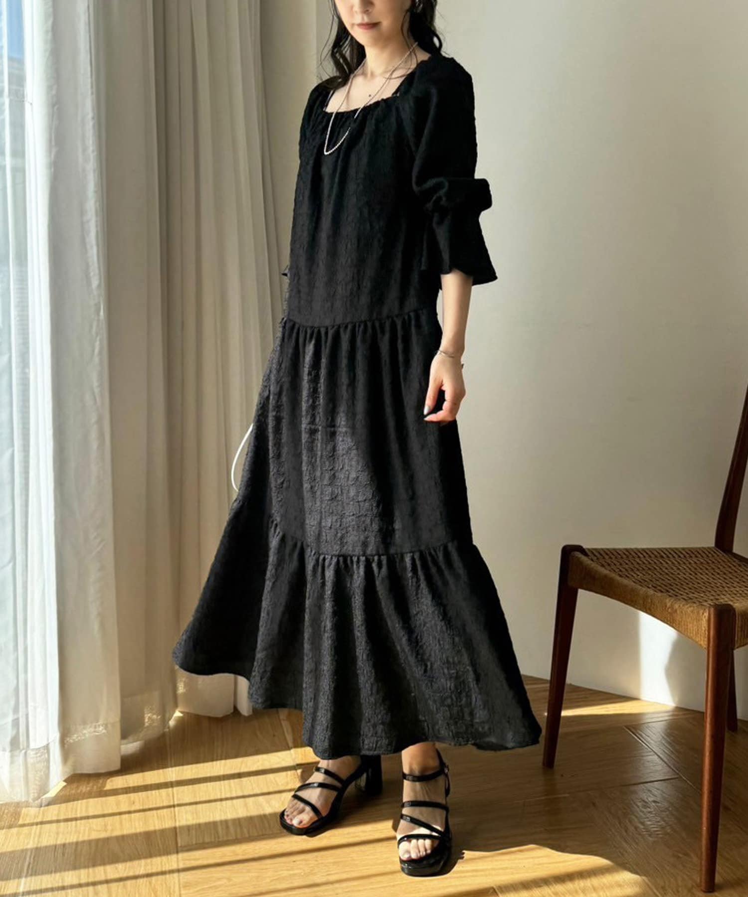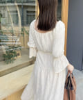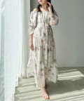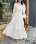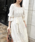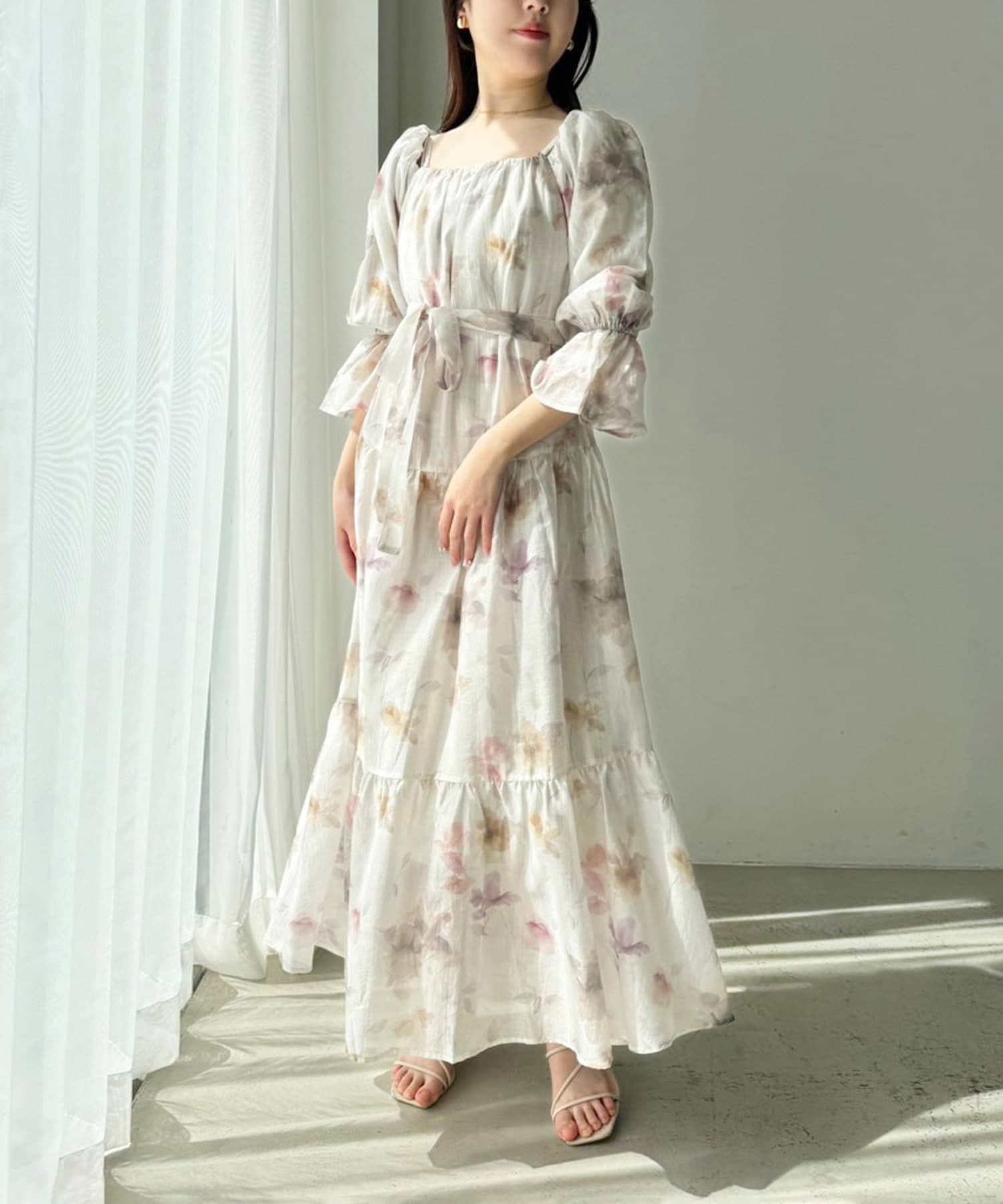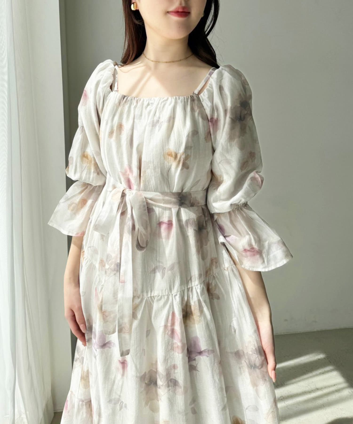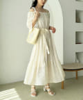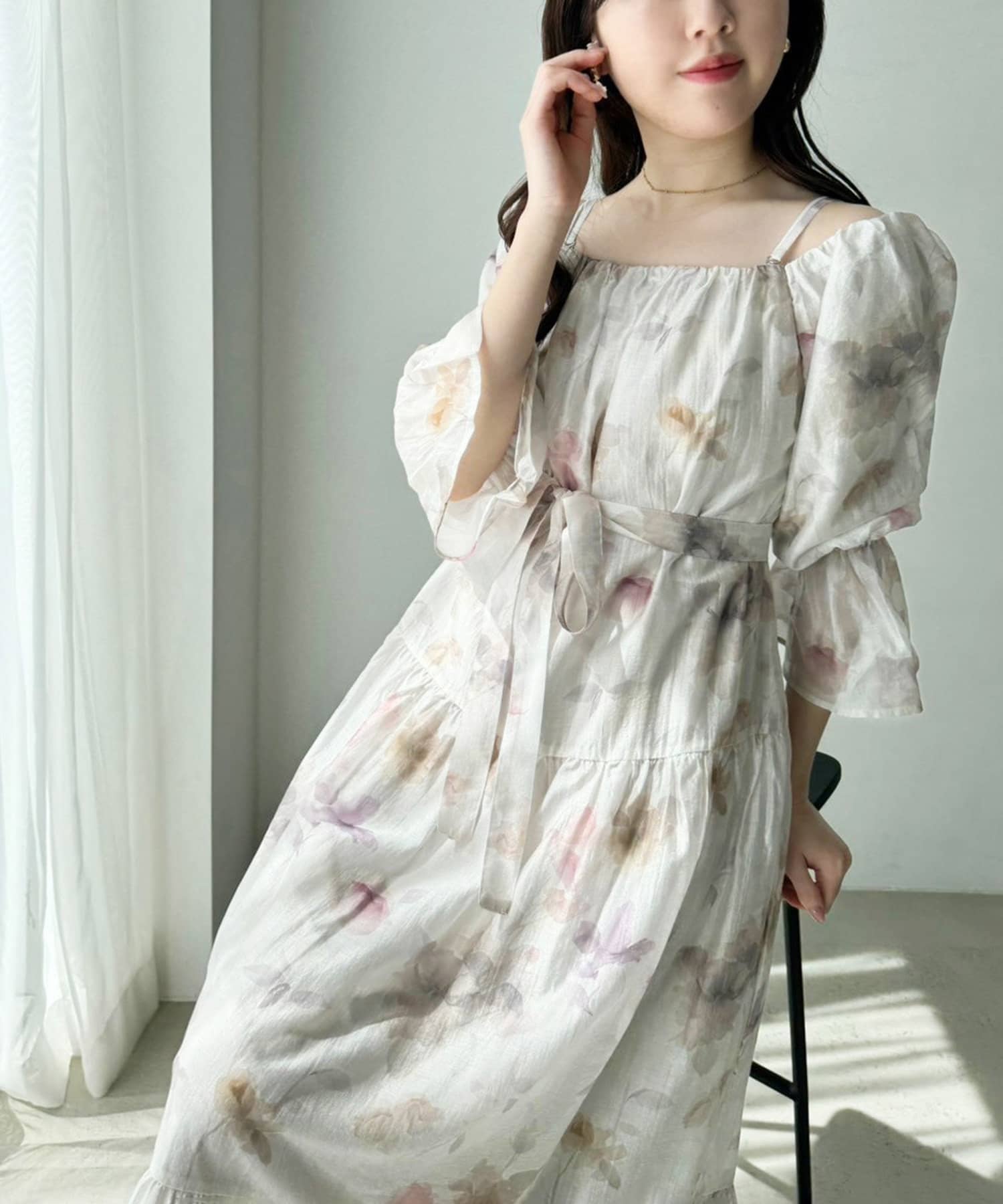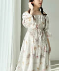 ボリュームスリーブが女性らしい印象のフレアワンピース