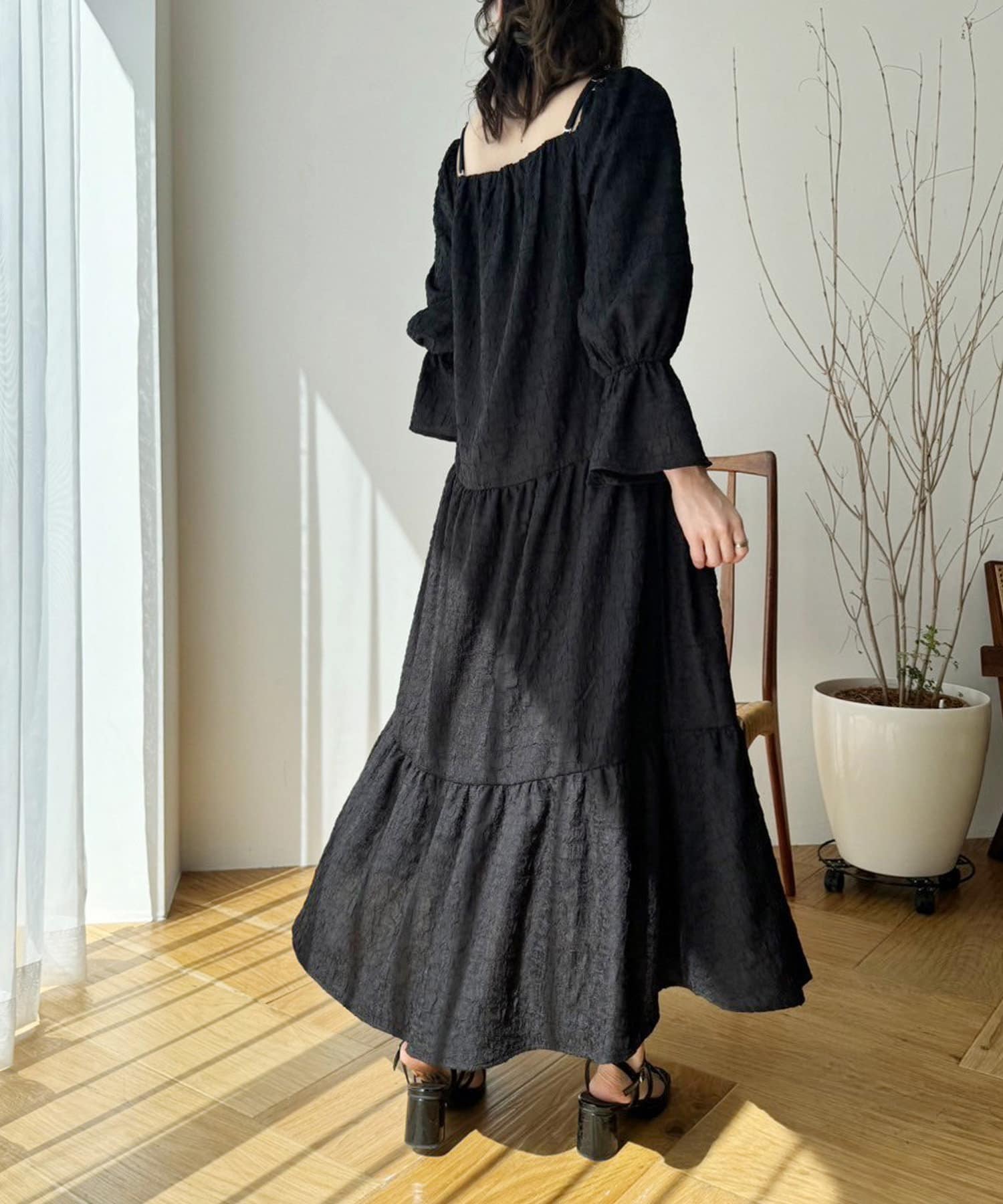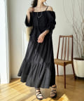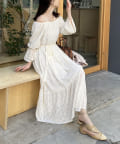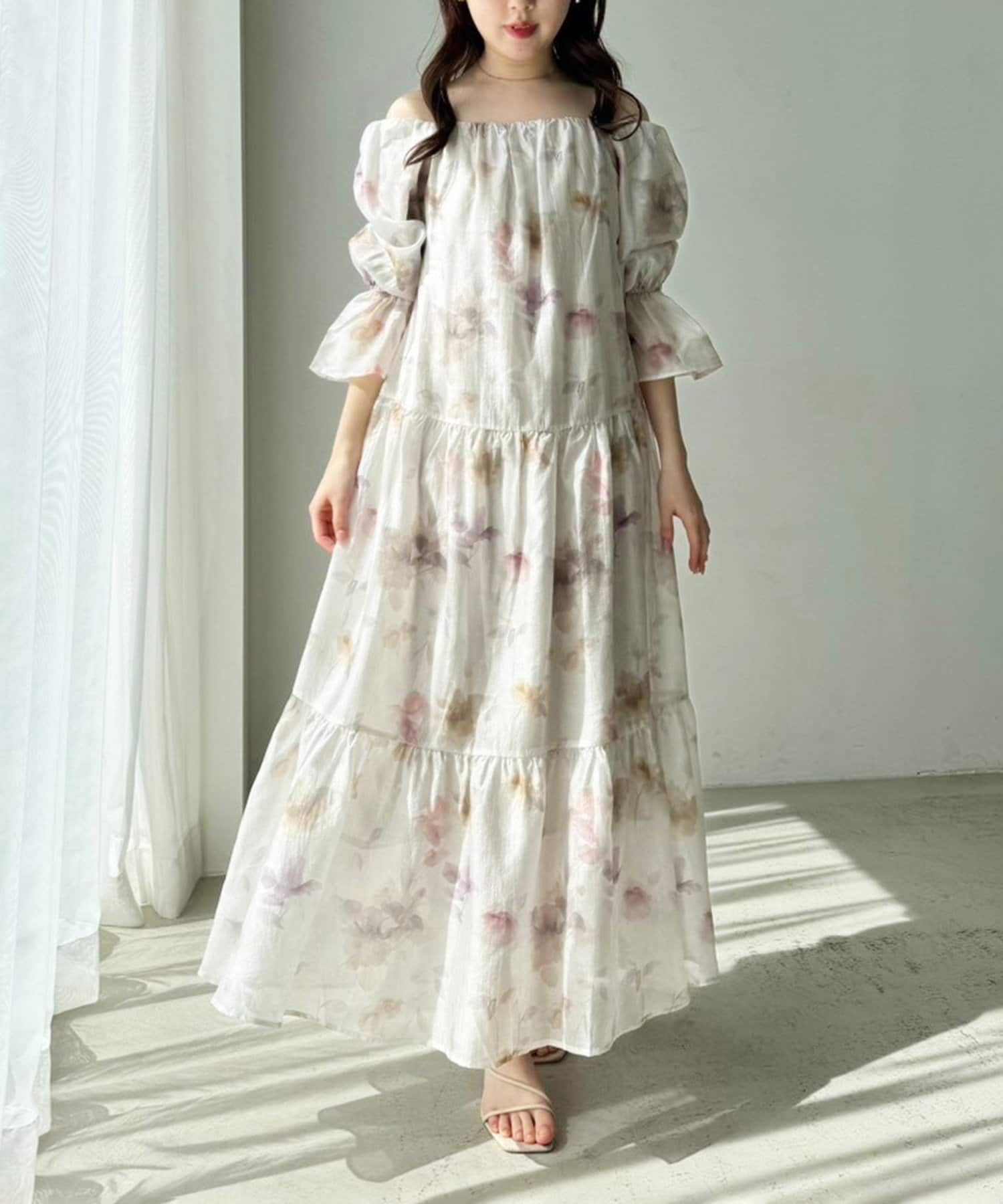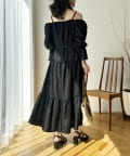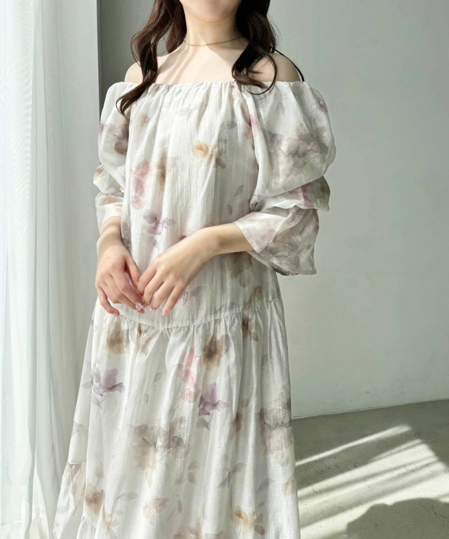 ボリュームスリーブが女性らしい印象のフレアワンピース
