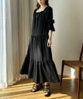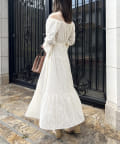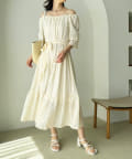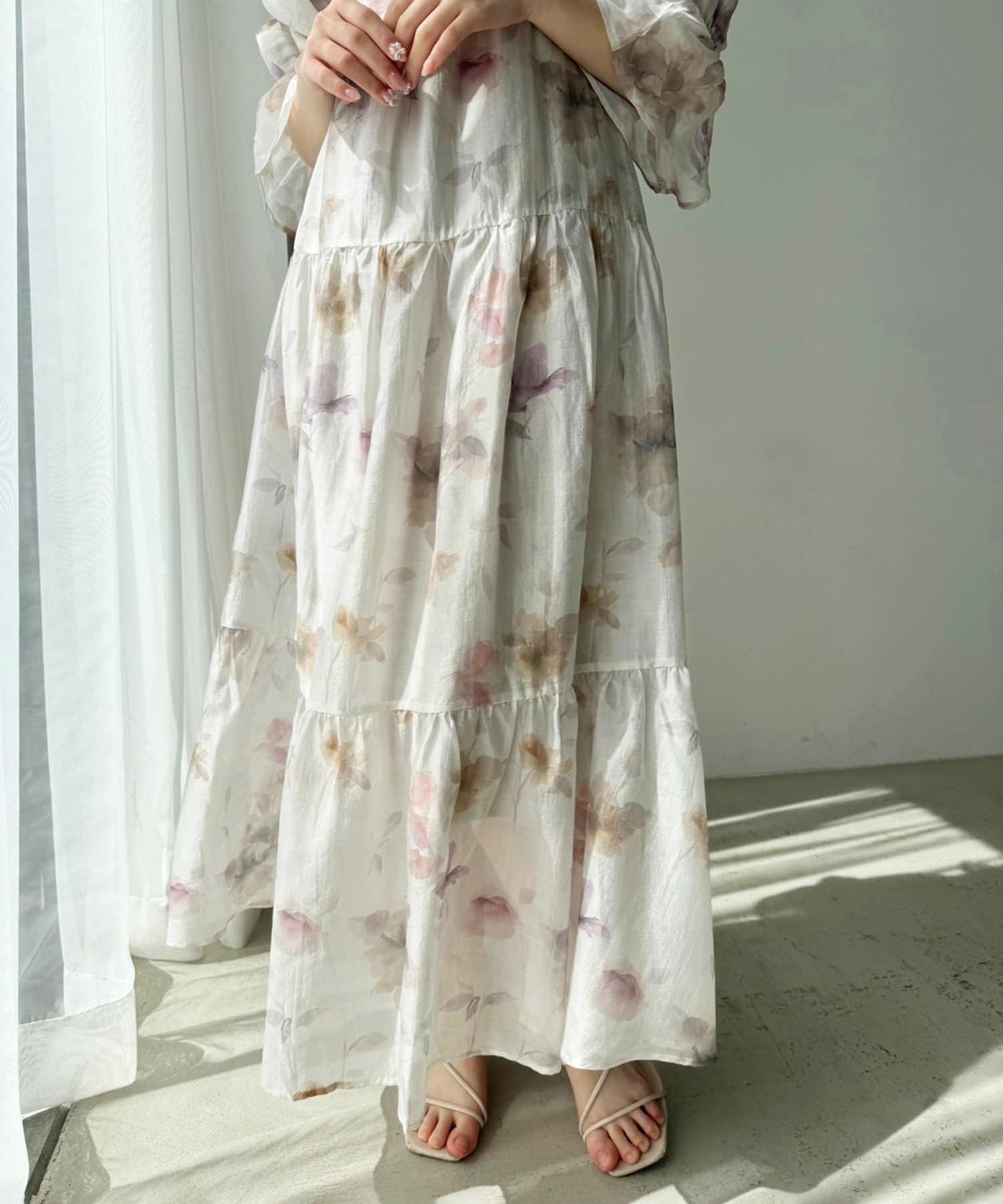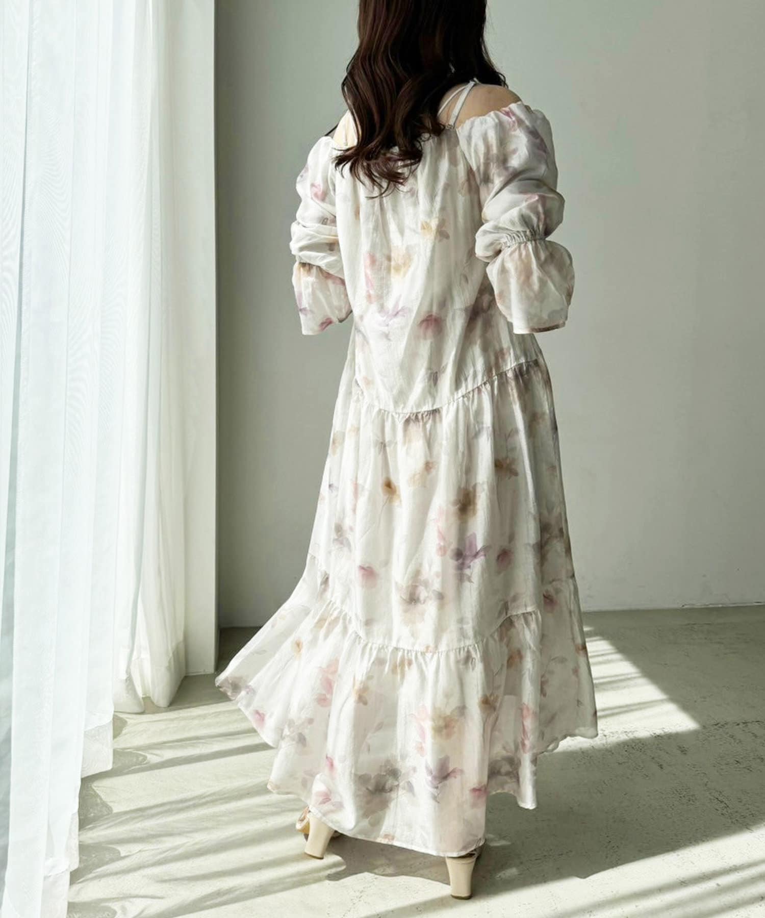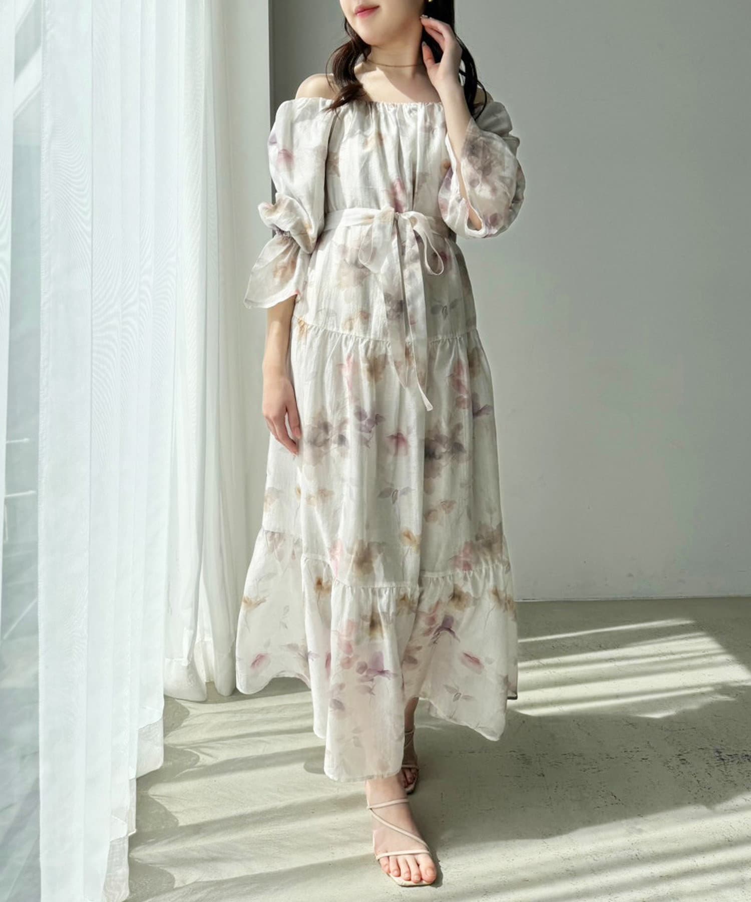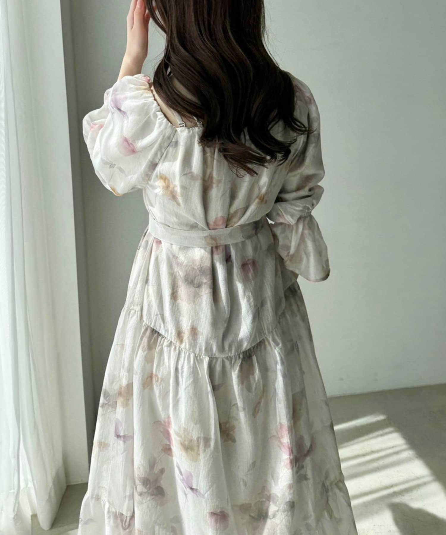 ボリュームスリーブが女性らしい印象のフレアワンピース