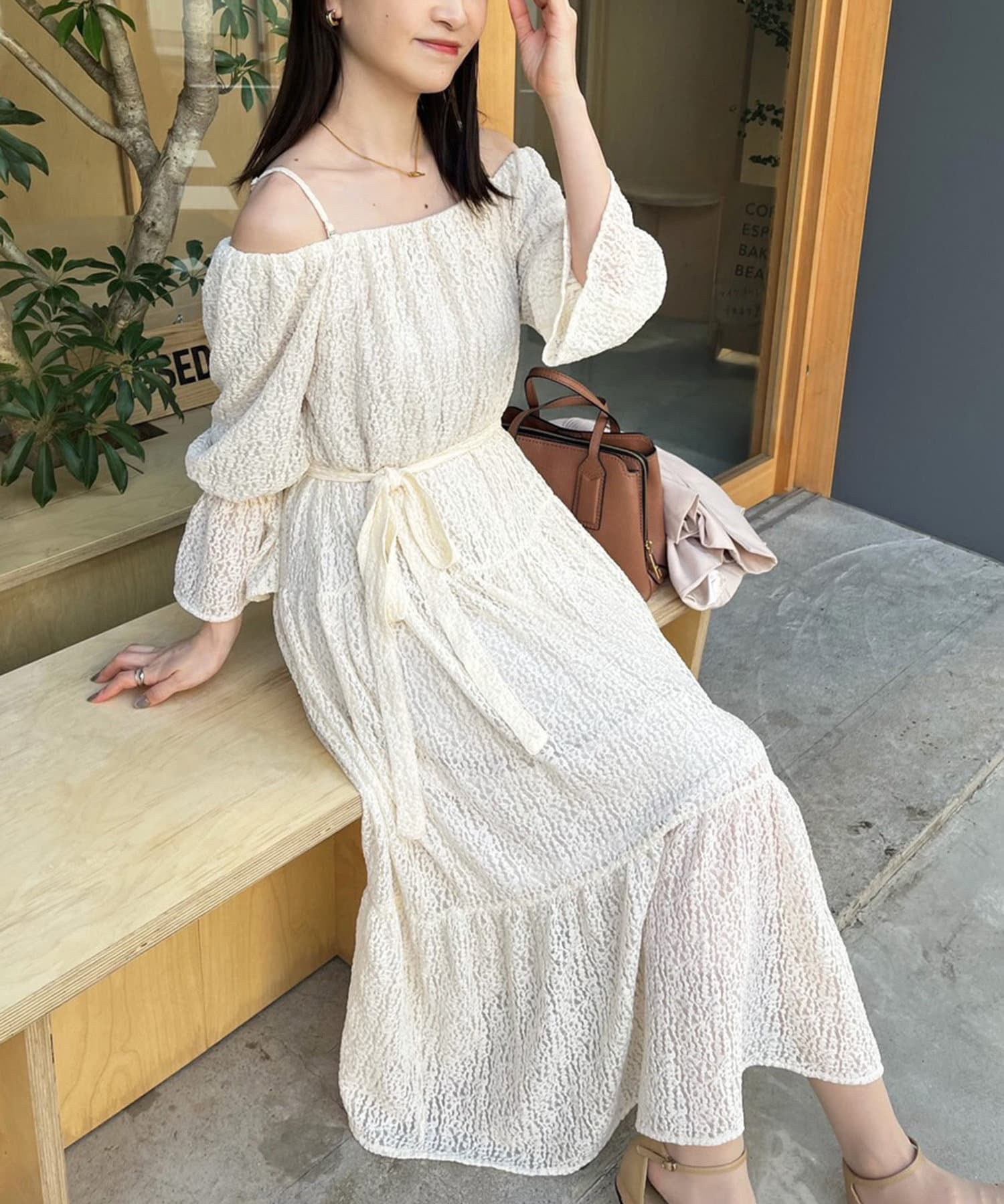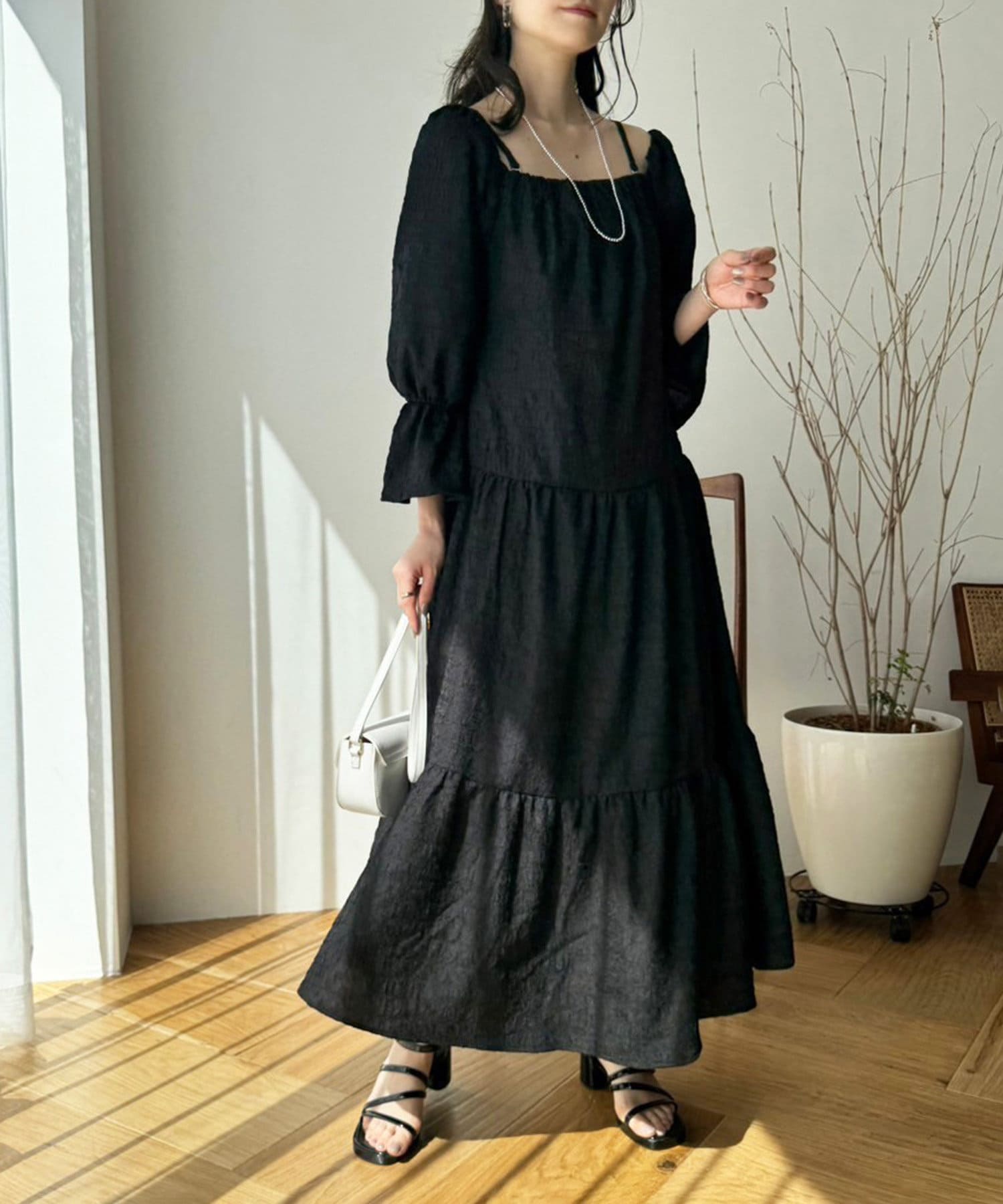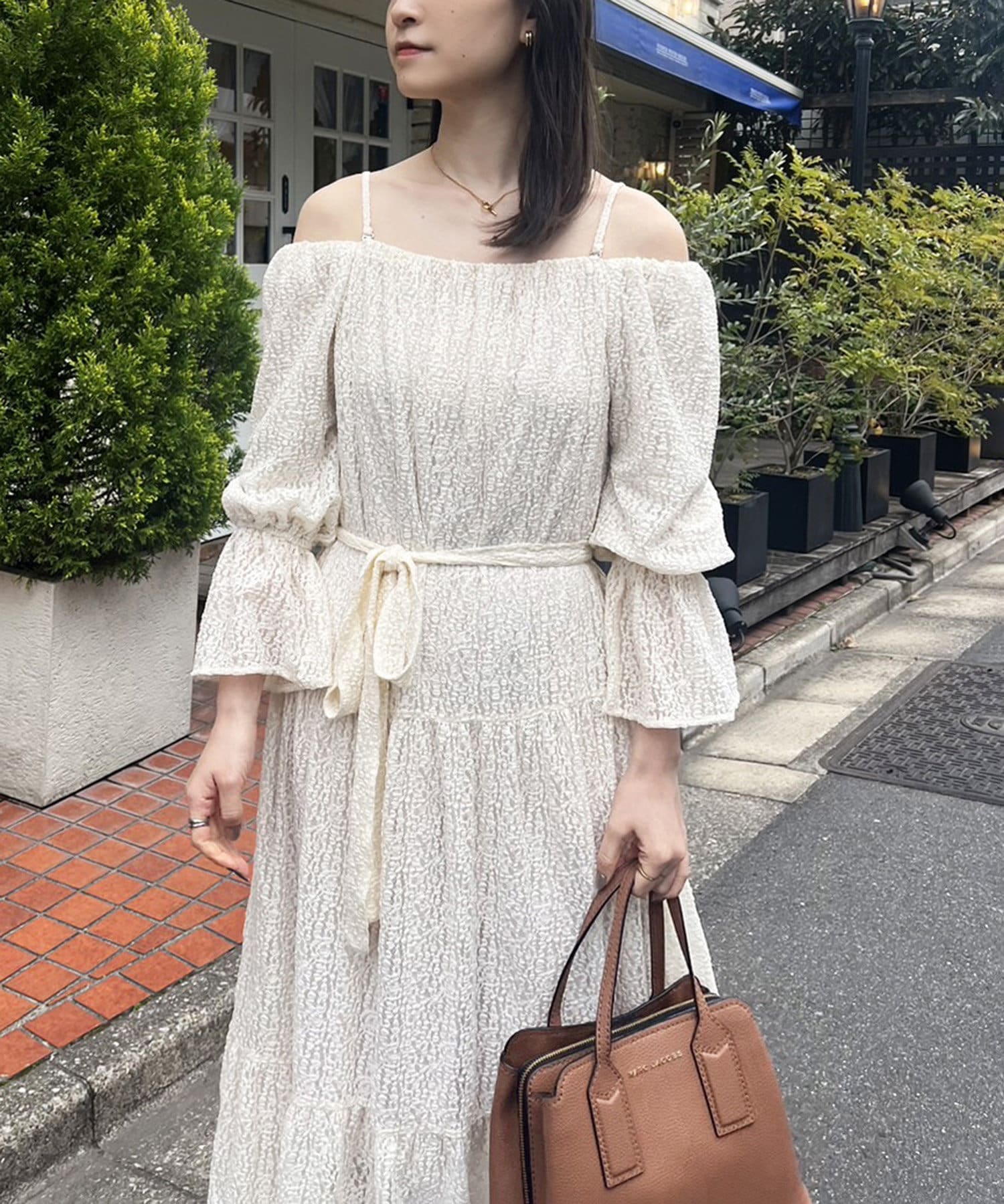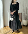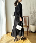女性らしいデザインのワンピ―スなので、小ぶりなバックで華奢感ある印象に。