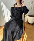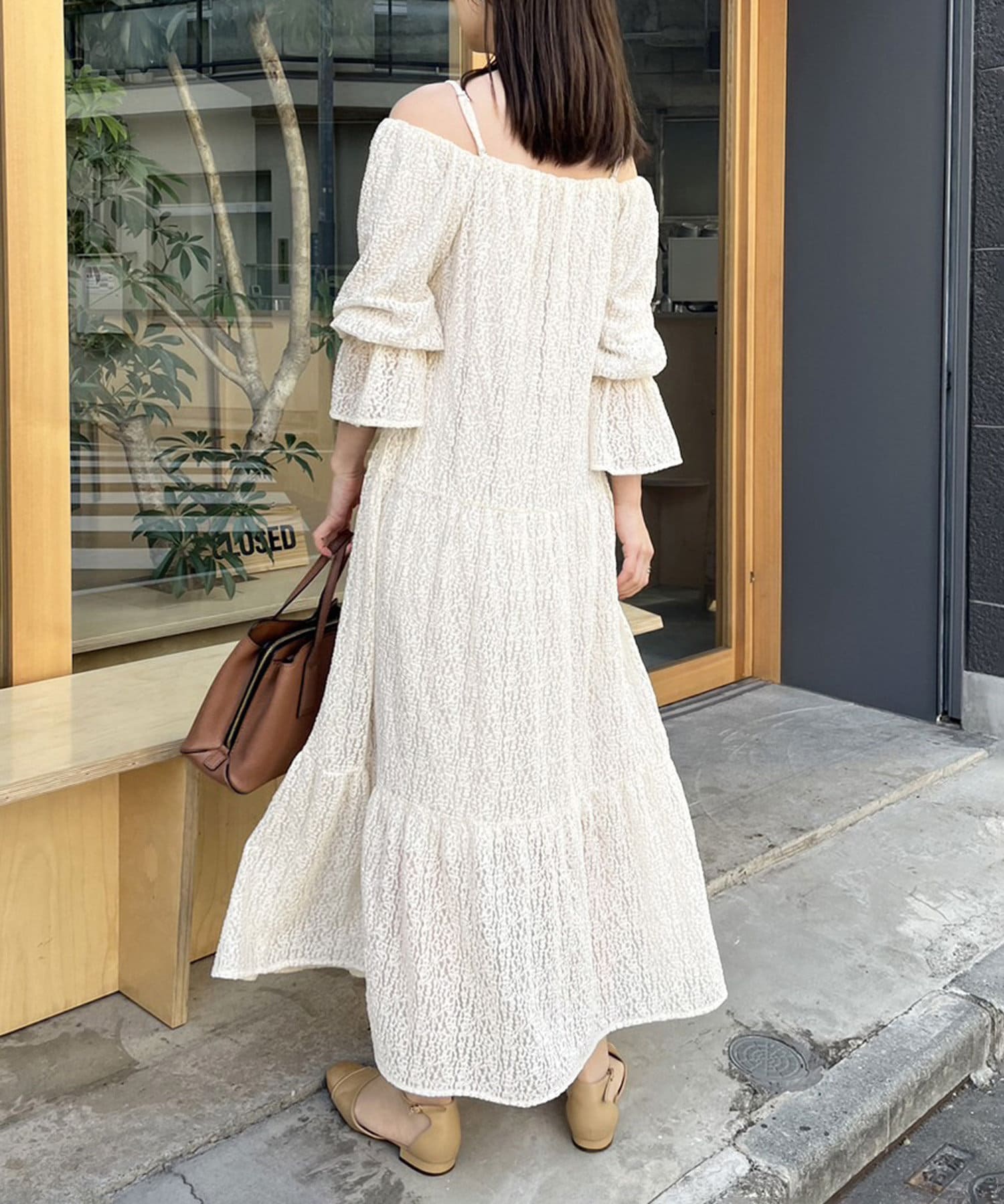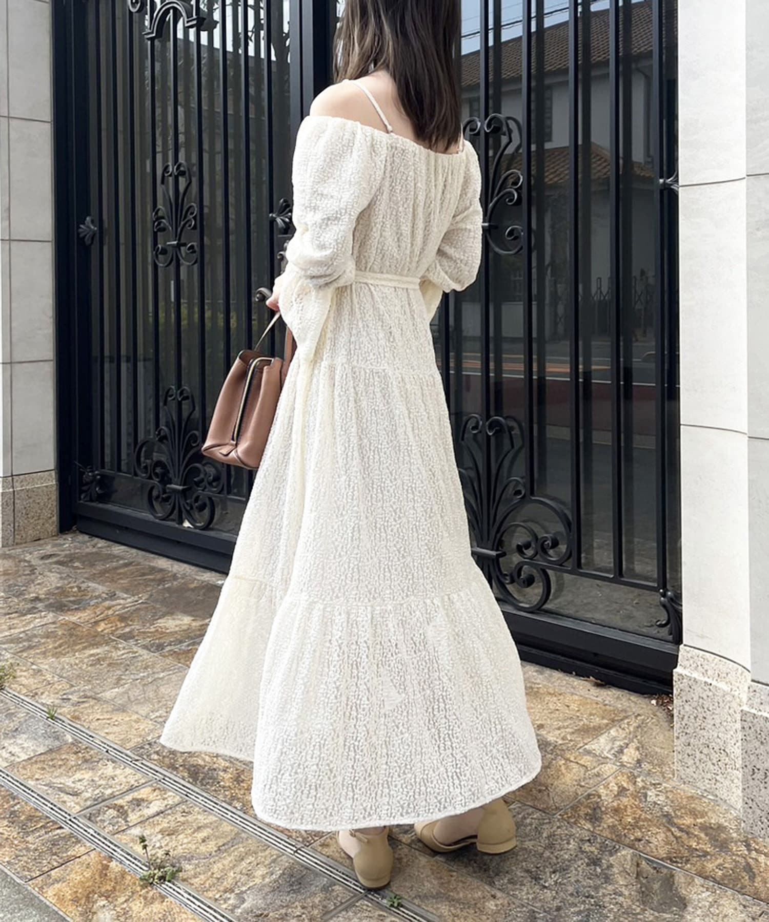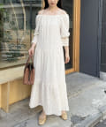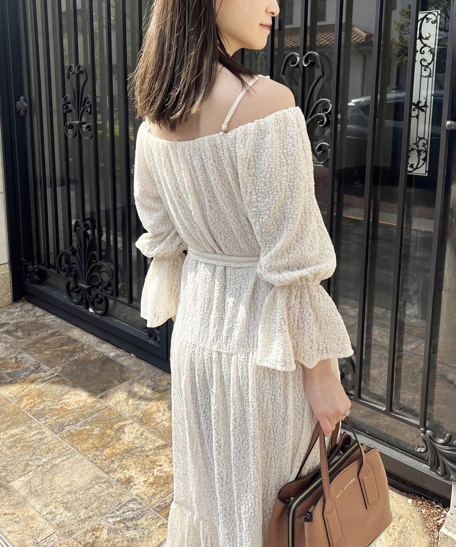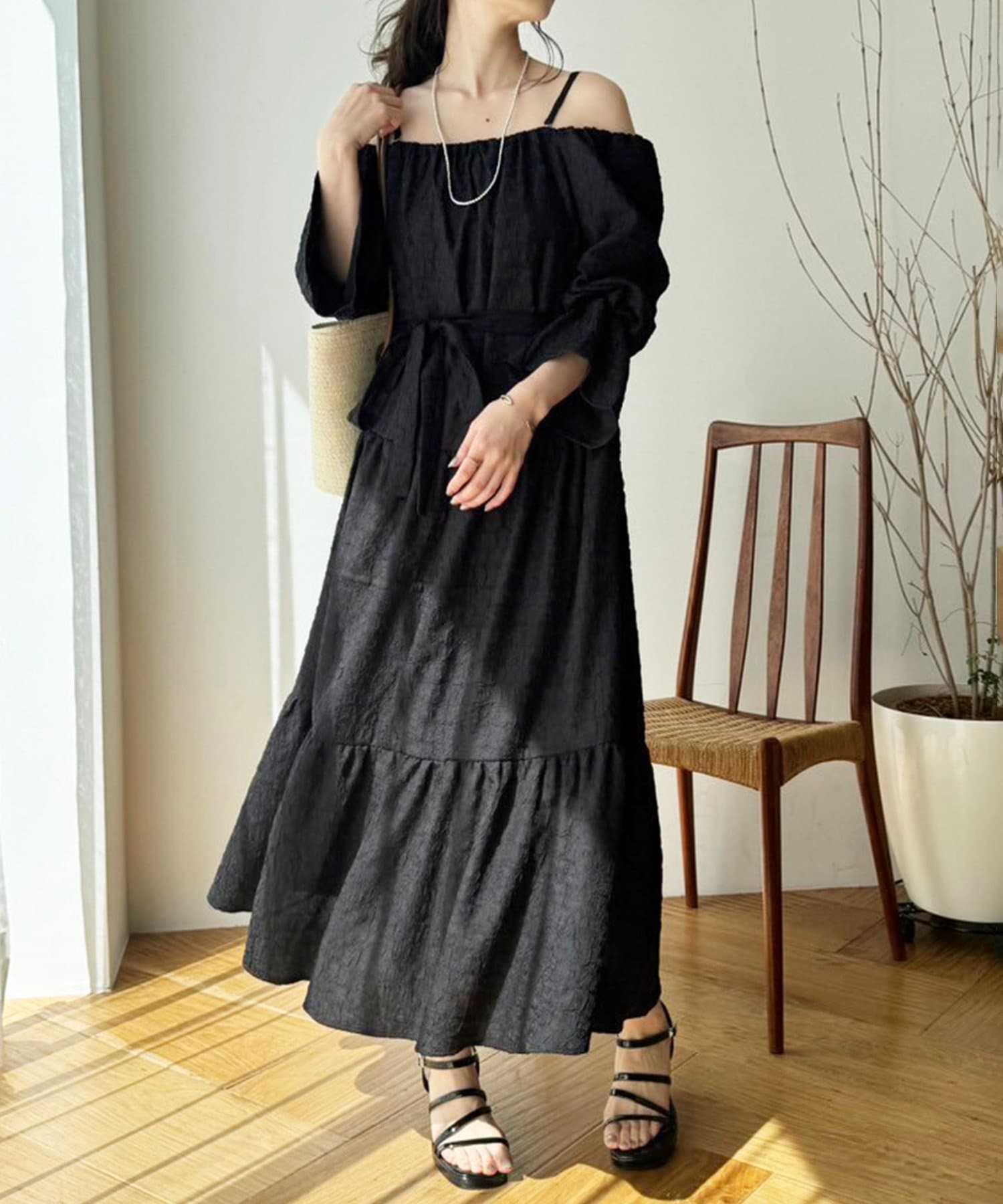 女性らしいデザインのワンピ―スなので、小ぶりなバックで華奢感ある印象に。