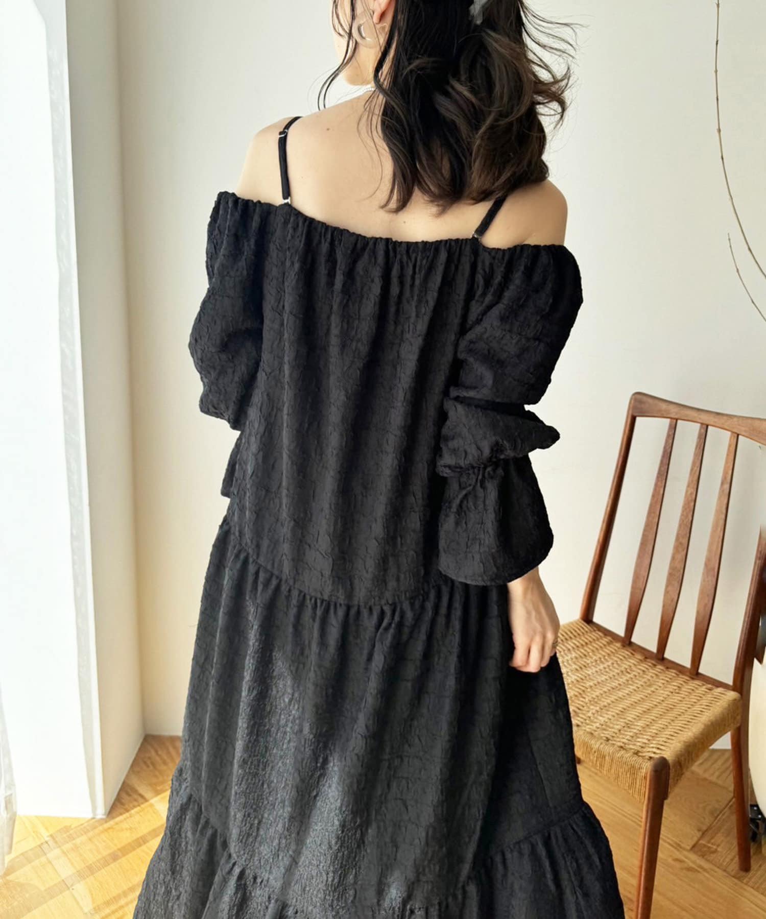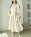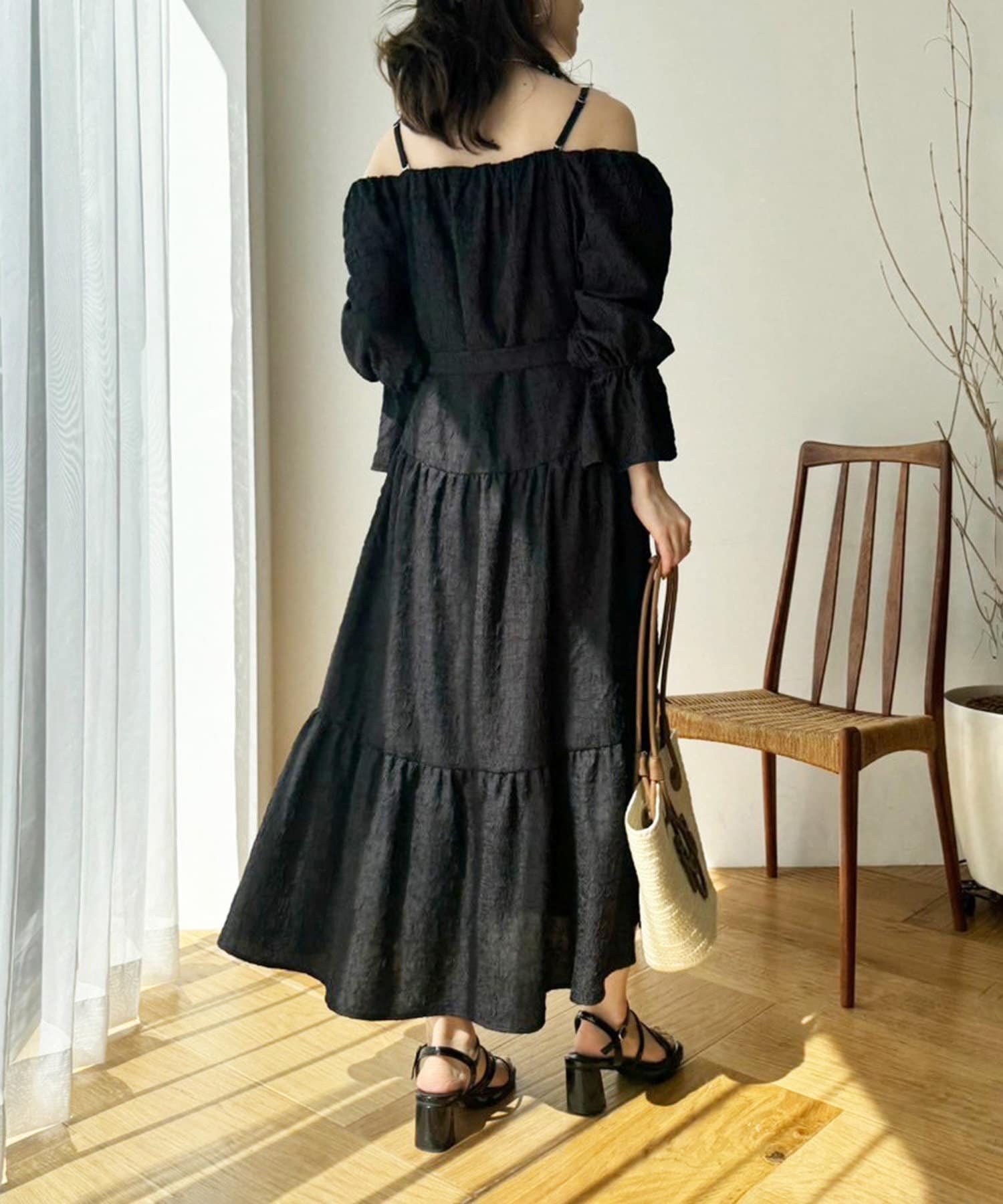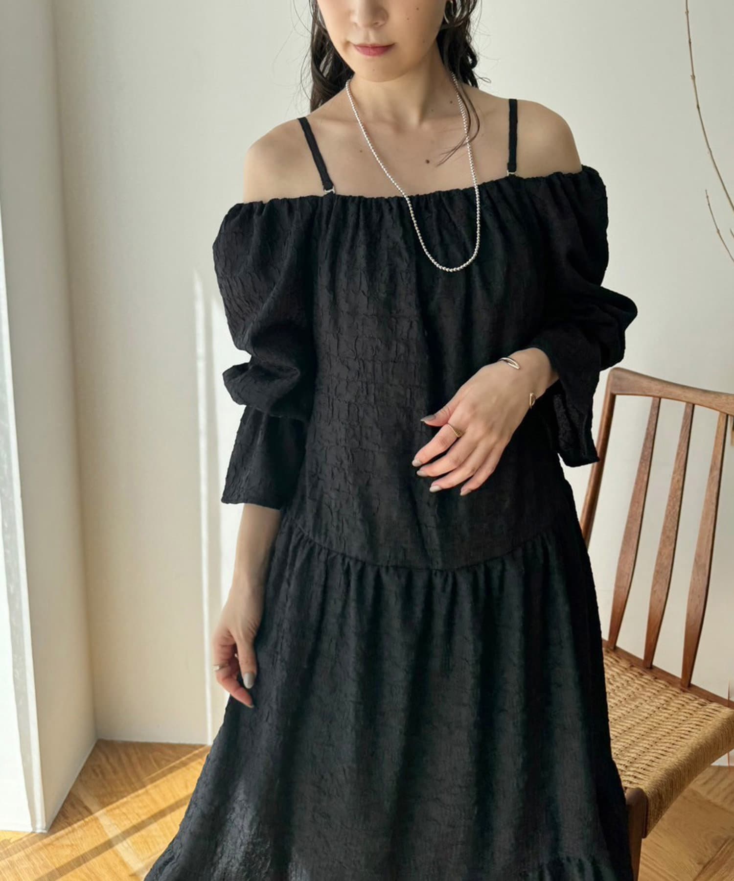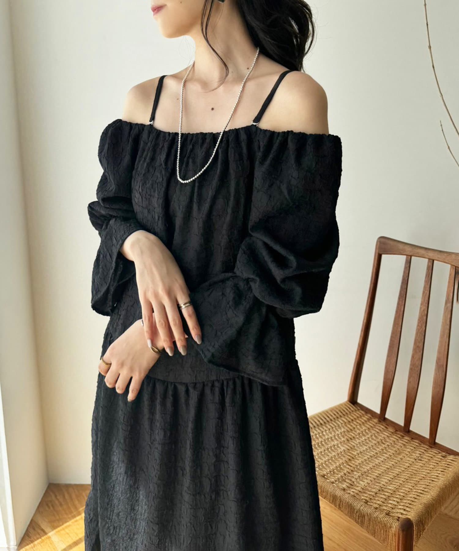 肩部分にはゴムが入っておりオフショルに着こなすことも可能です。
