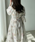ワンピース 長袖 きれいめ 春 黒 白 花柄 ロング レディース ママコーデ