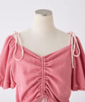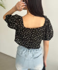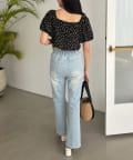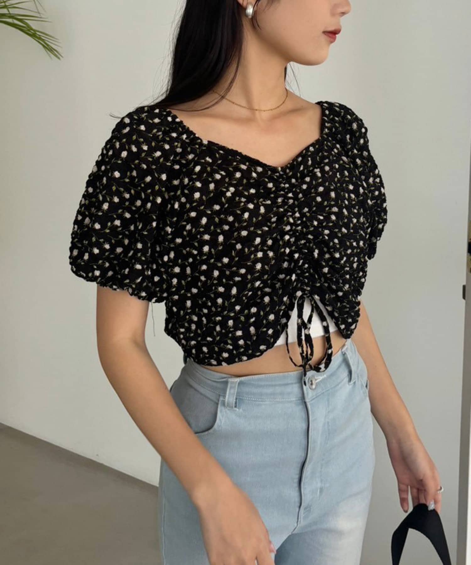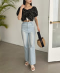 トップスはコンパクトなクロップド丈で足長効果を演出します。