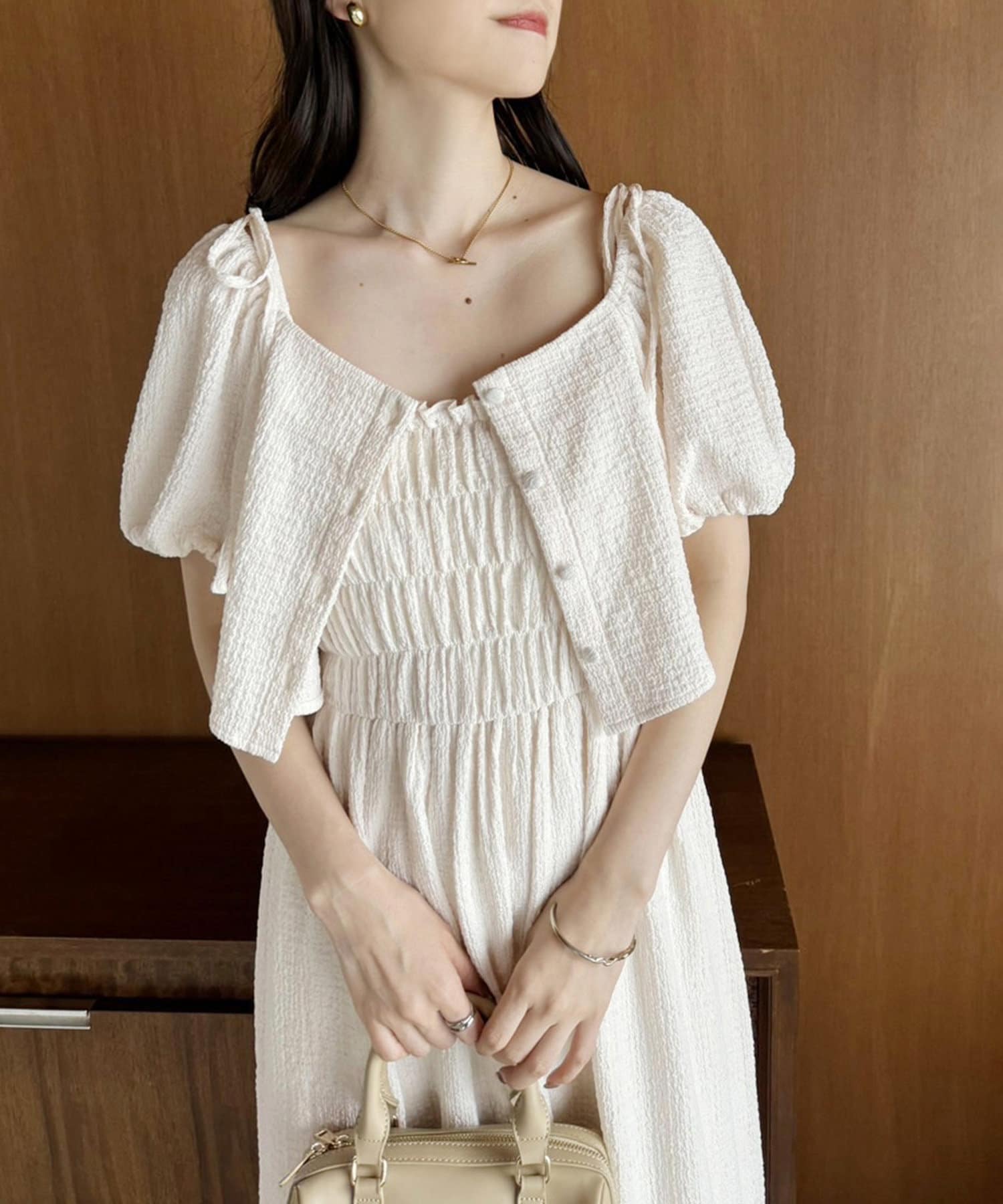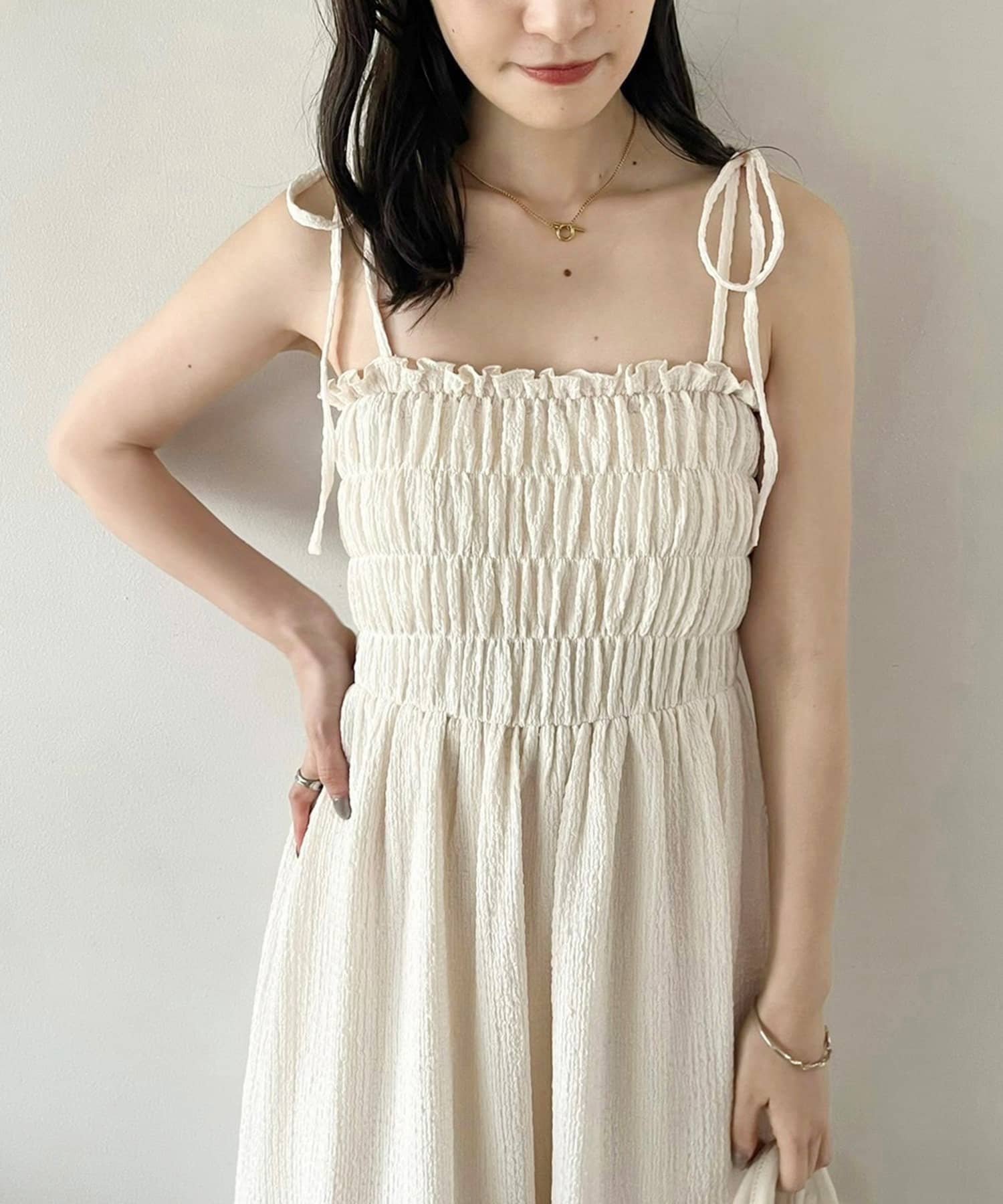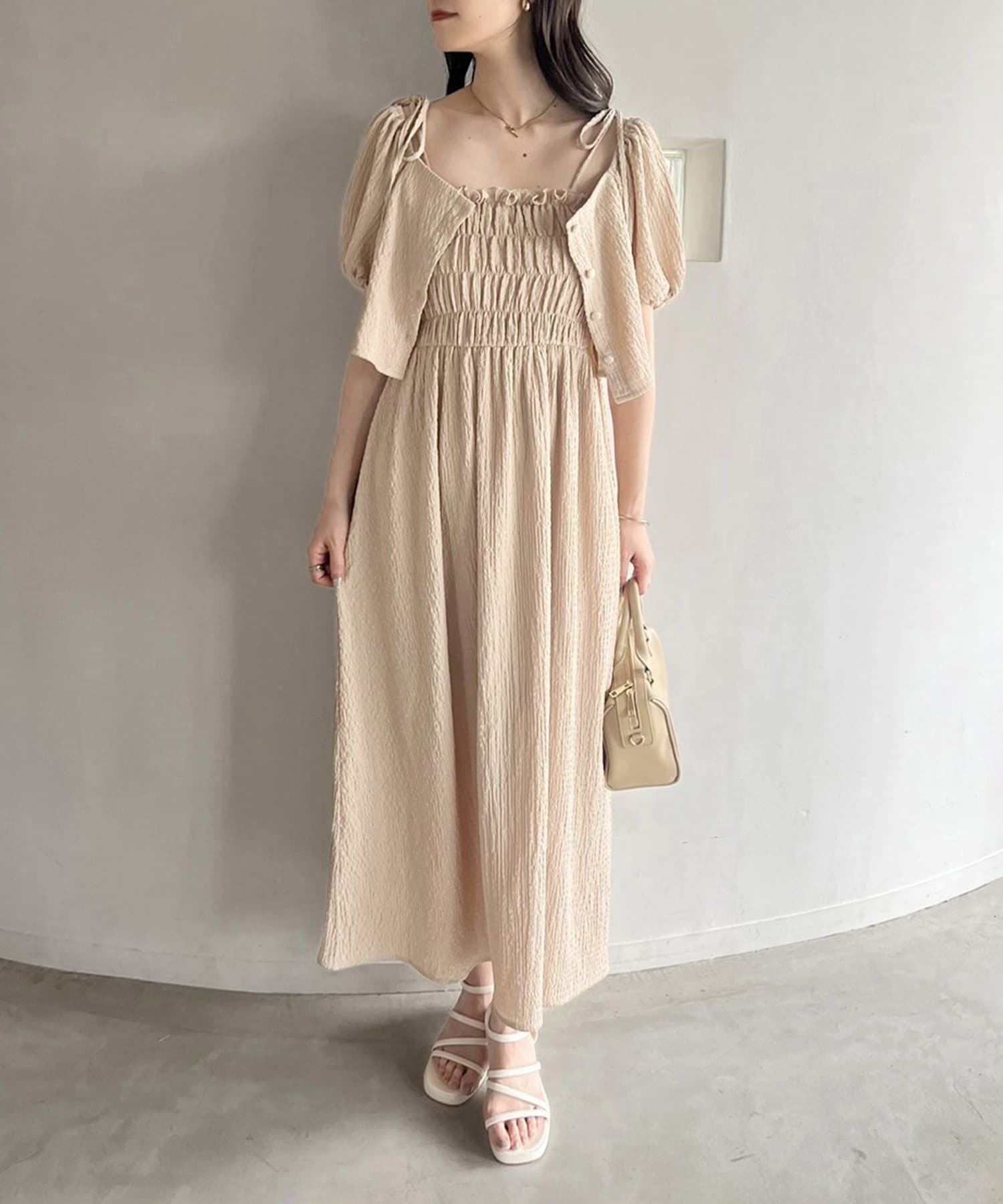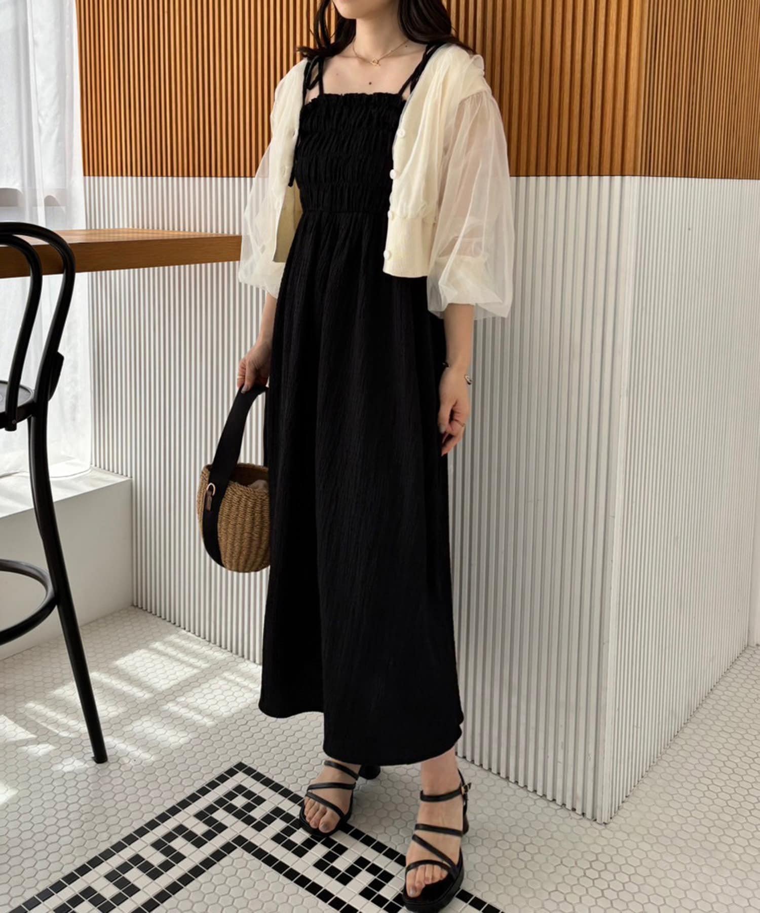 ワンピのみなら、シアートップと合わせた着こなしも◎