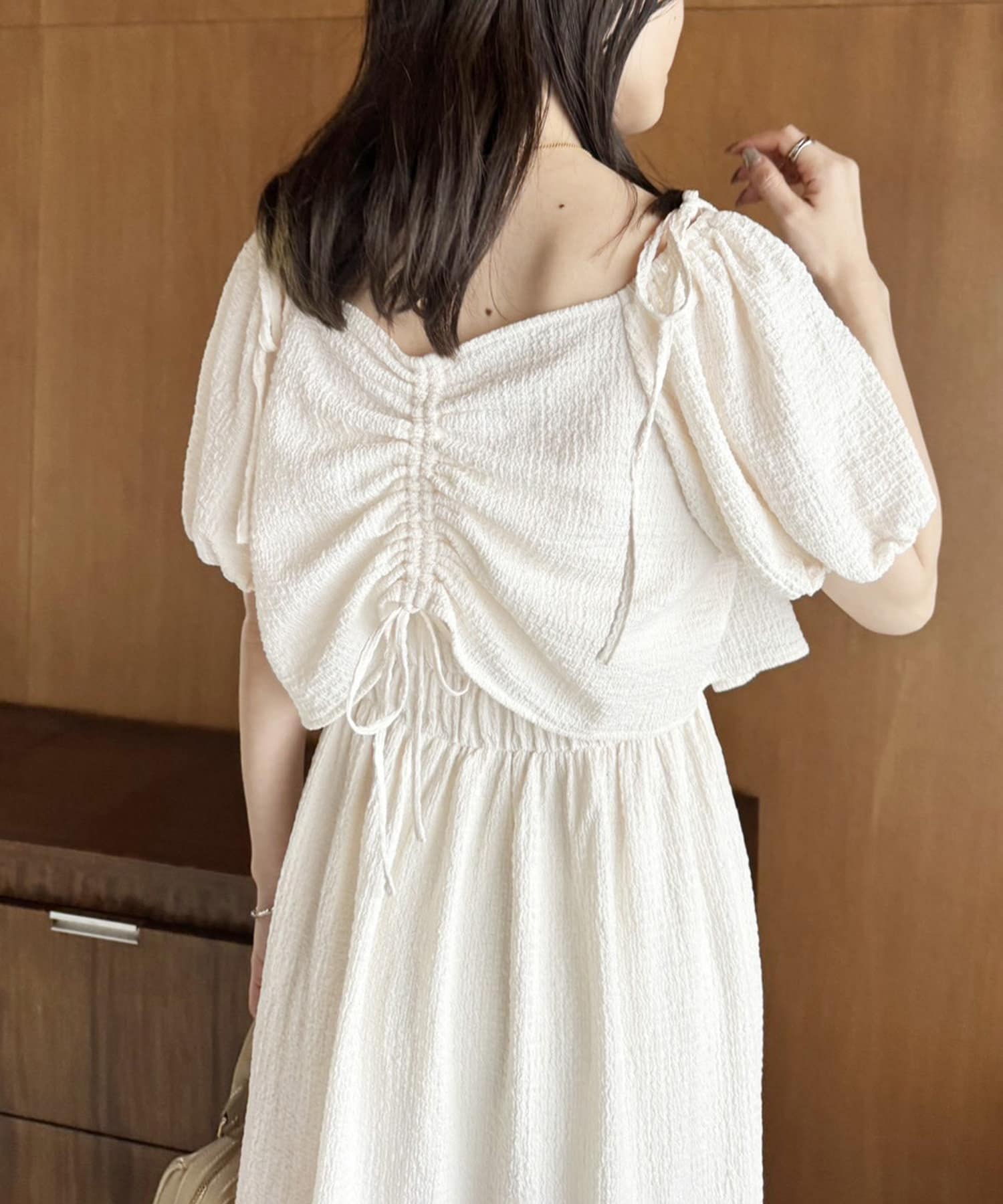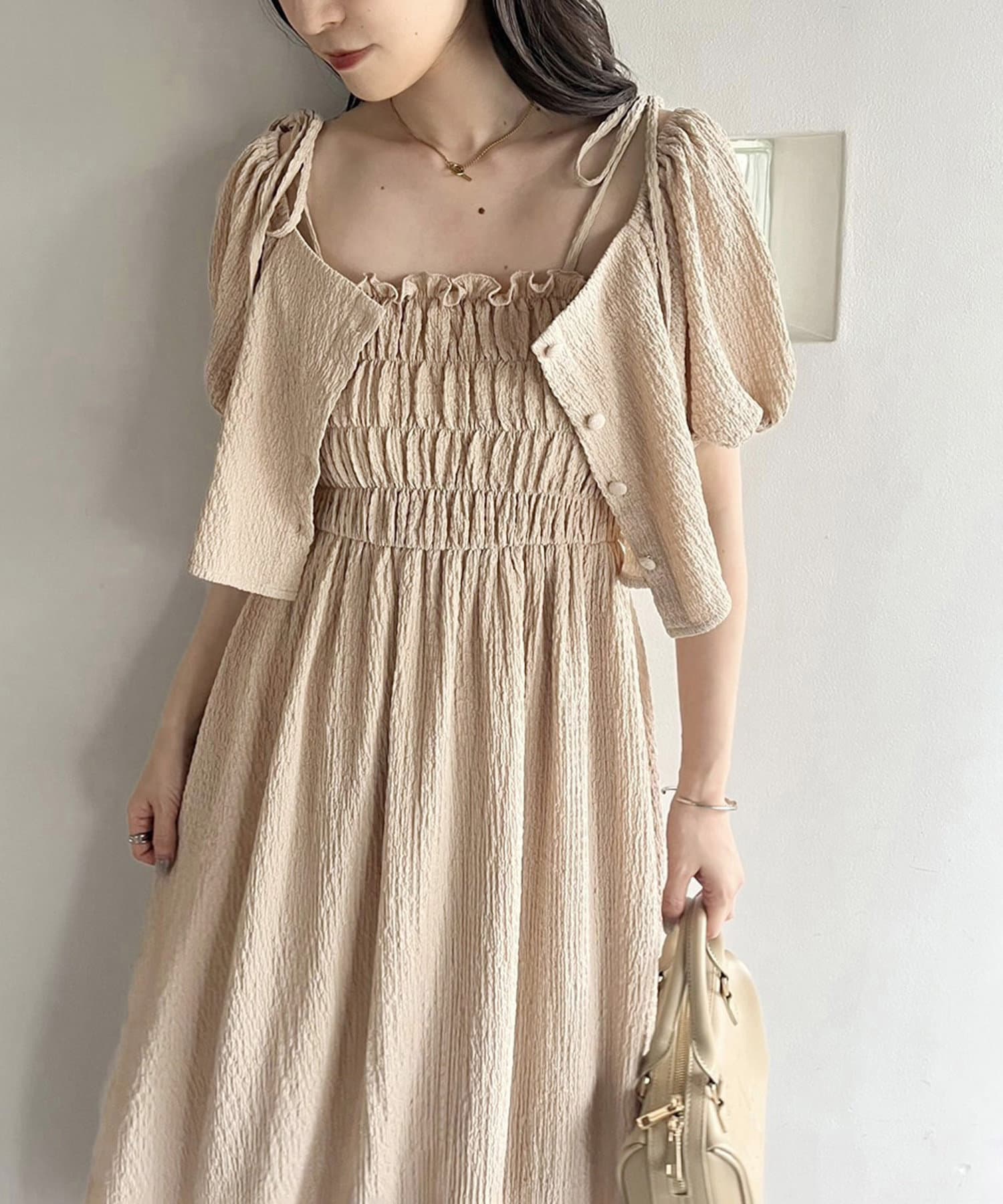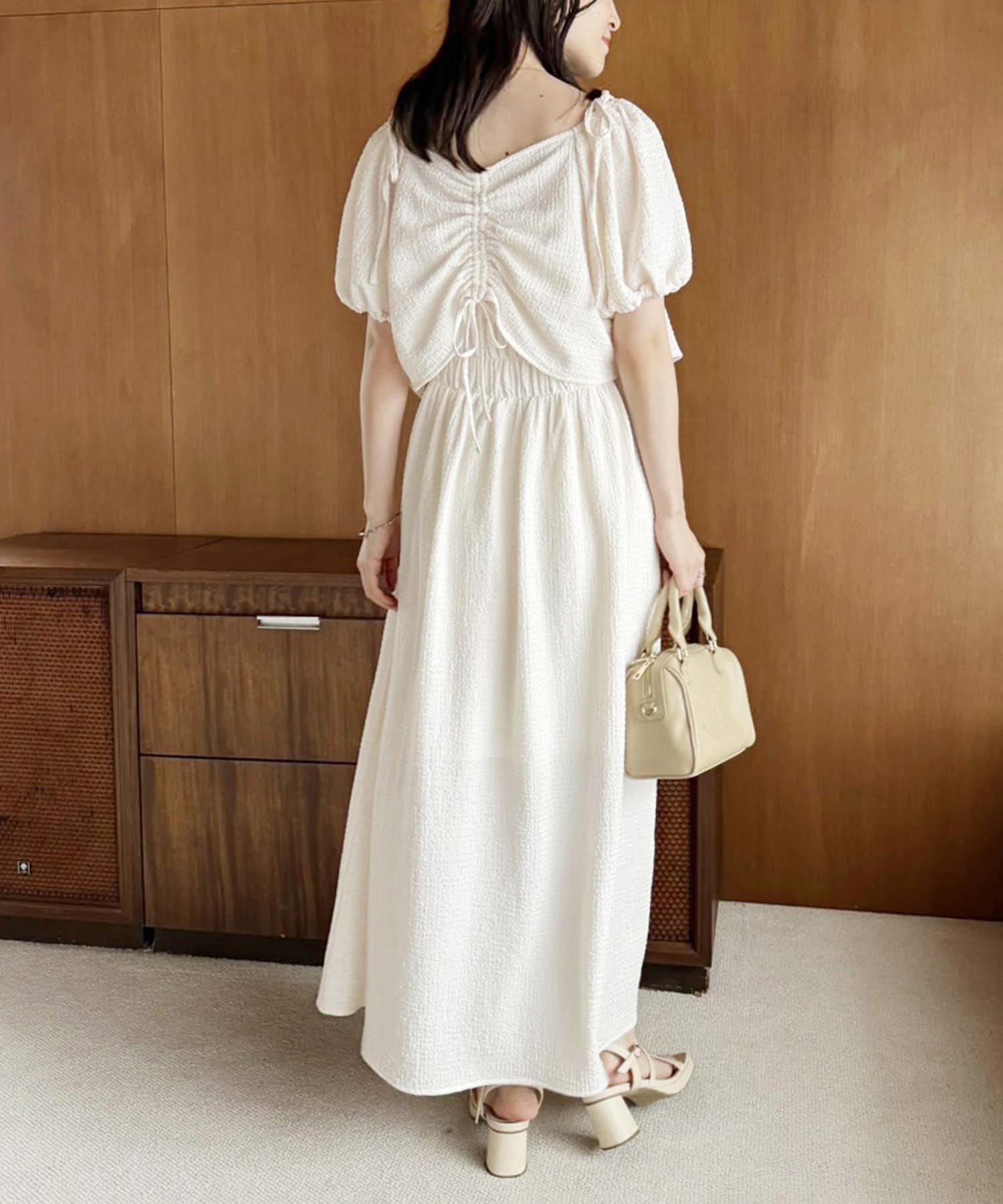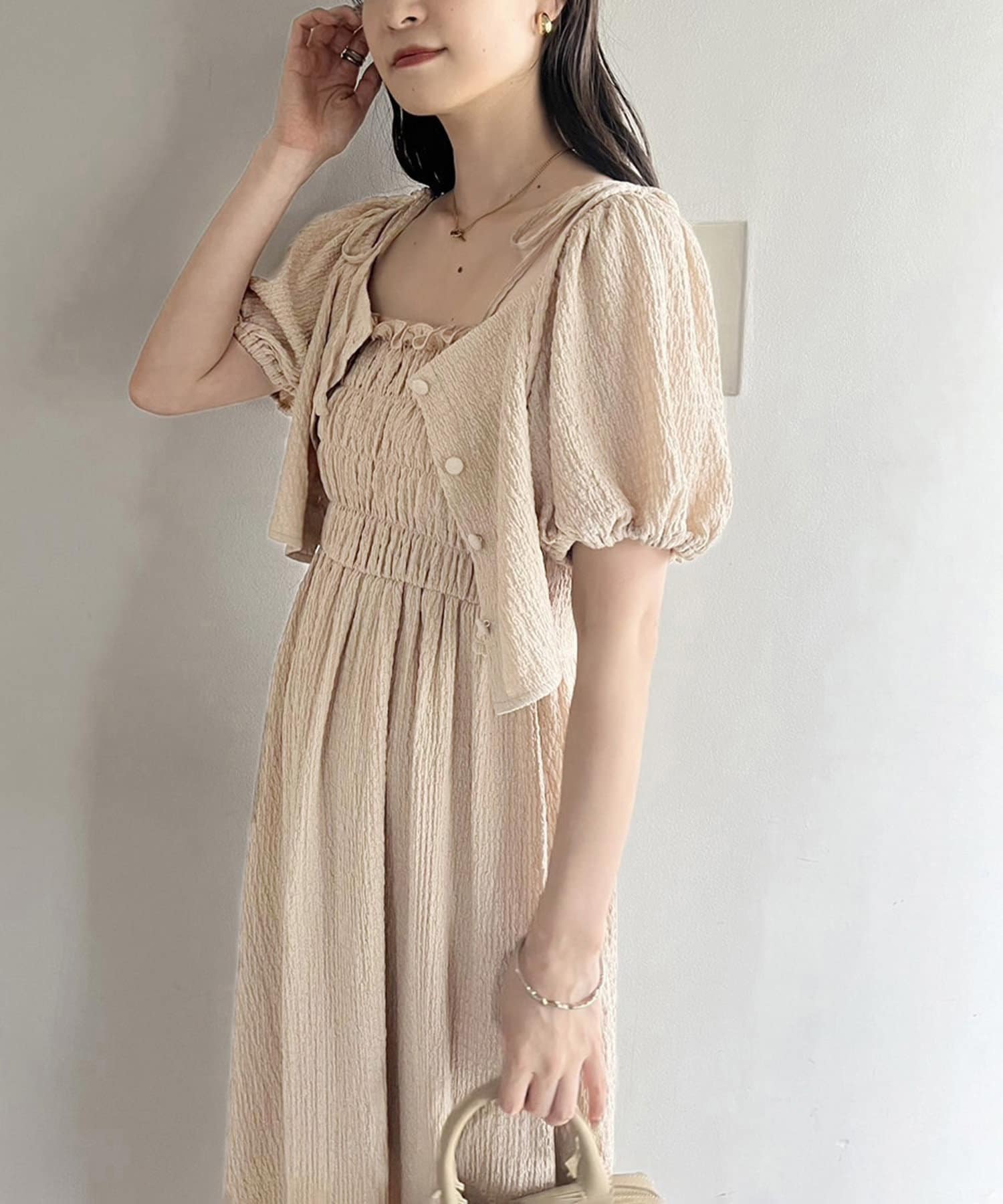 ワンピのみなら、シアートップと合わせた着こなしも◎