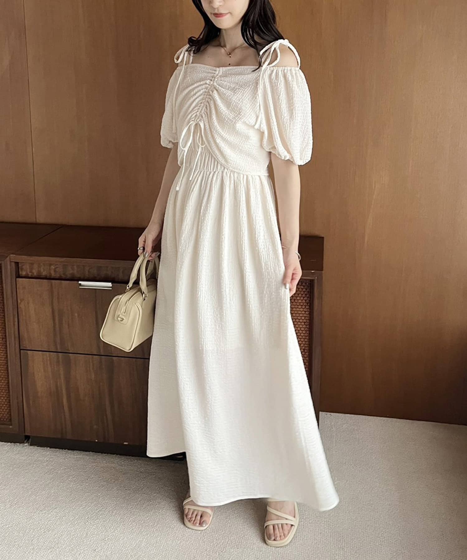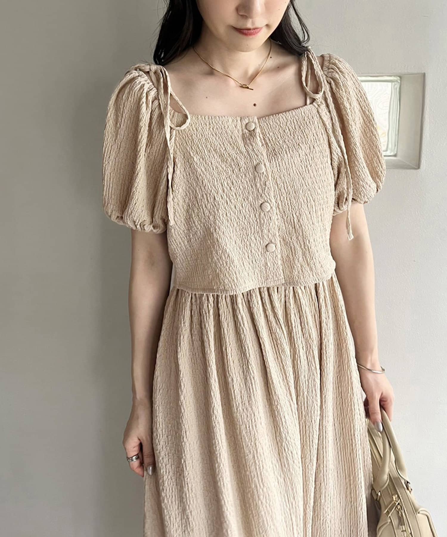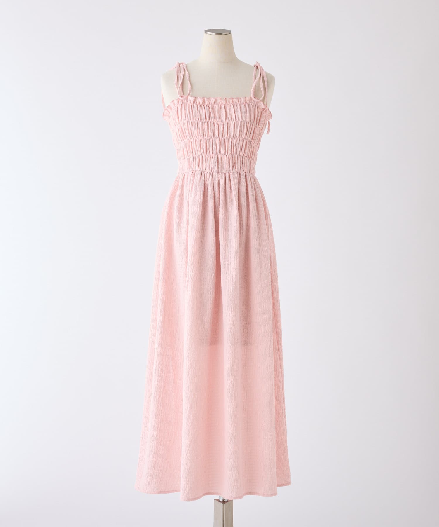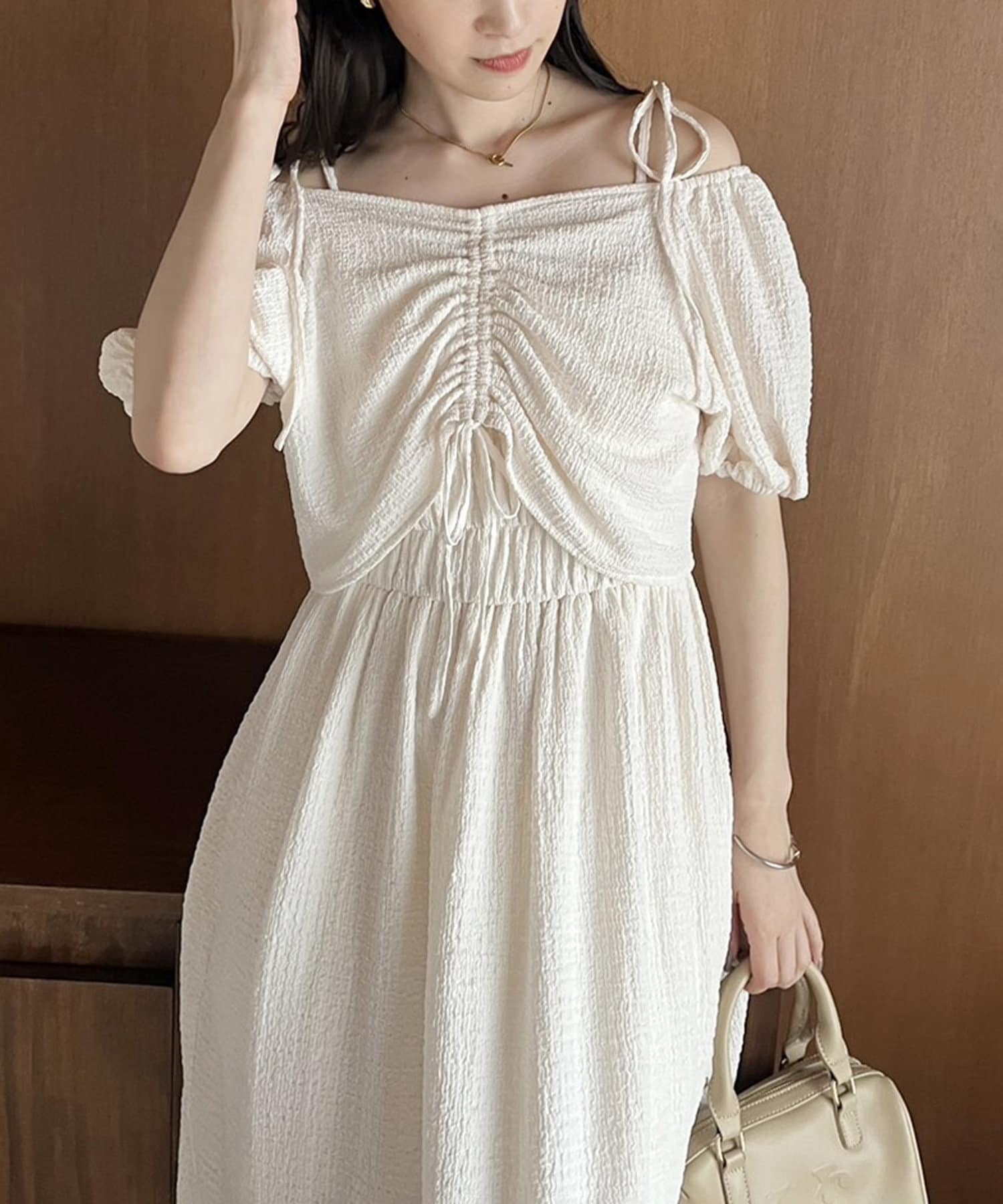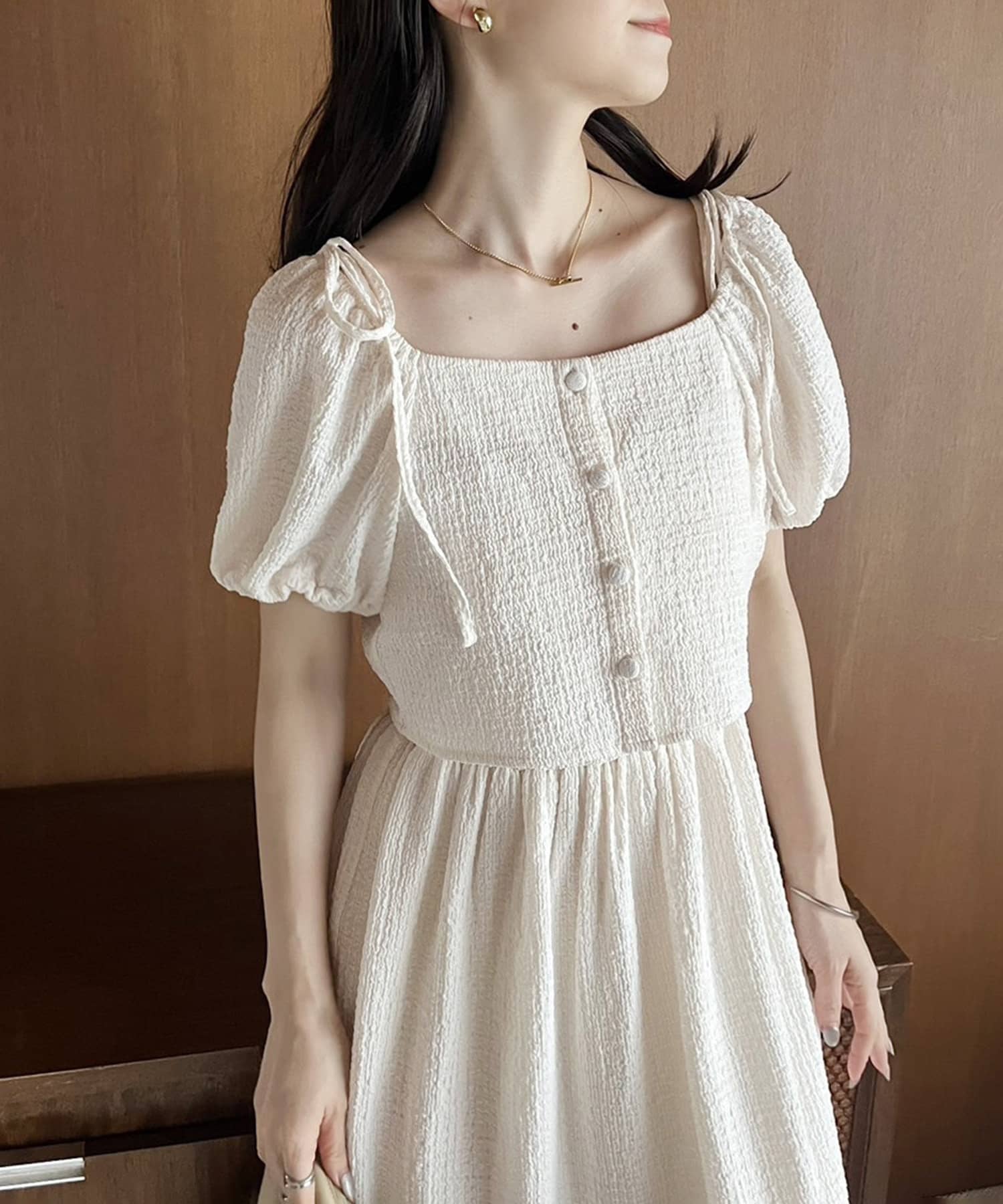 ワンピのみなら、シアートップと合わせた着こなしも◎
