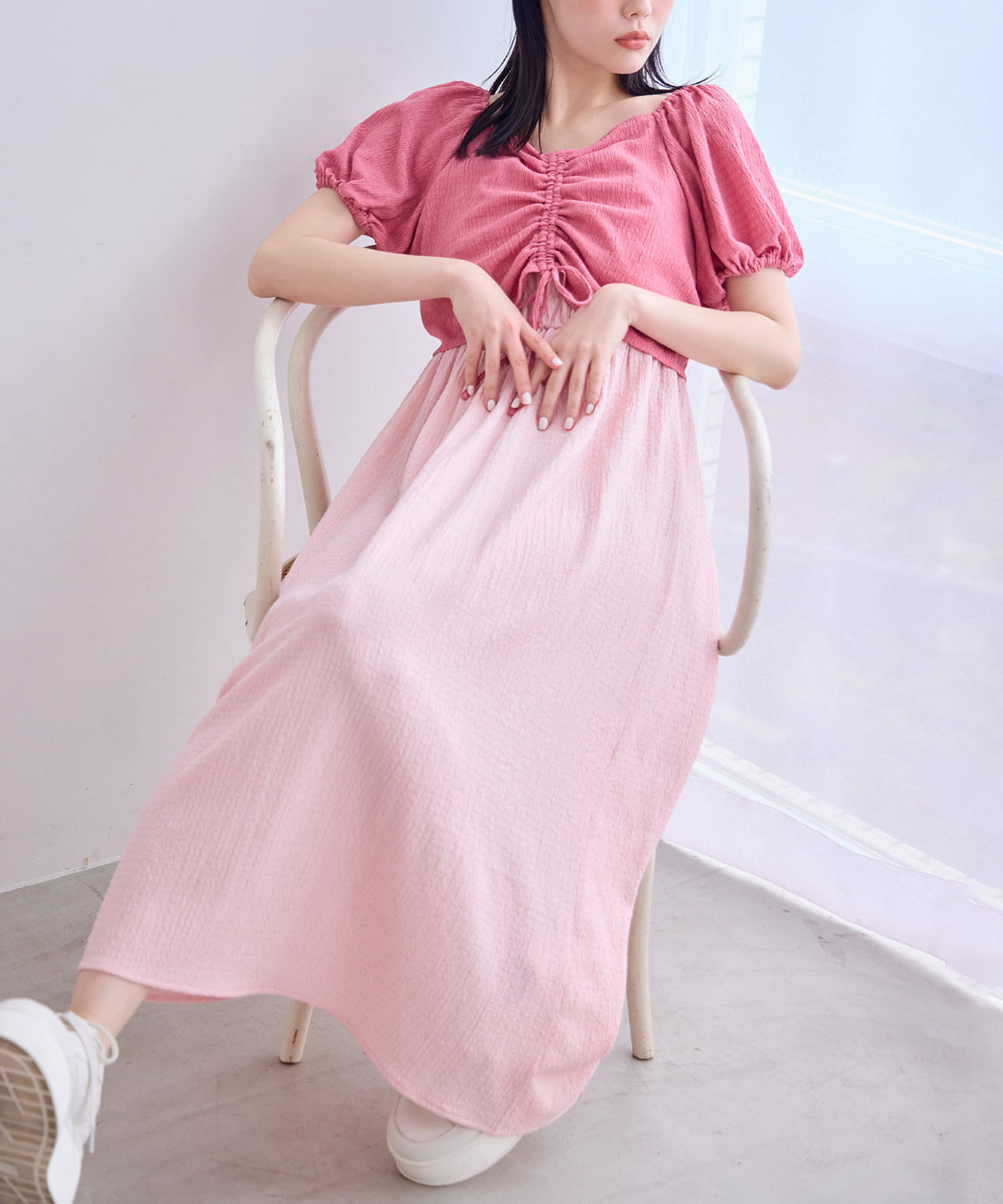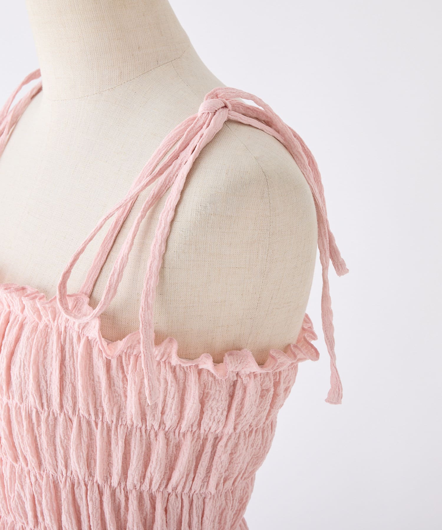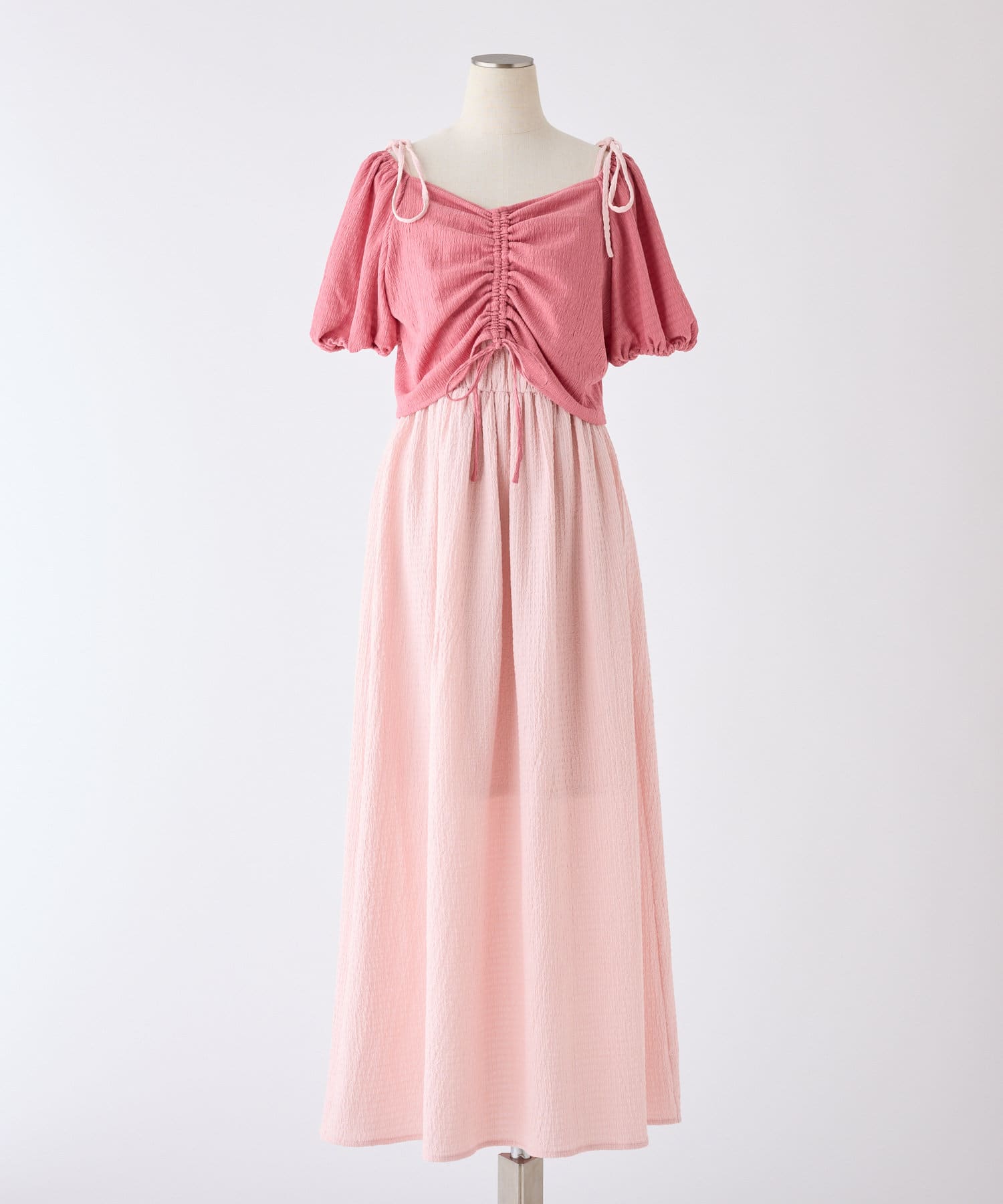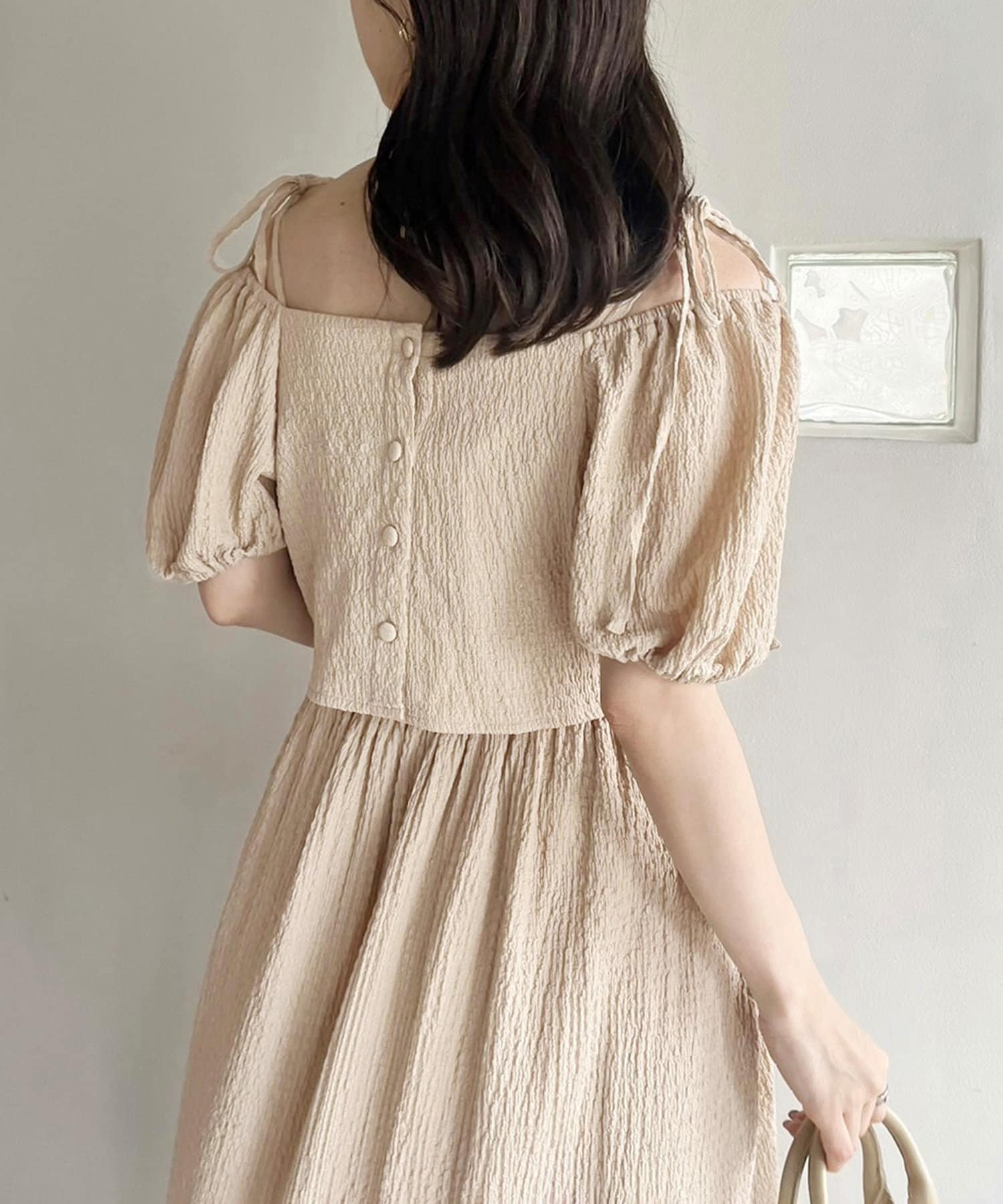 ワンピのみなら、シアートップと合わせた着こなしも◎