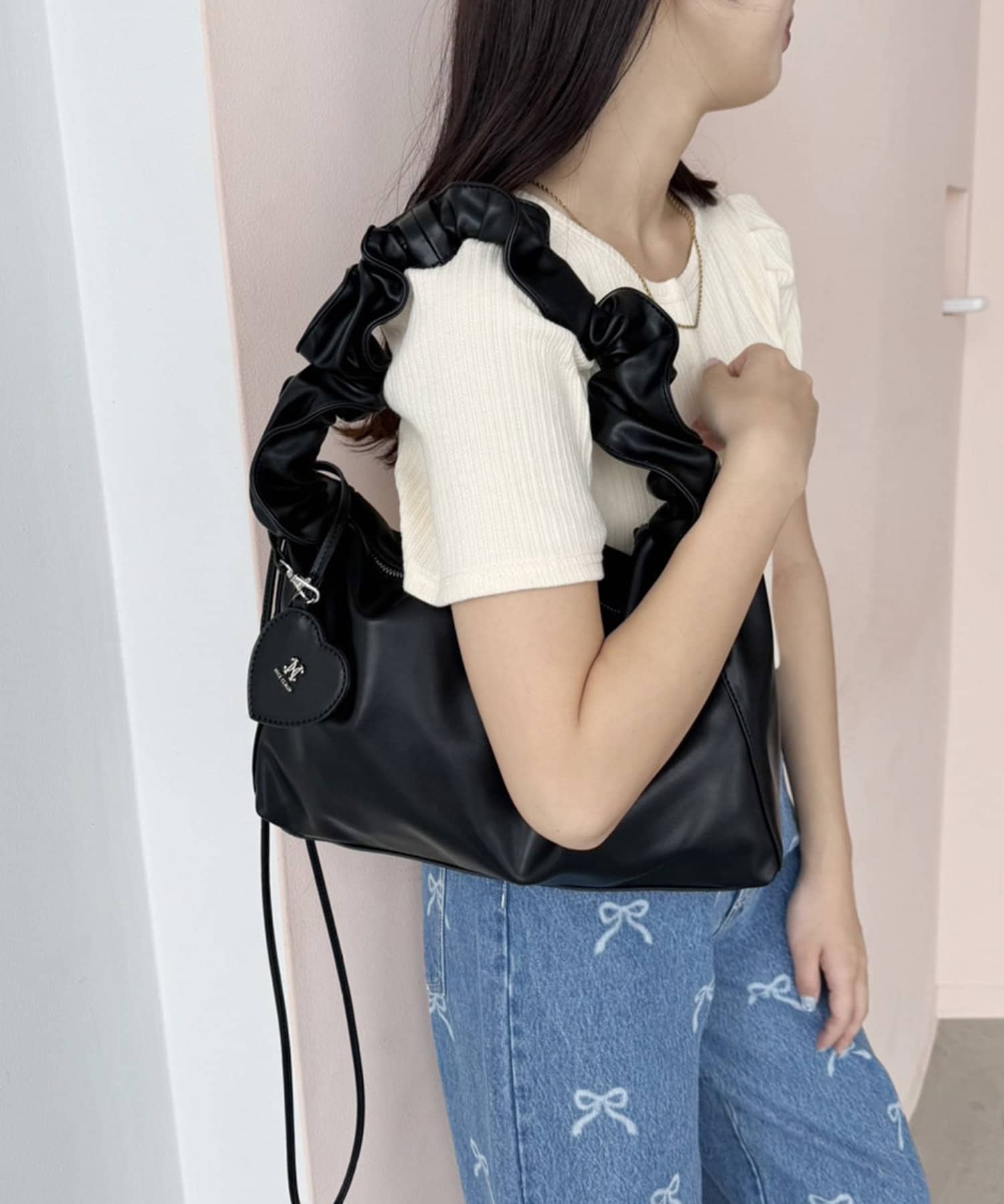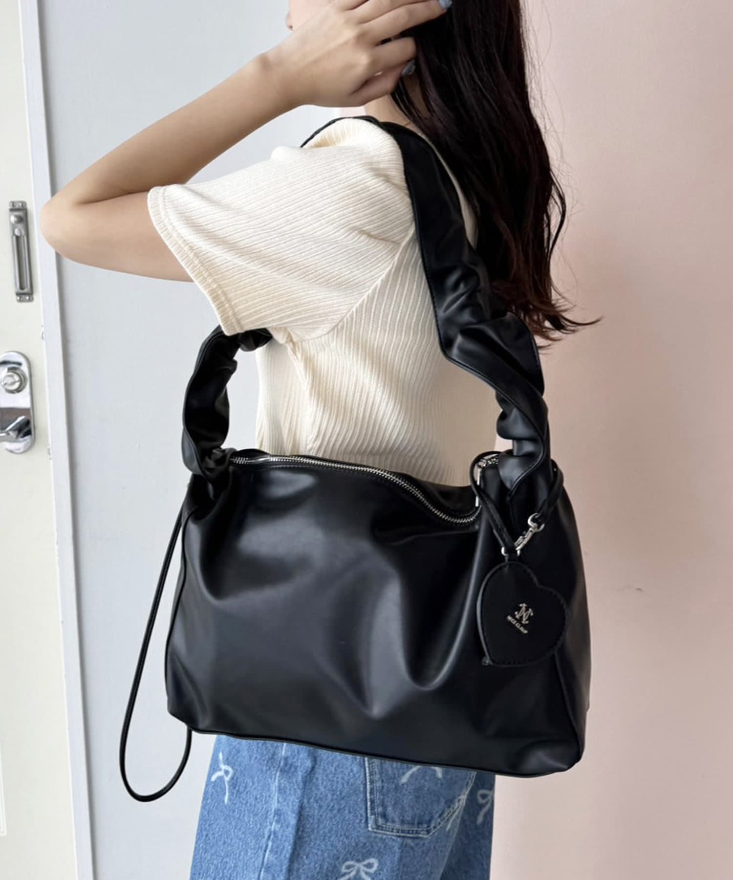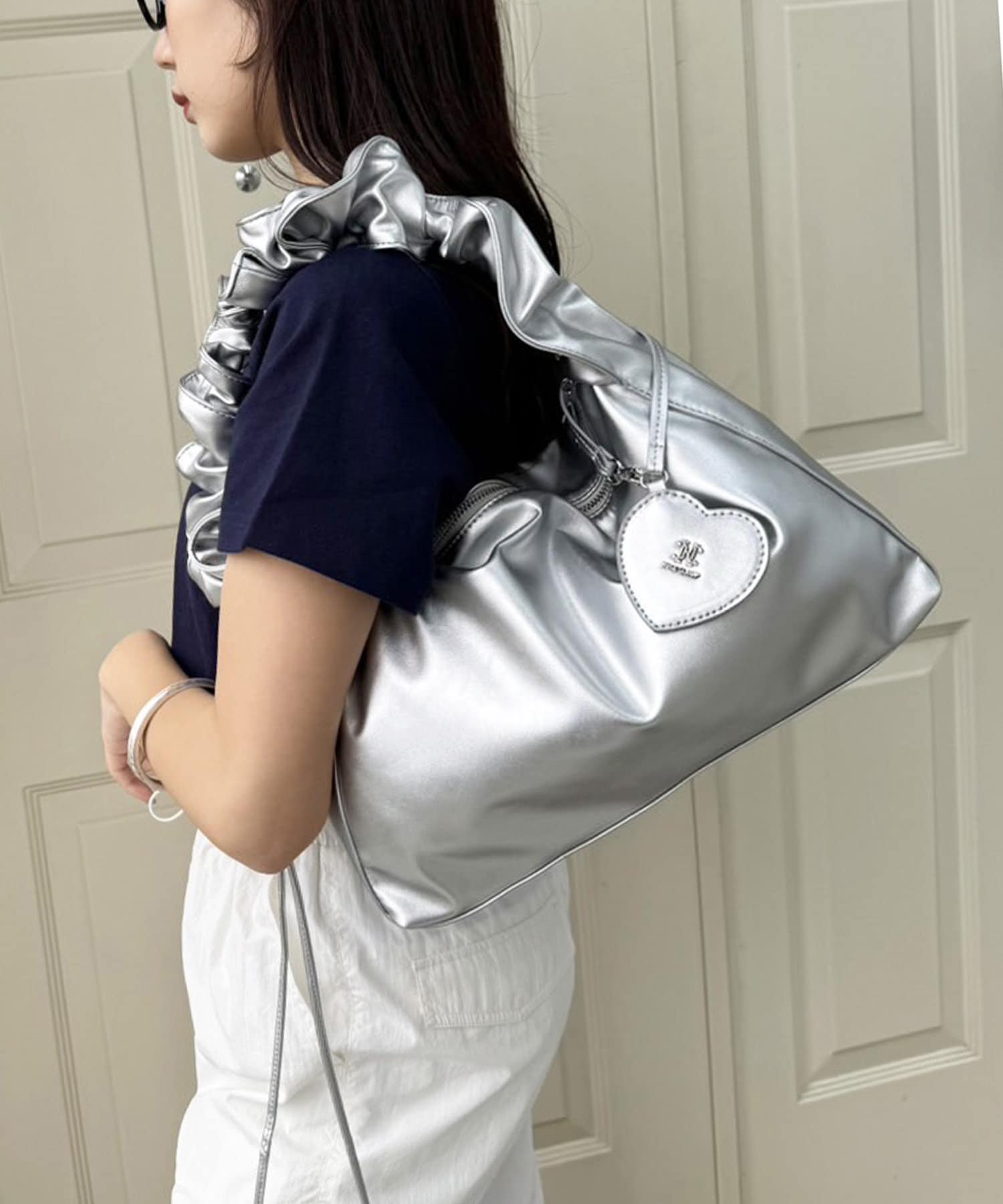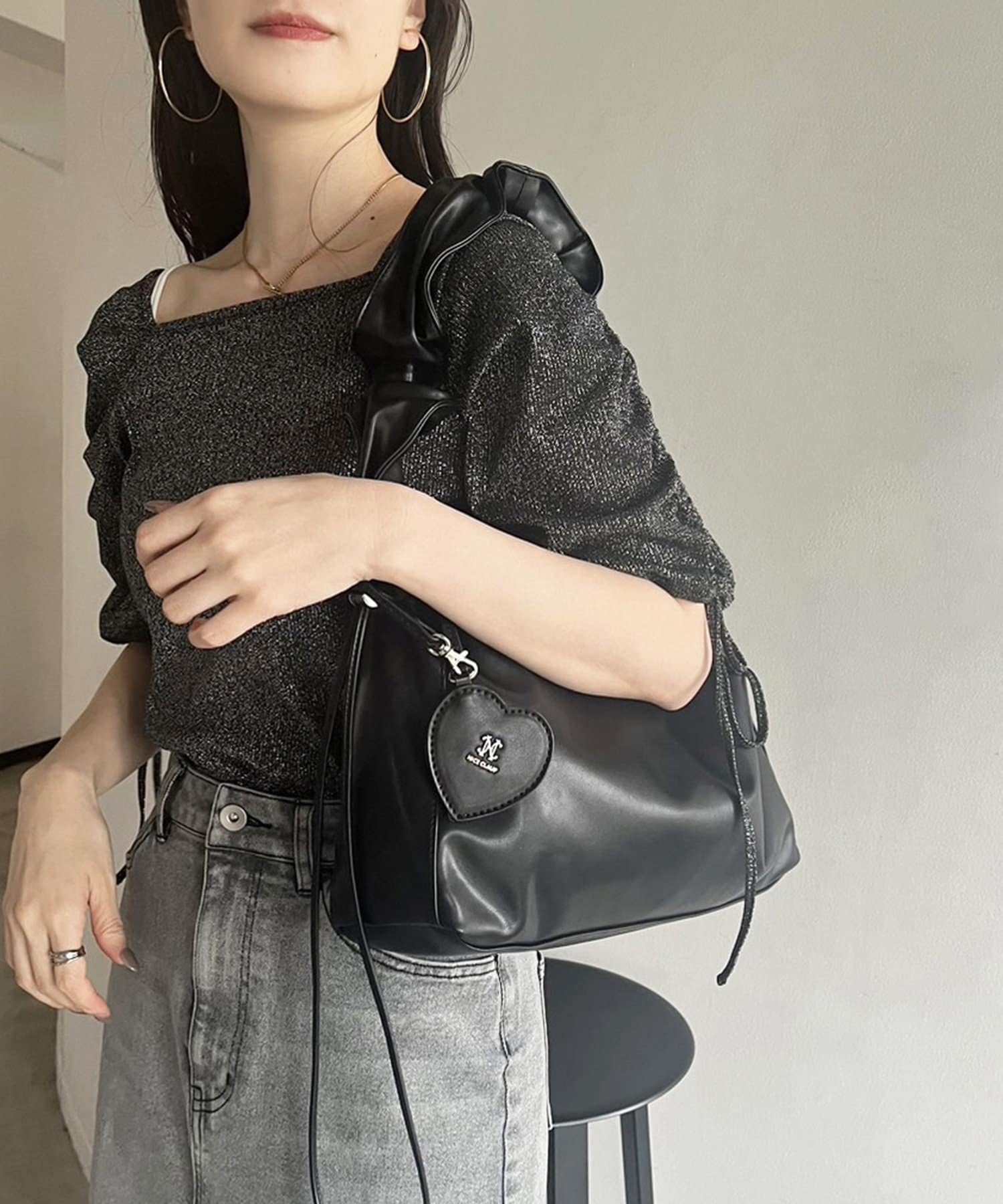 【one after another】ハートミラーチャーム付ドロストBAG