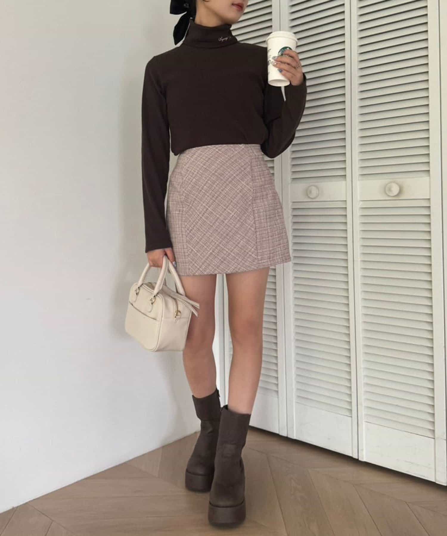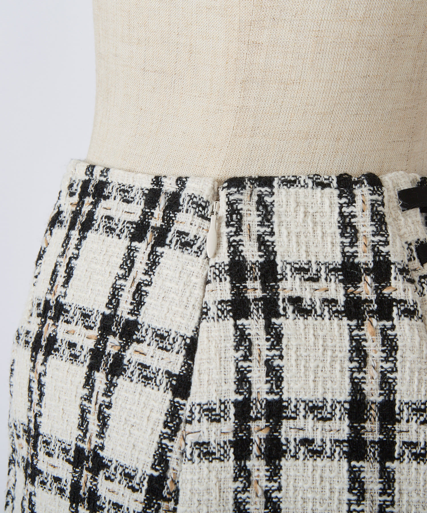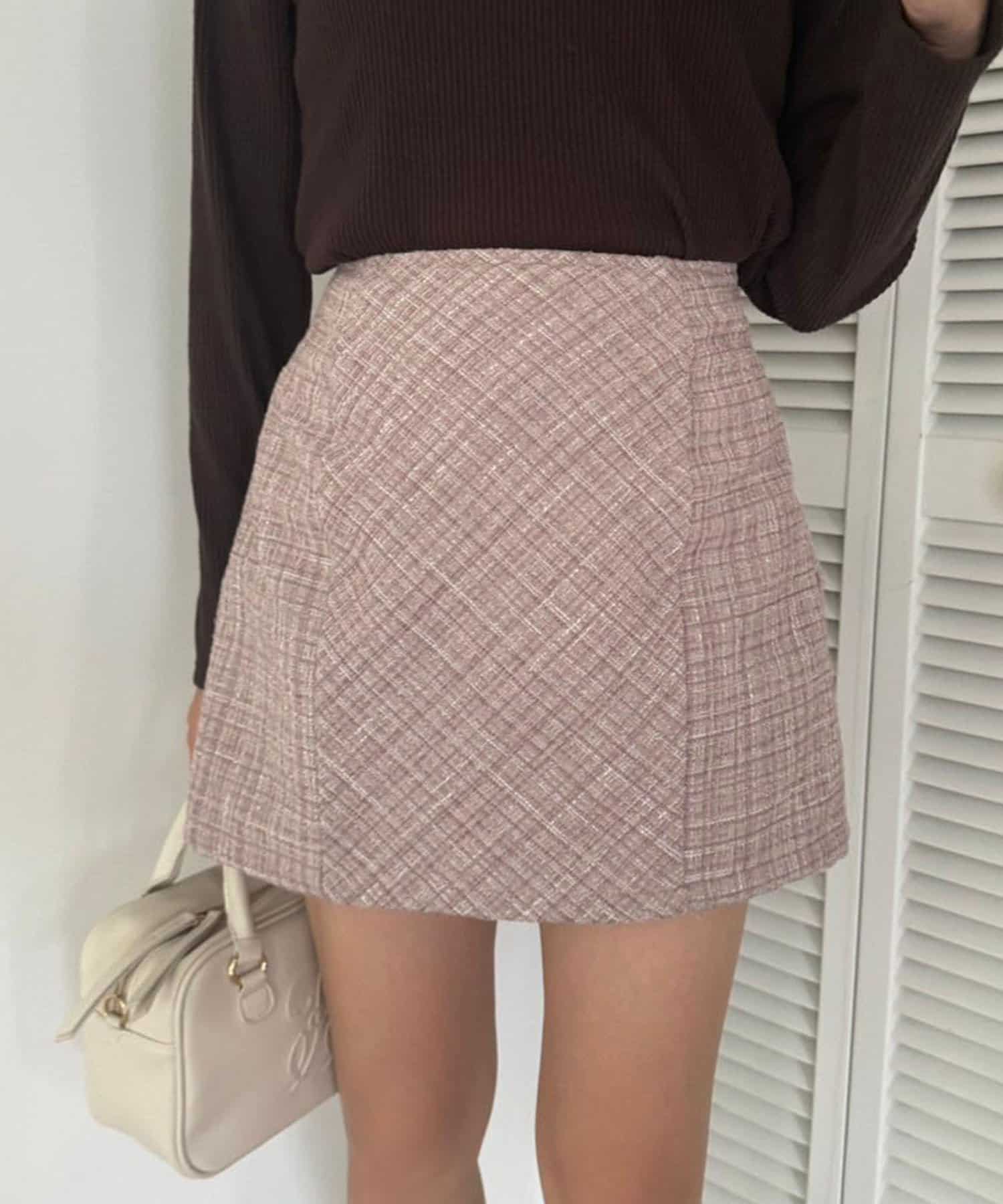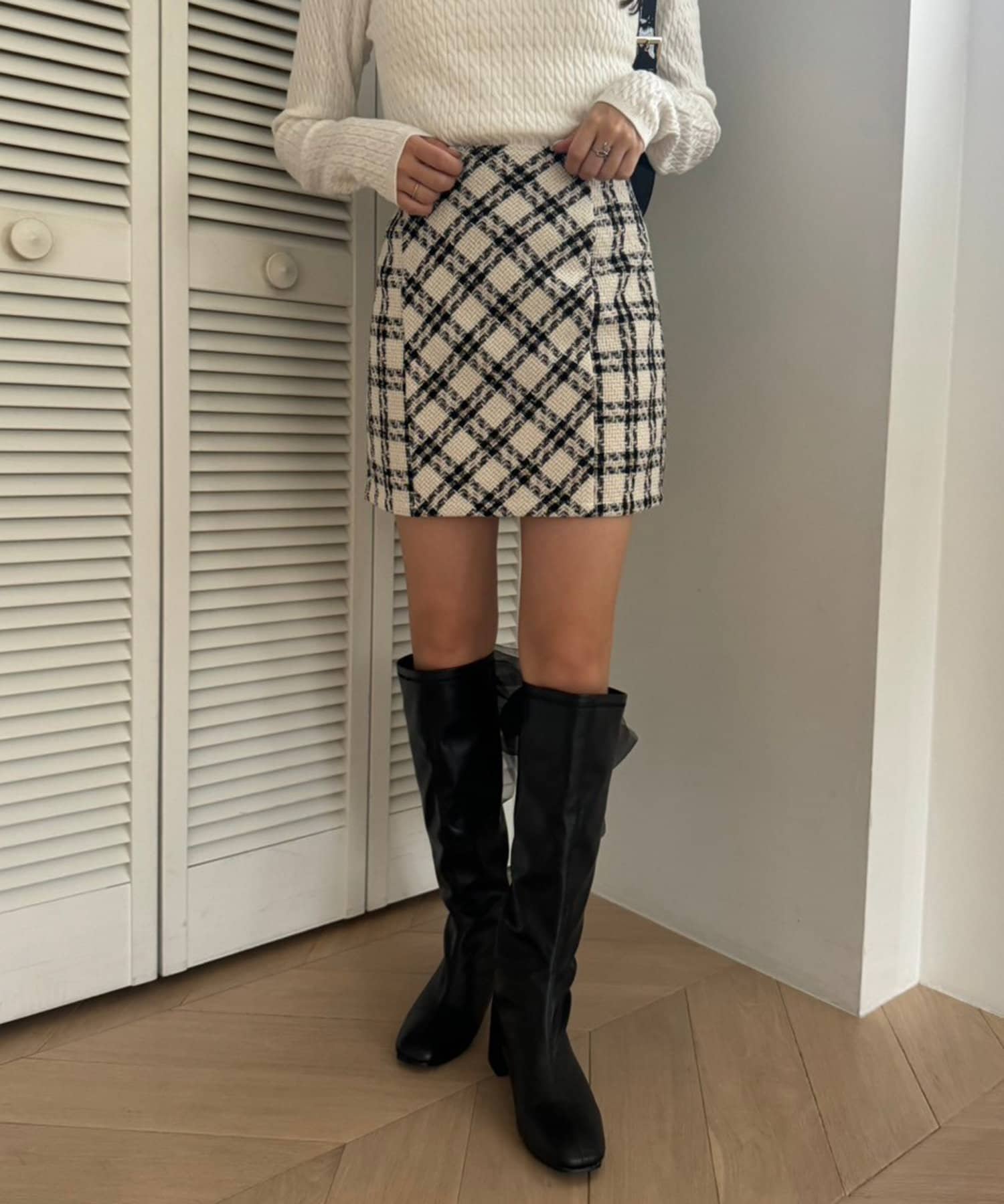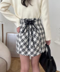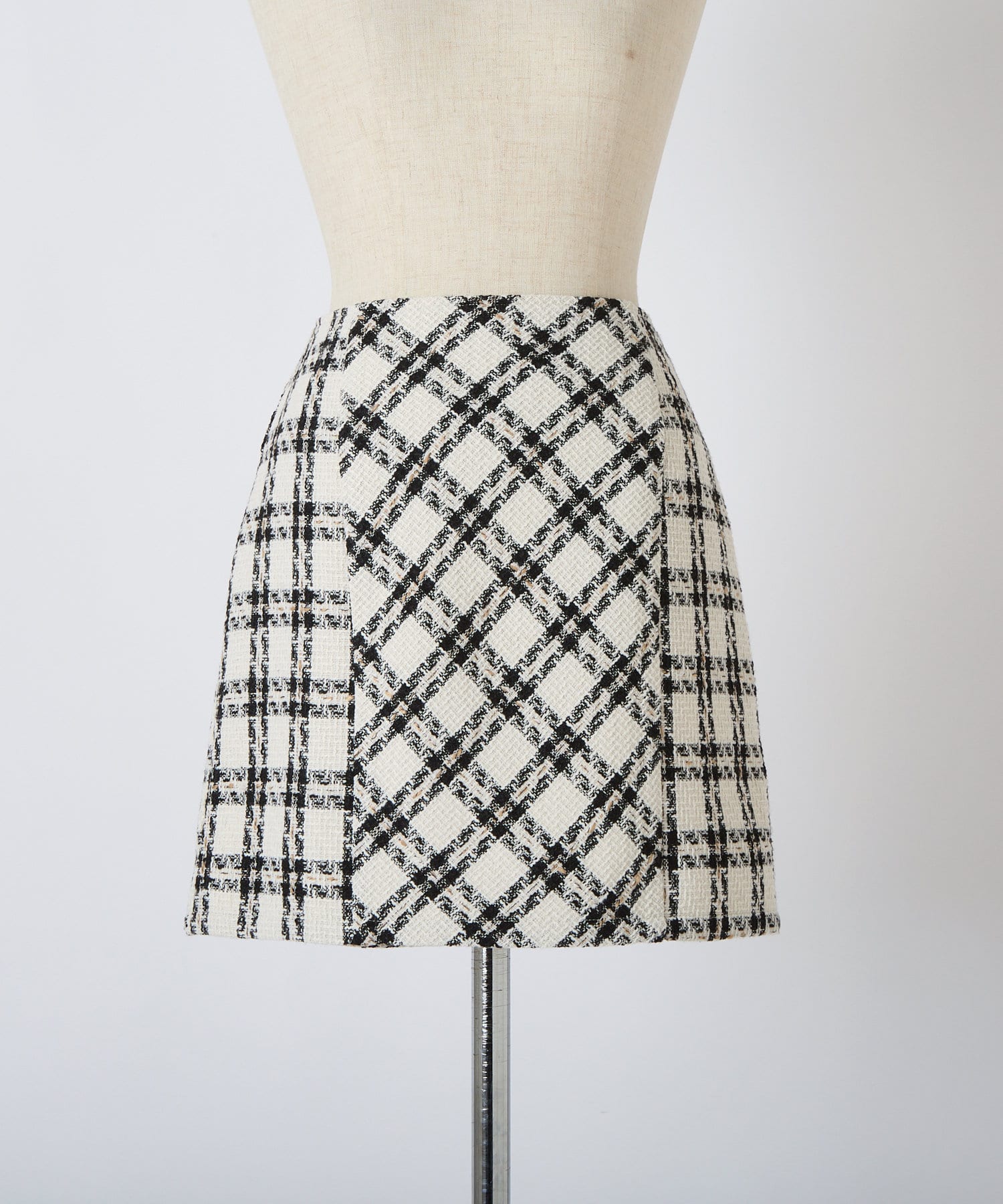 秋冬らしいカラーリングのチェック柄で仕立てたミニスカート。