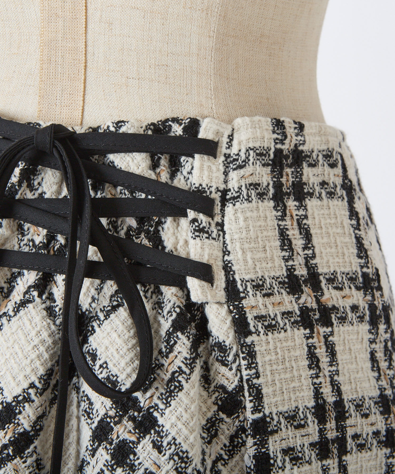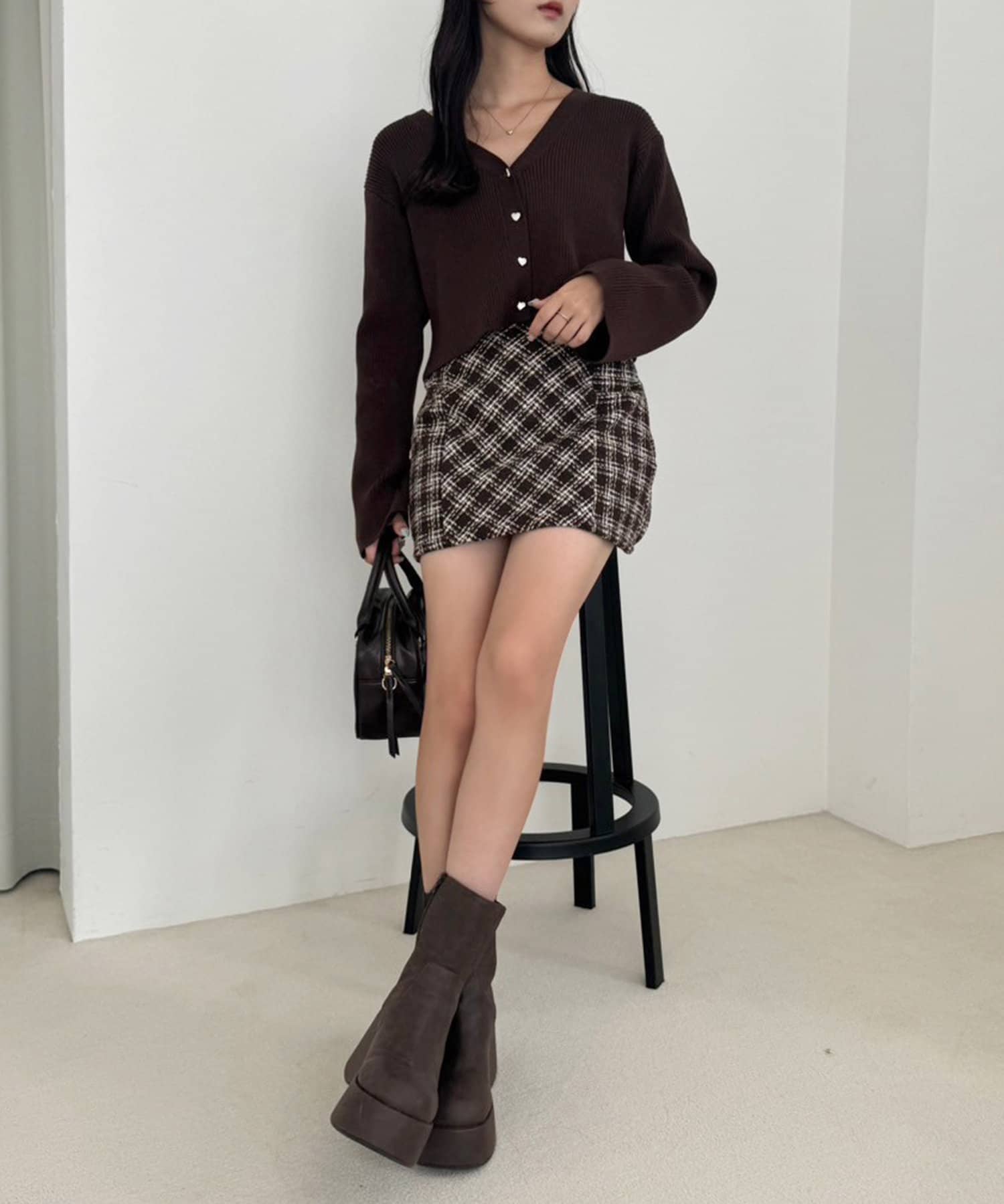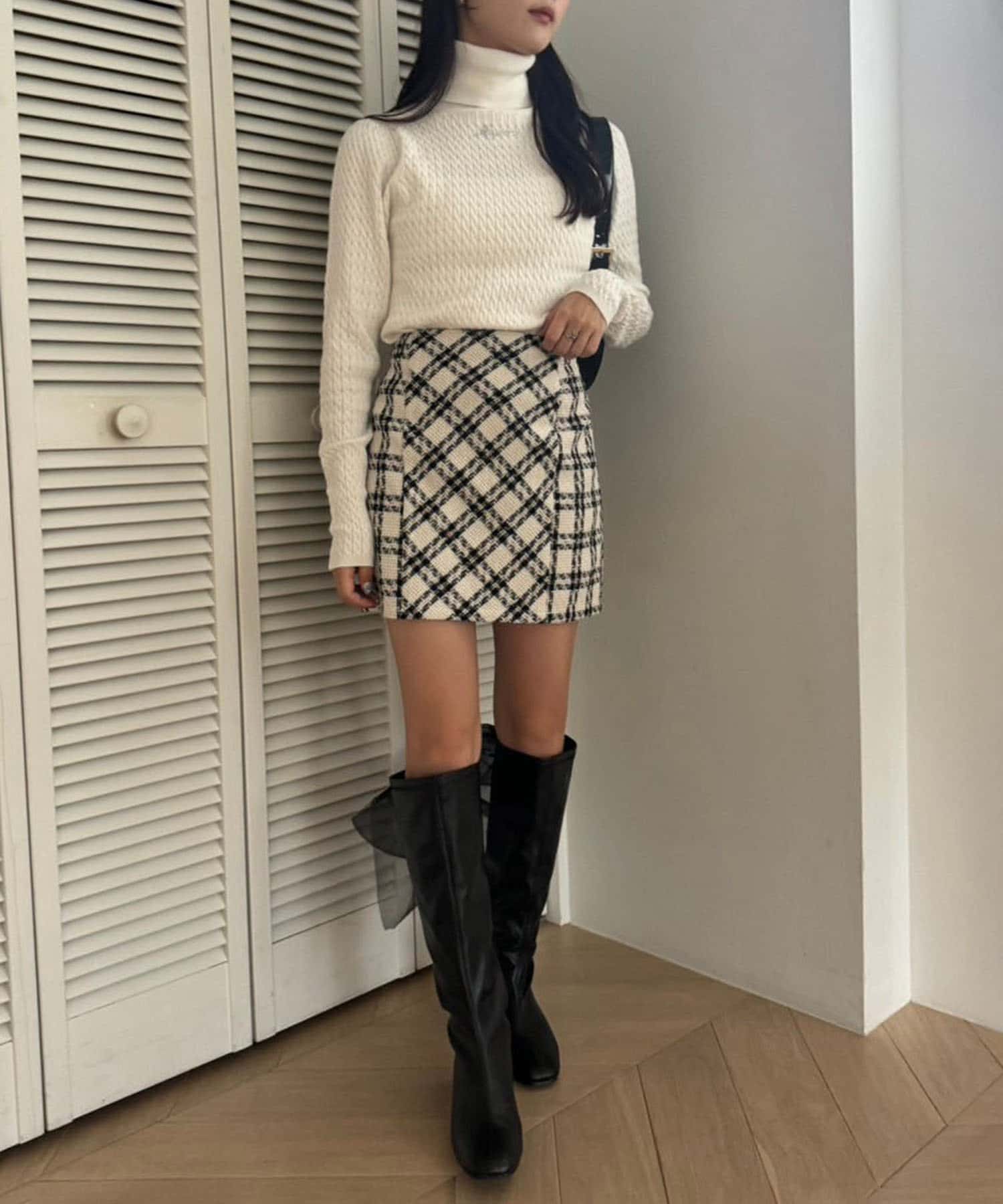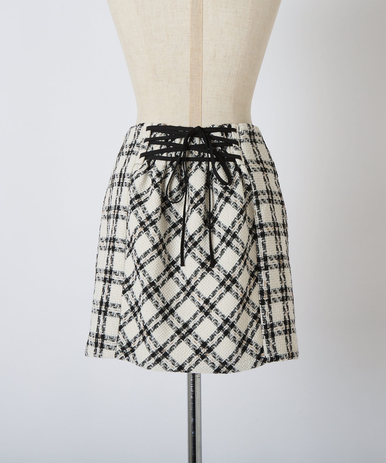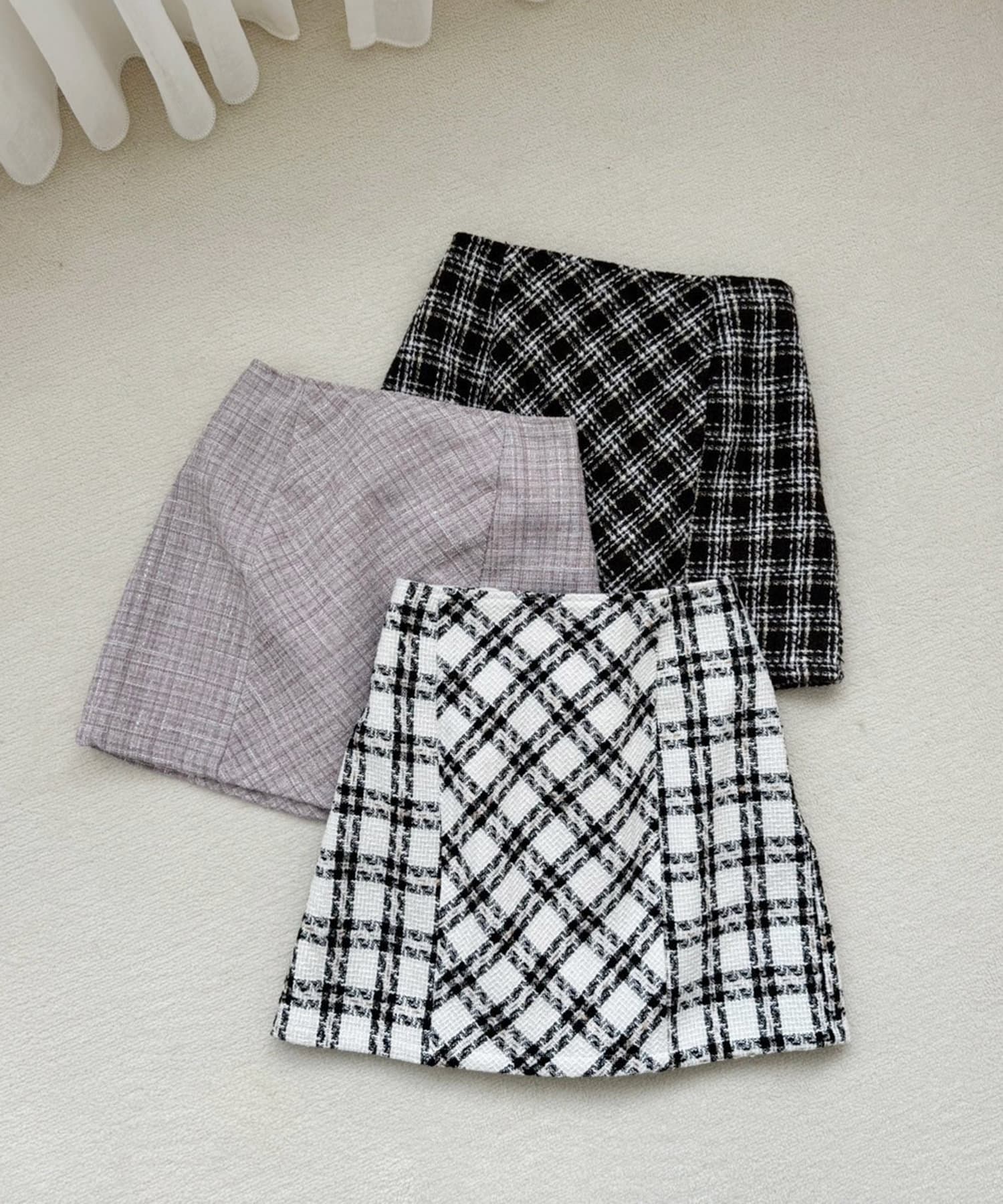 秋冬らしいカラーリングのチェック柄で仕立てたミニスカート。