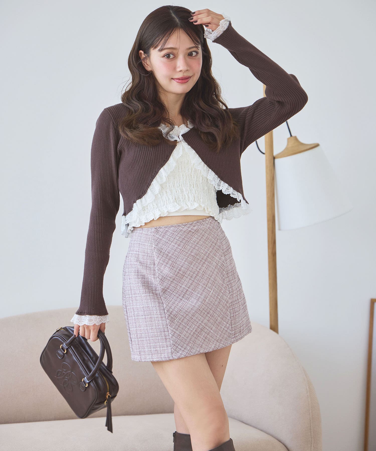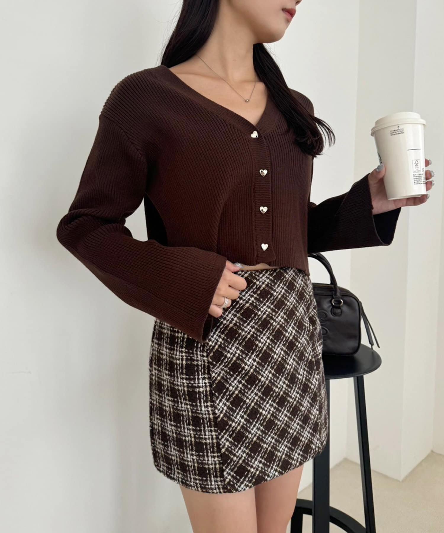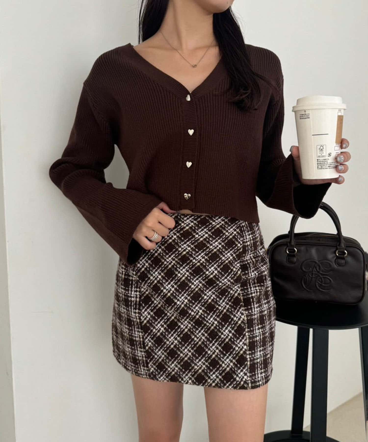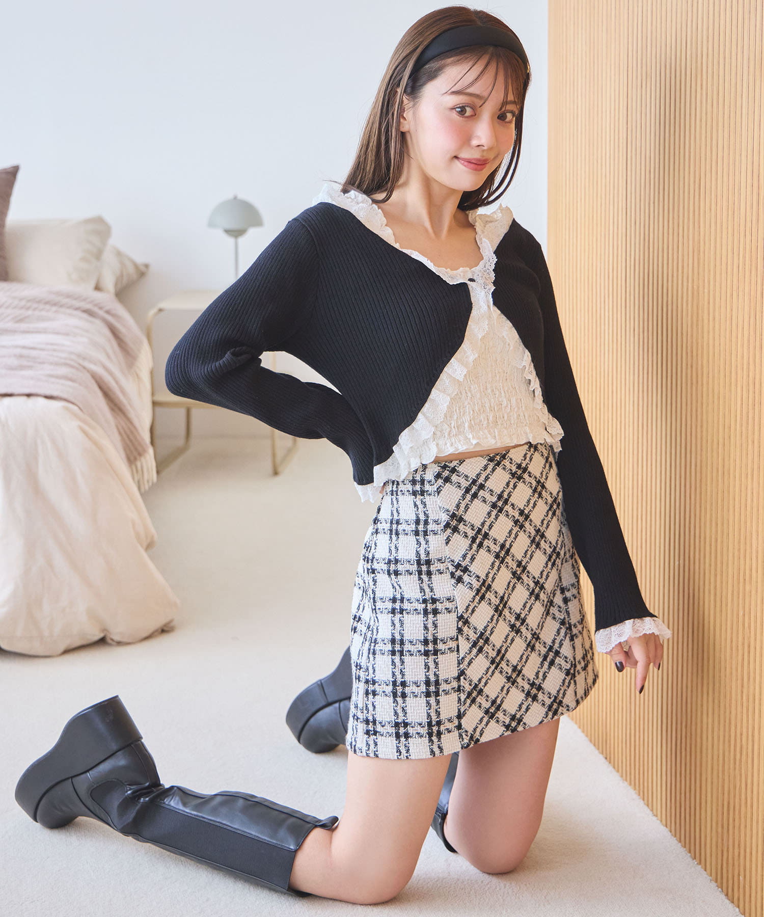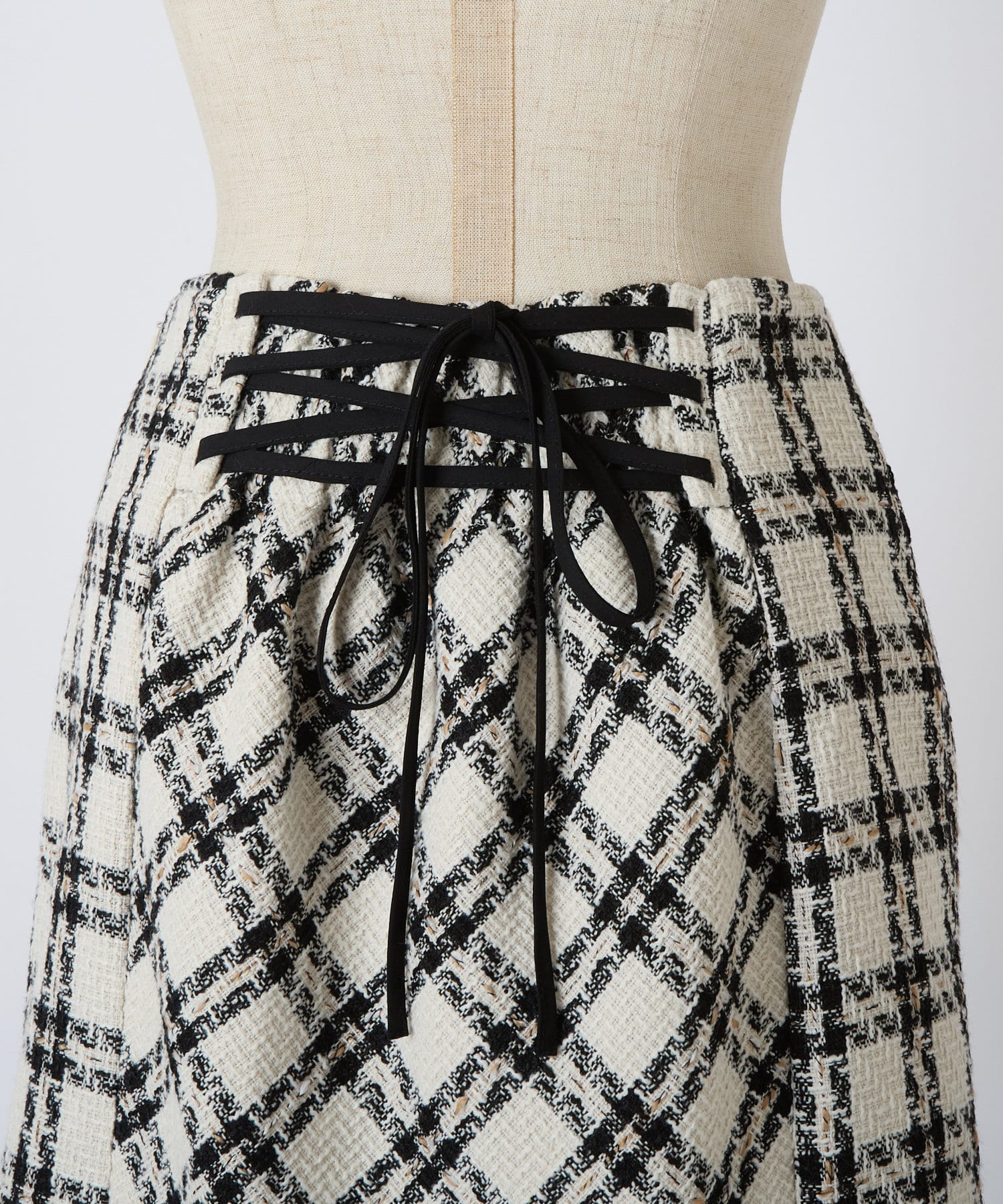 秋冬らしいカラーリングのチェック柄で仕立てたミニスカート。