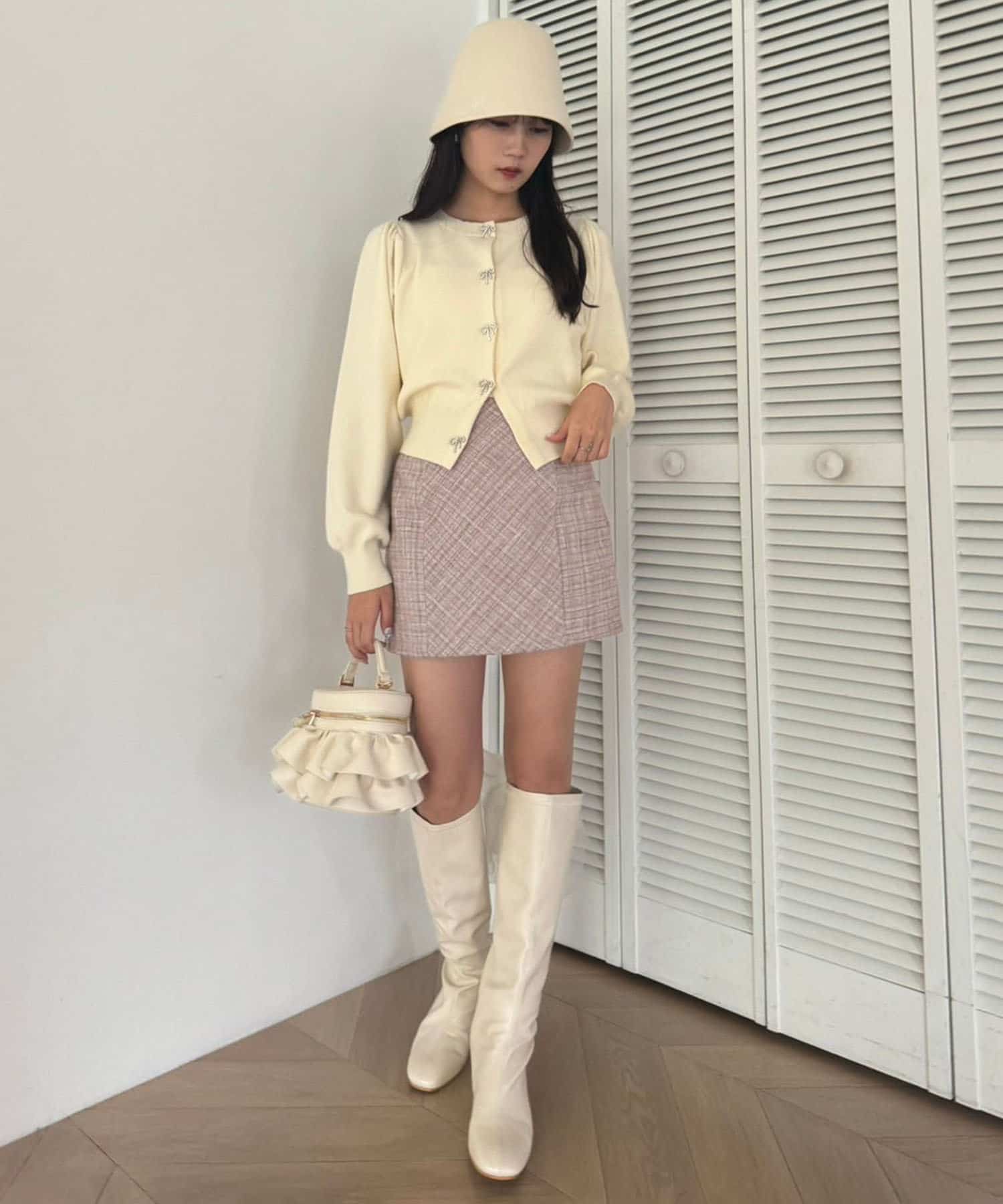 ひざ上丈なのでロングブーツと合わせれば寒い時期でも暖かく履いていただけます◎