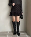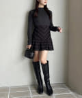 足元はロングブーツで鉄板モテコーデに。