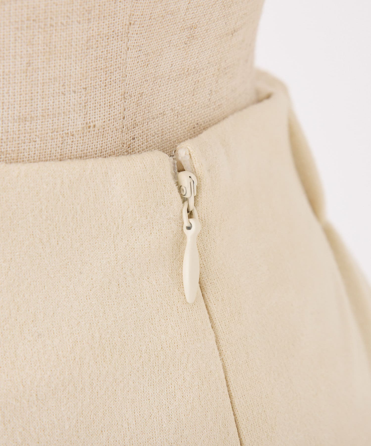 太めのプリーツが広がりすぎず、ウエストラインはすっきりしたシルエットで履いていただけます。