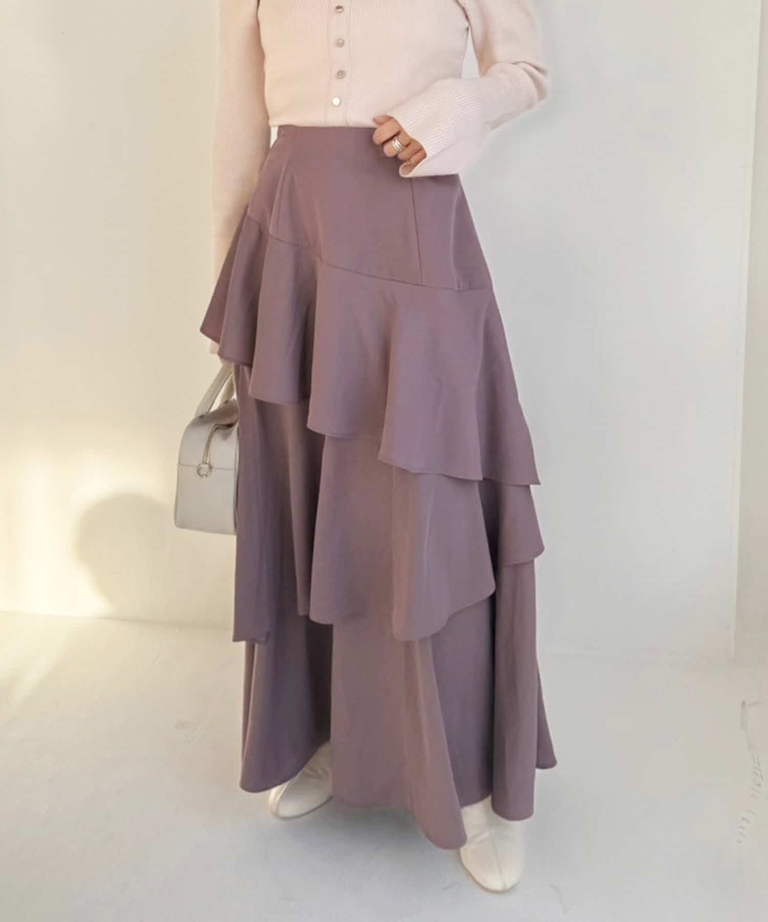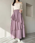 動きに合わせて揺れる、たっぷりと重ねたフリルが女性らしいティアードスカート