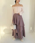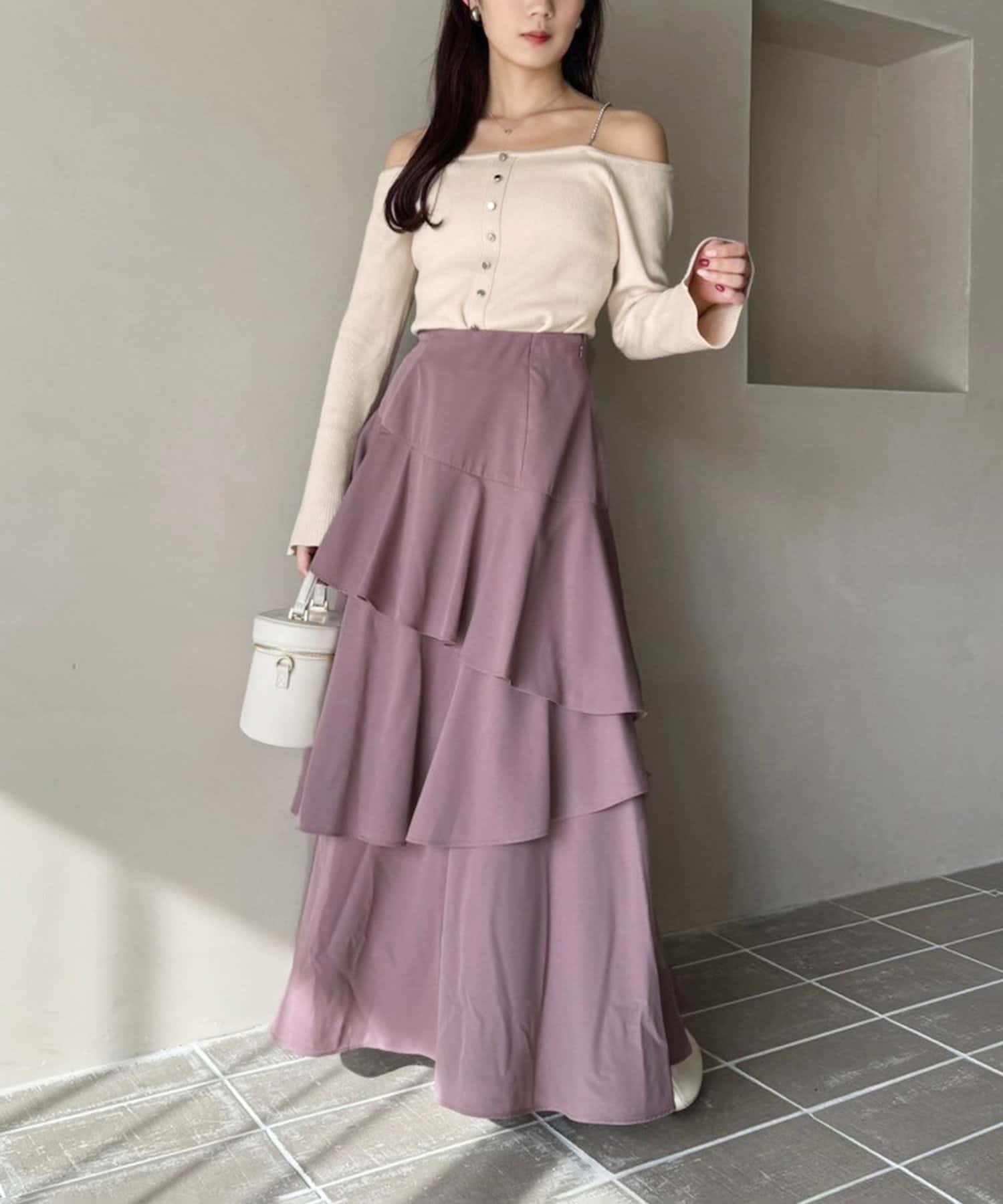 ティアードが目を惹くデザインなので、シンプルめのトップスでも