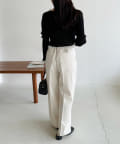 ハイウエストで腰位置を高く見せてくれ、脚長効果も抜群。