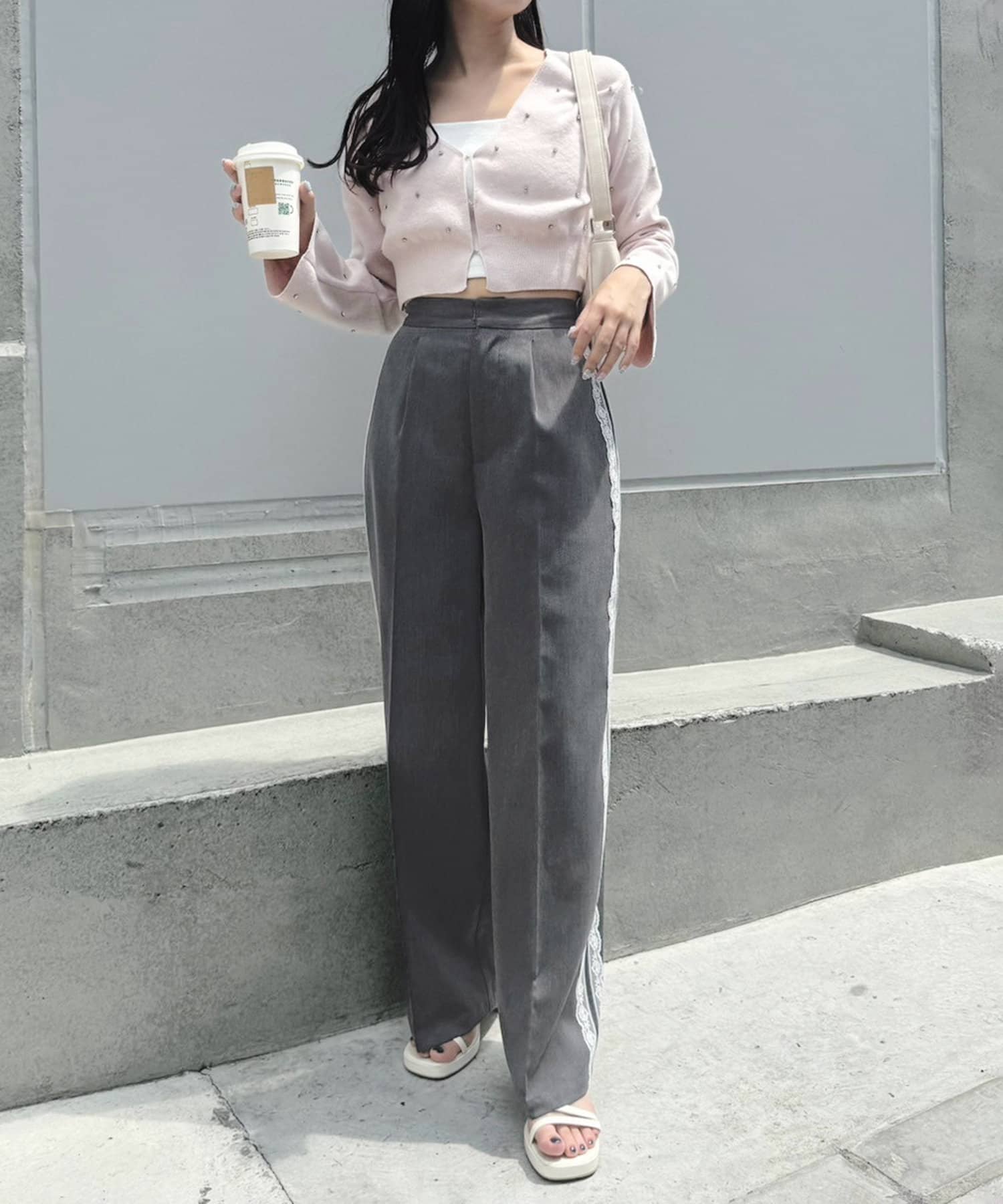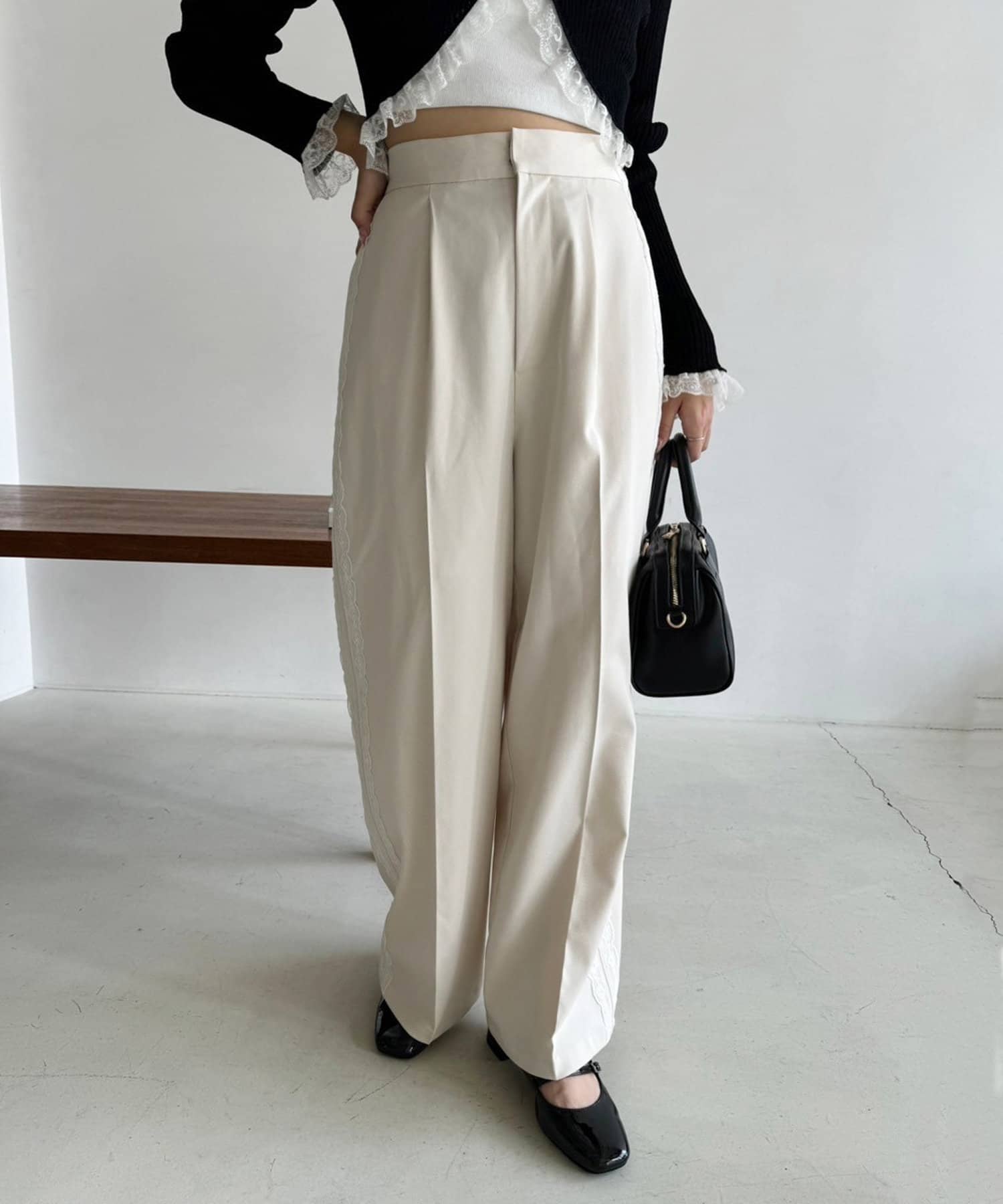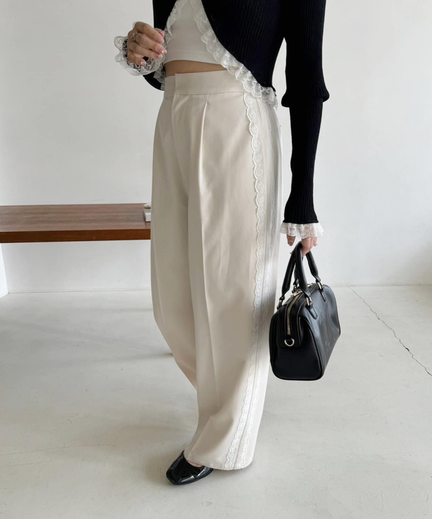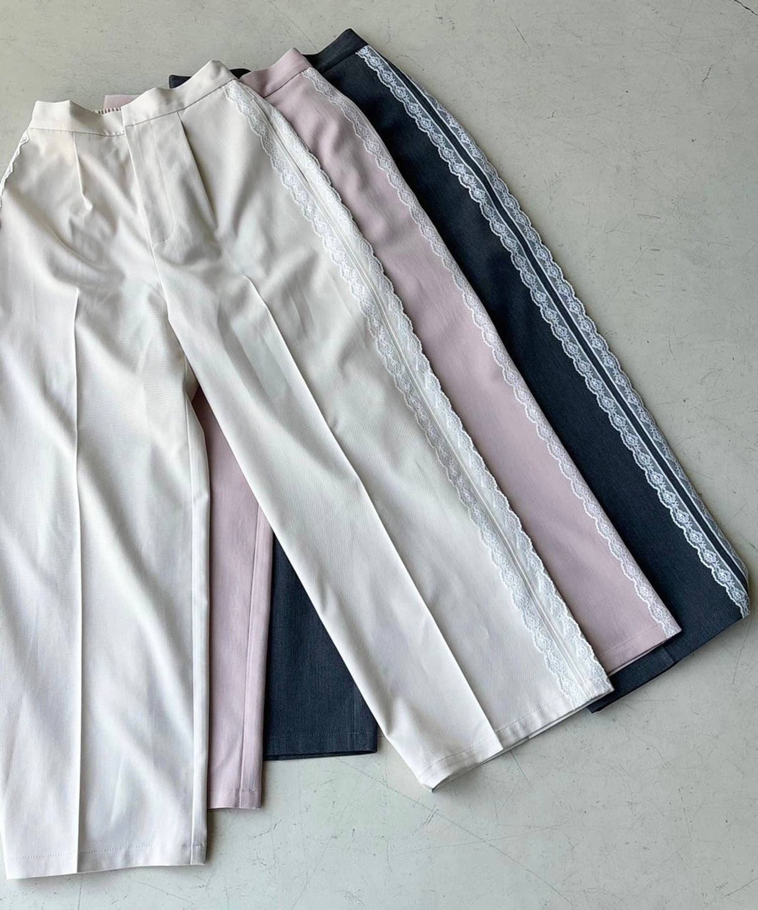 • NICE CLAUP / OLIVE des OLIVE OUTLET(ナイスクラップ  / オリーブ デ オリーブ アウトレット) 【one after another】サイドレーススラックスパンツ