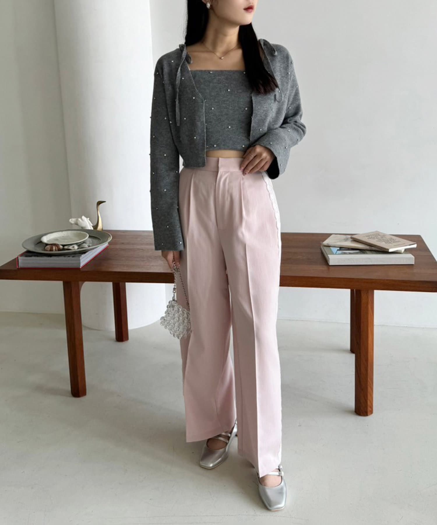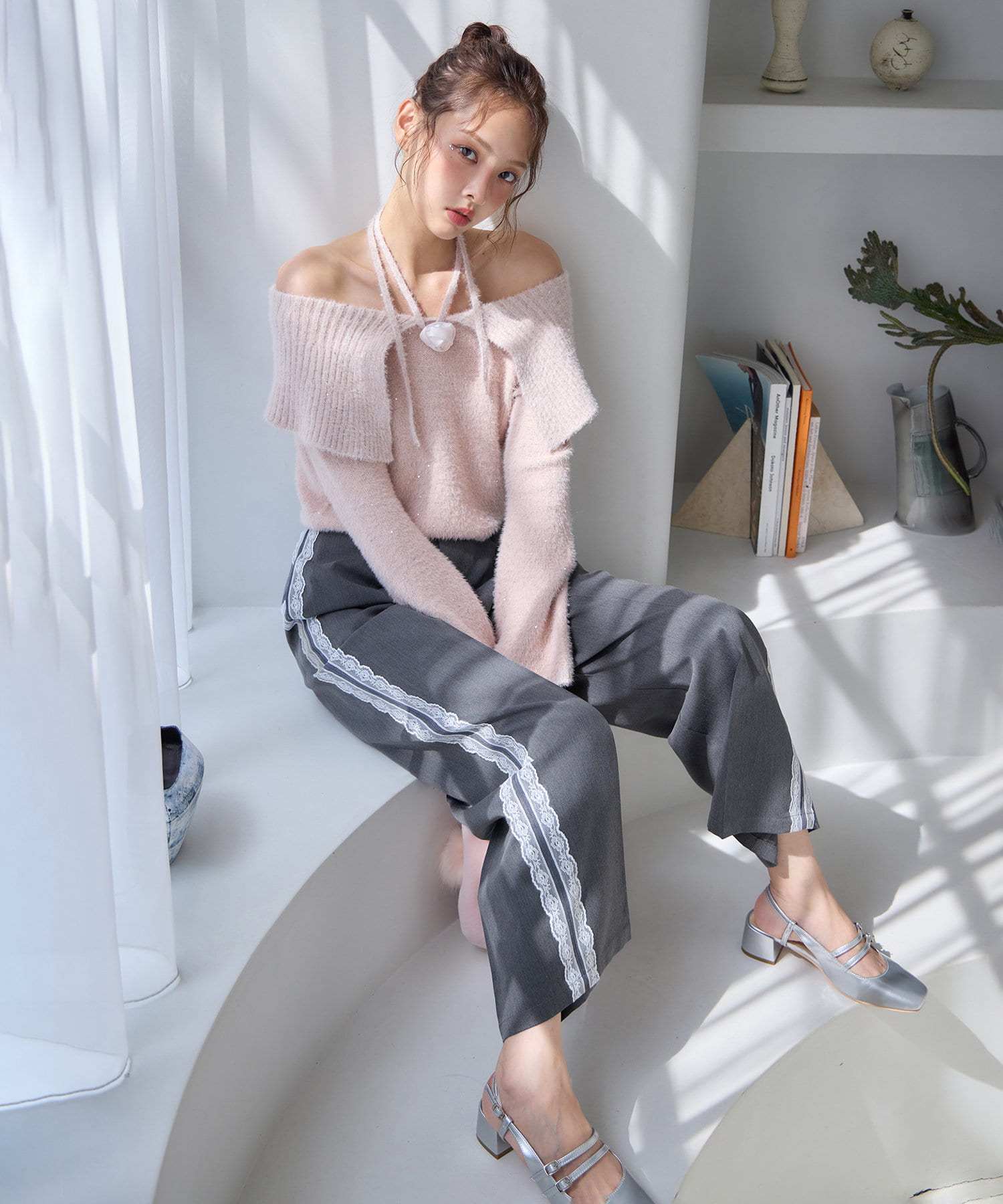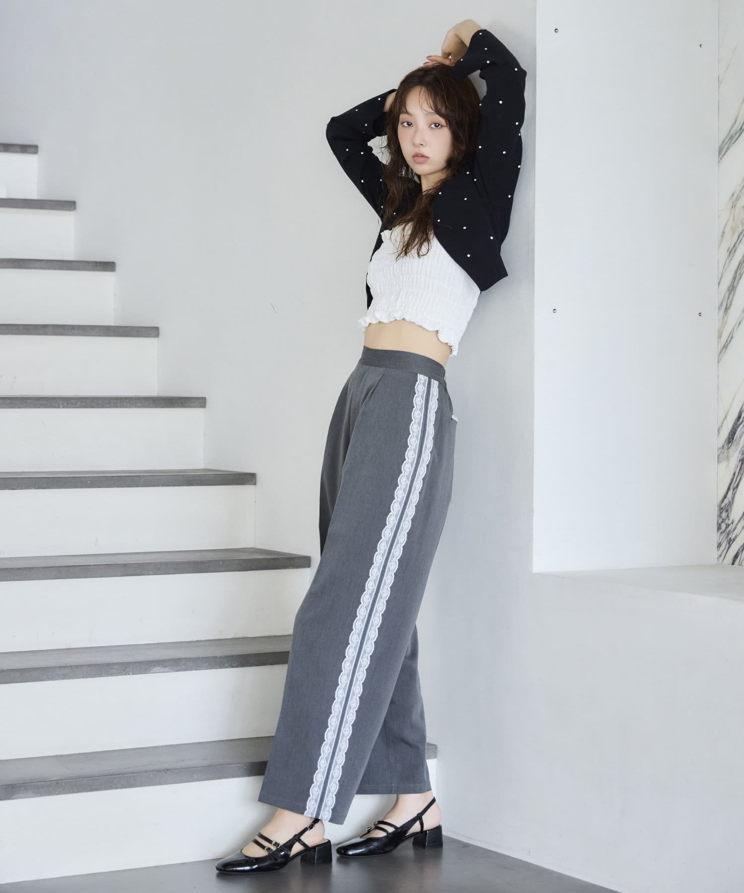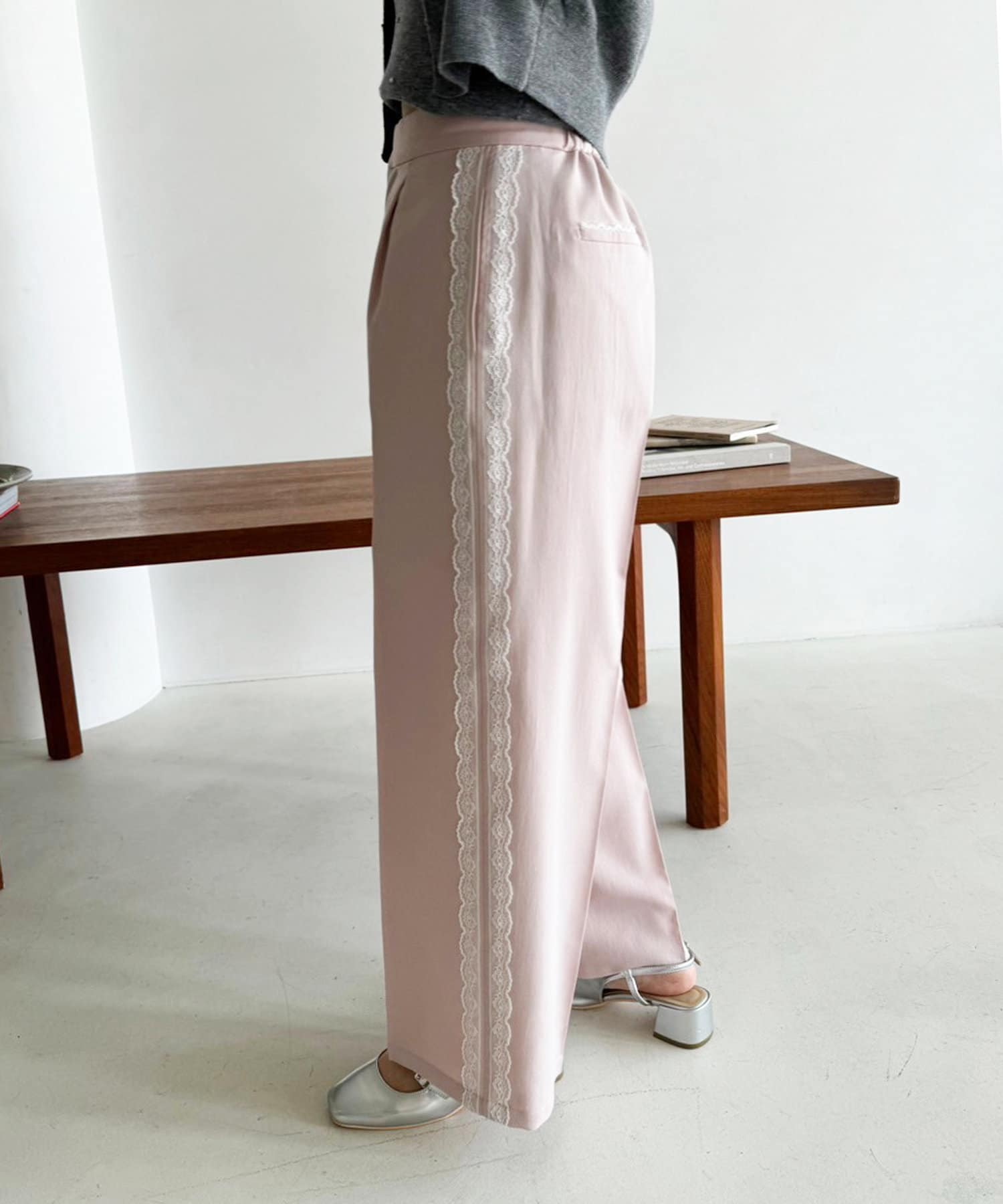 • NICE CLAUP / OLIVE des OLIVE OUTLET(ナイスクラップ  / オリーブ デ オリーブ アウトレット) 【one after another】サイドレーススラックスパンツ