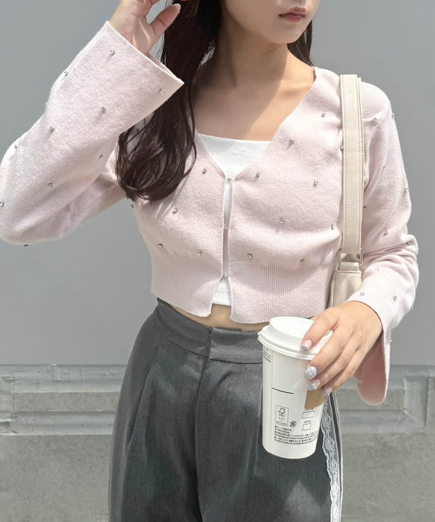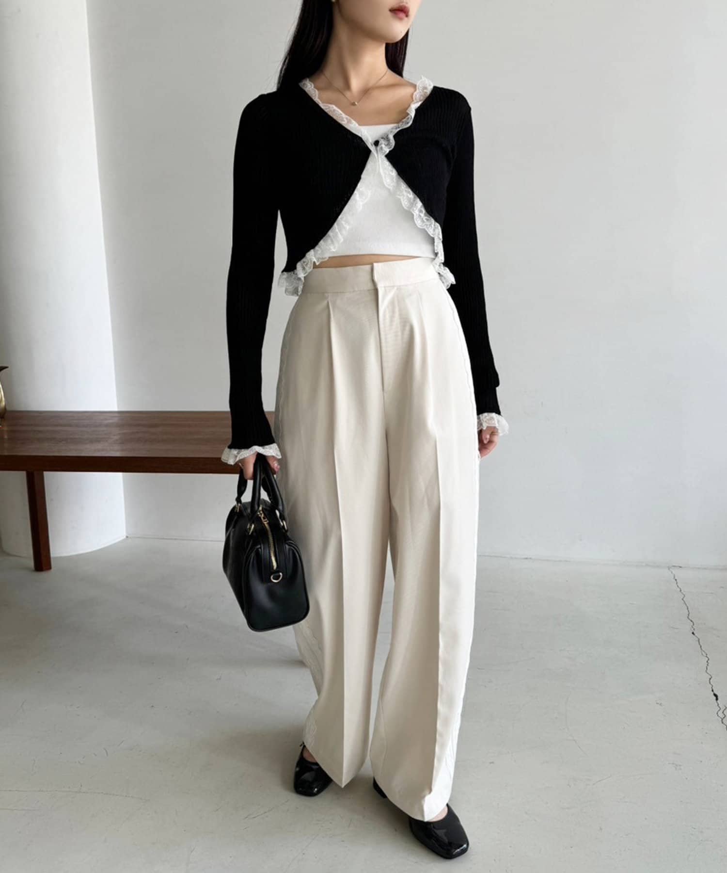 シンプルなニットやカーディガンと合わせるだけで大人っぽコーデに仕上がります。