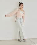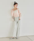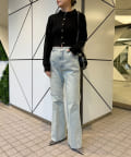 カジュアルになりやすいデニムは少し甘めなトップスとの合わせがおすすめ。