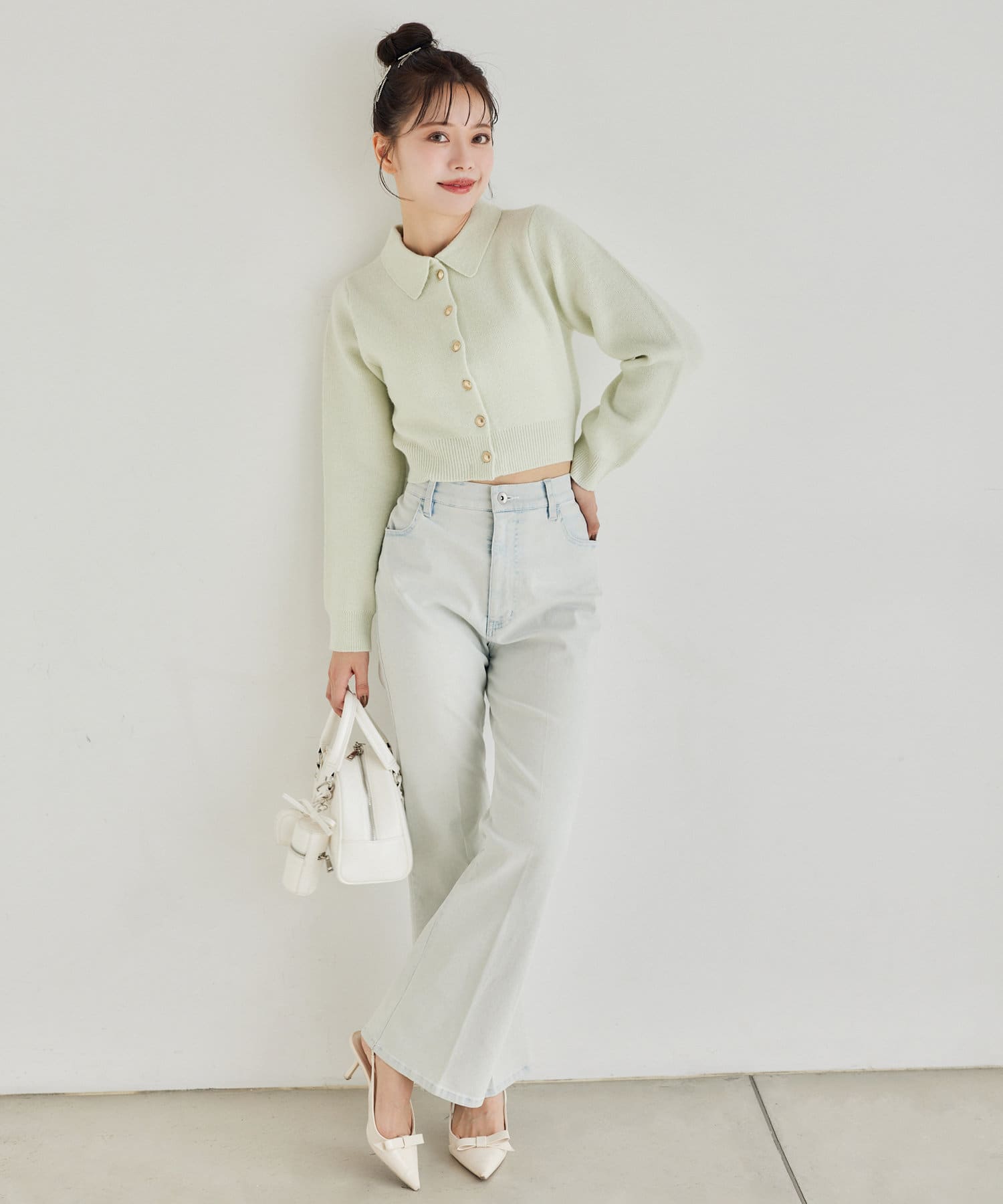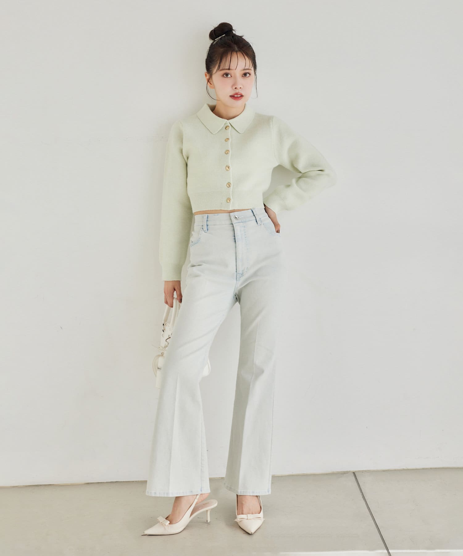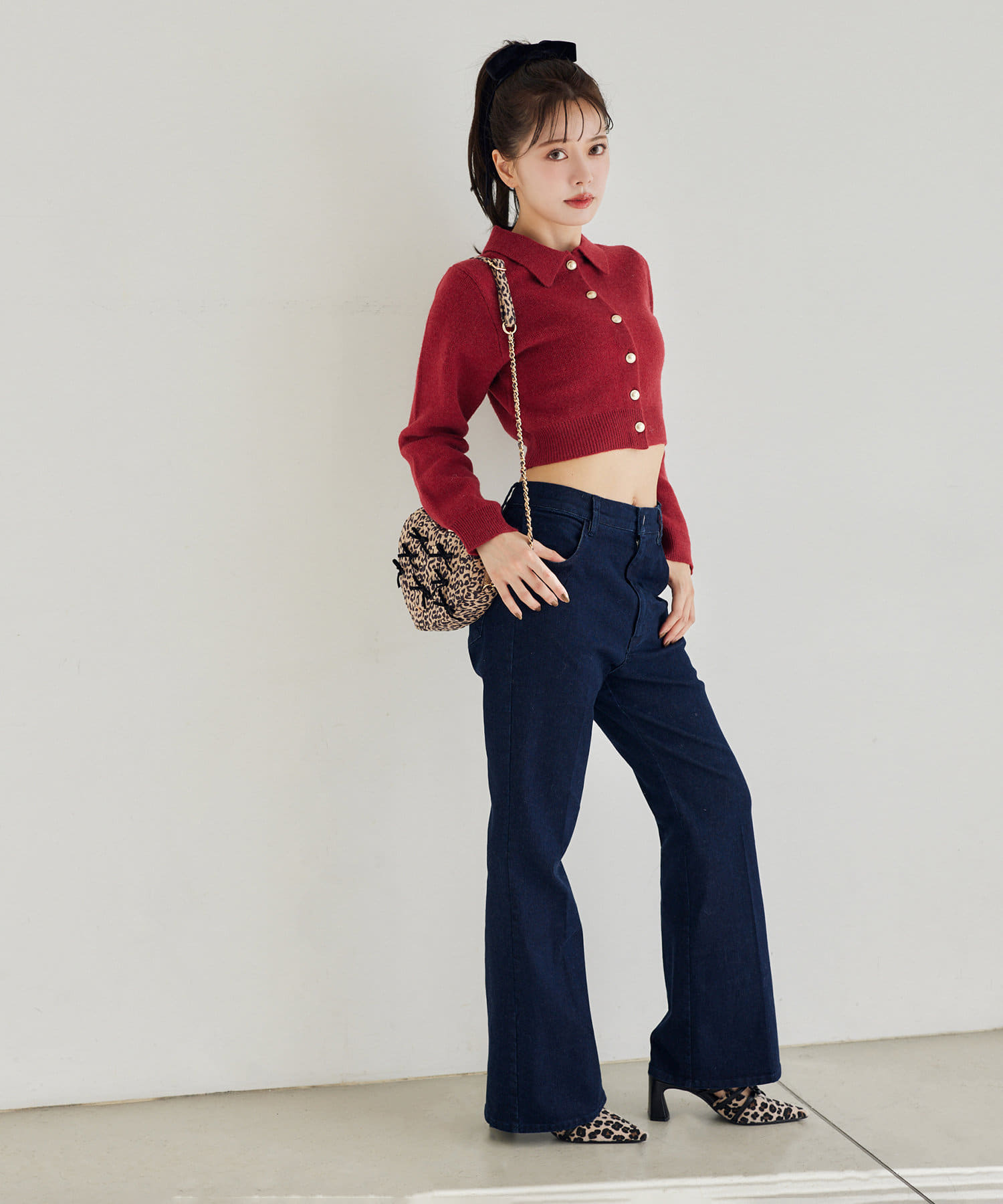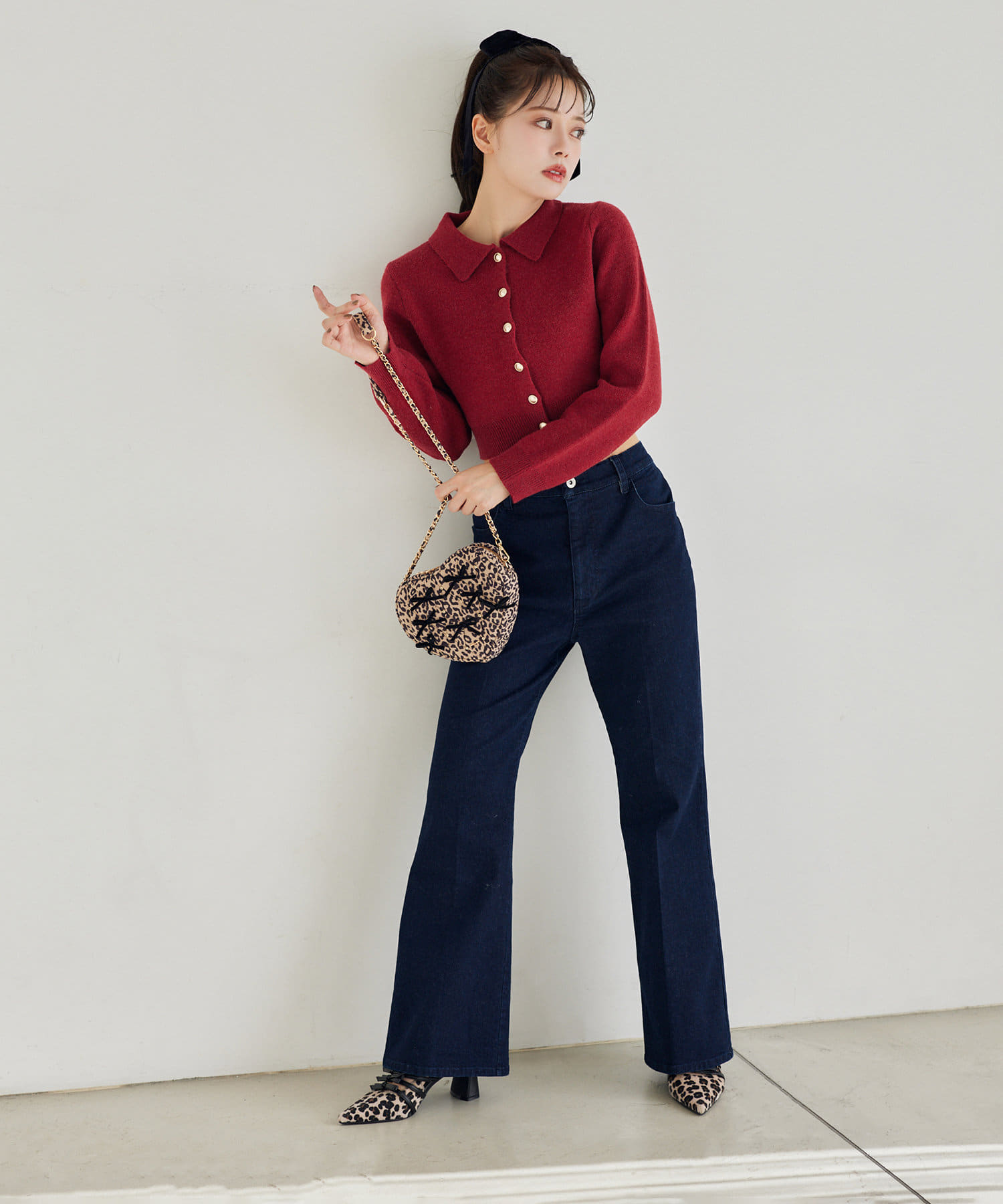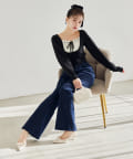 ハイウエスト×フレアシルエットで脚長な美スタイルへと導きます。
