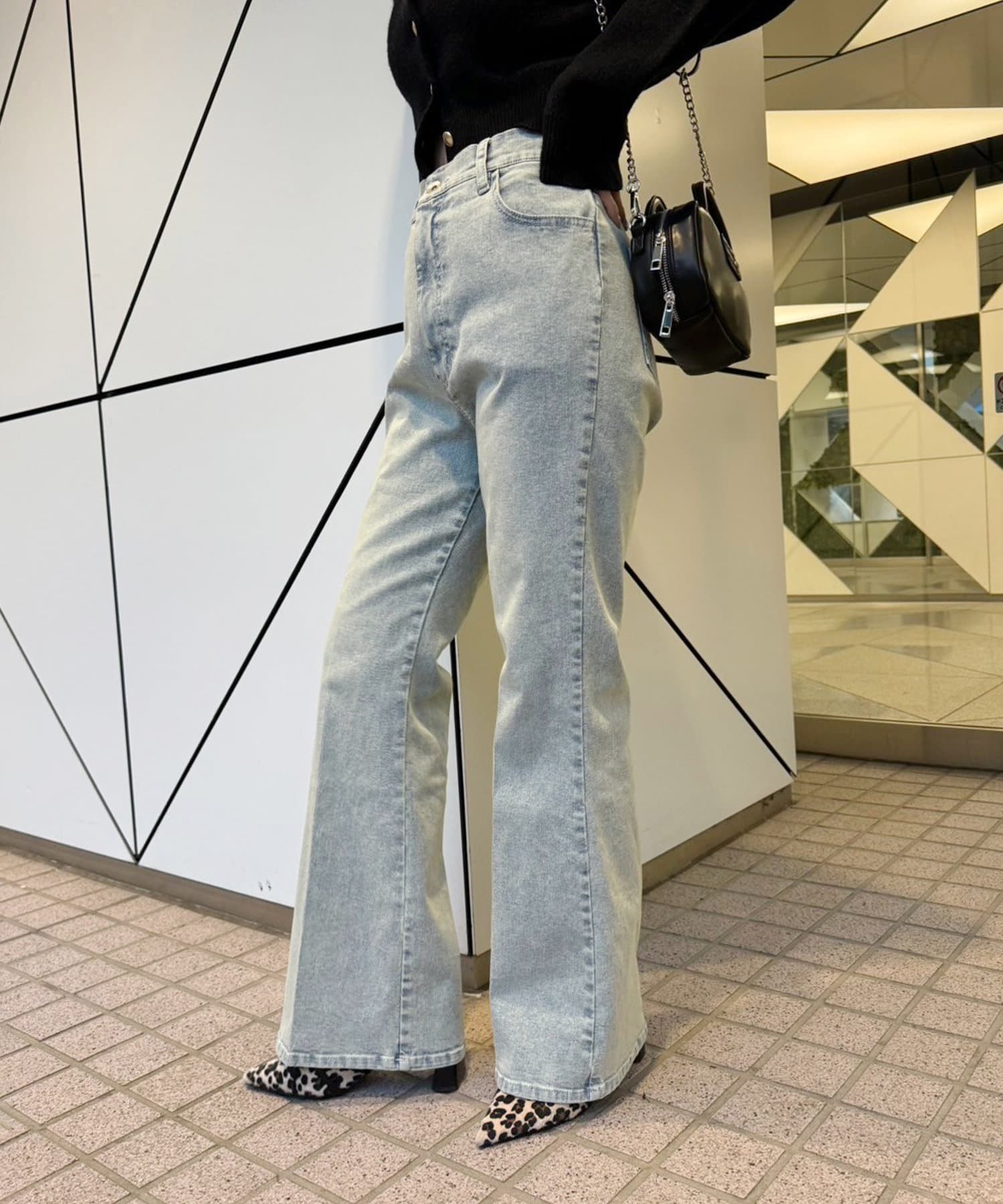 【美脚見え◎】ストレッチフレアデニムパンツ