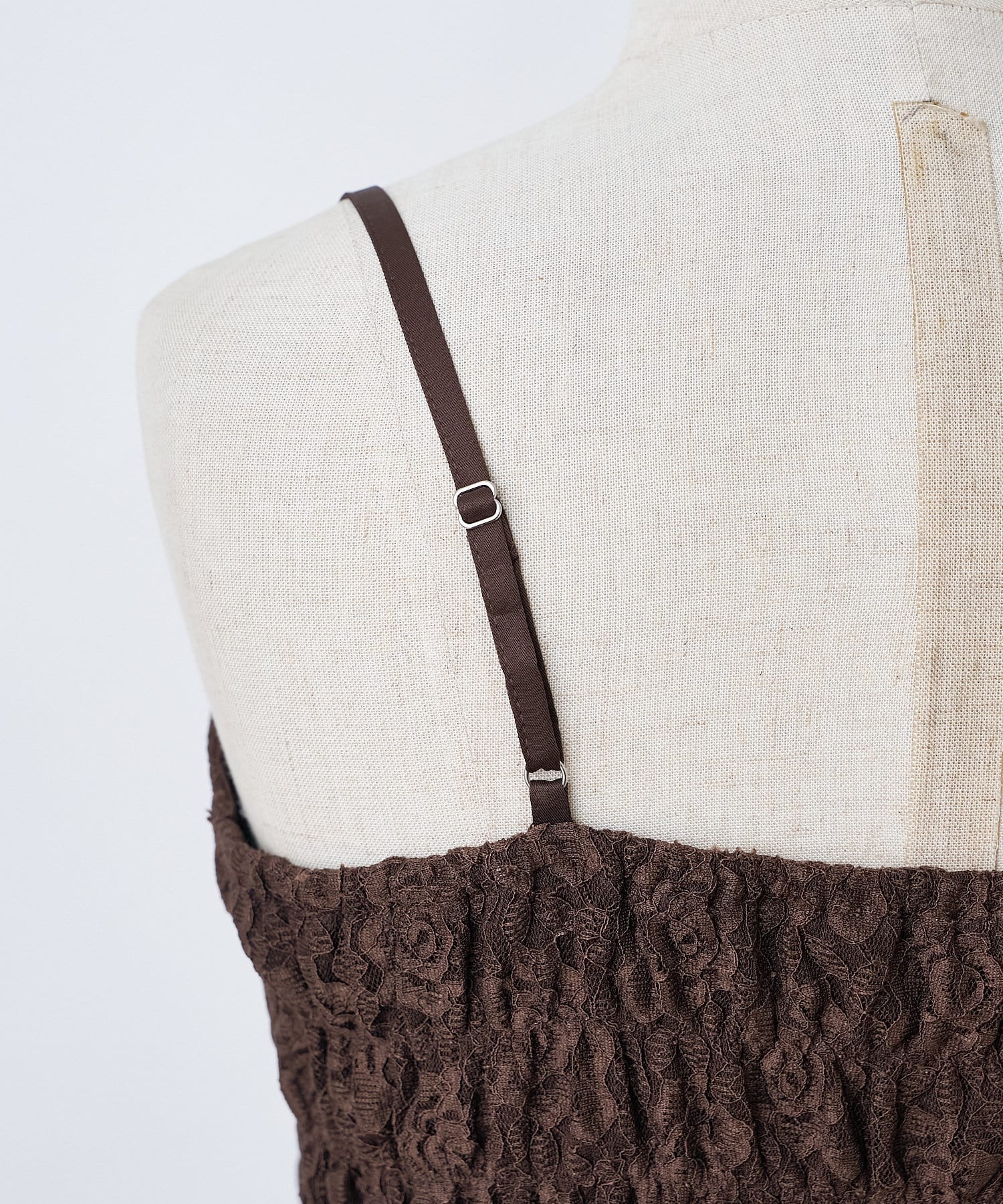 キャミソールの胸元は、裏からドロストを調節できる仕様になっていて、