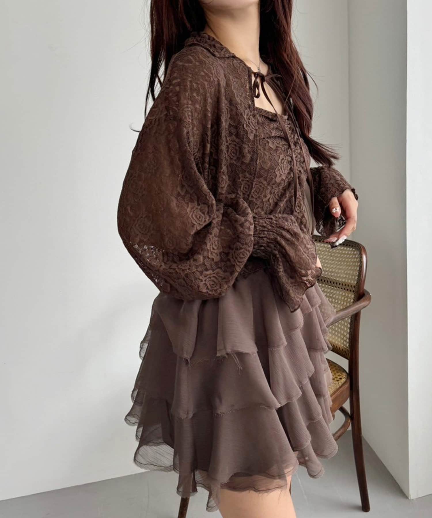 ボリューム袖のボレロと同色のキャミソールがセットになったアイテム