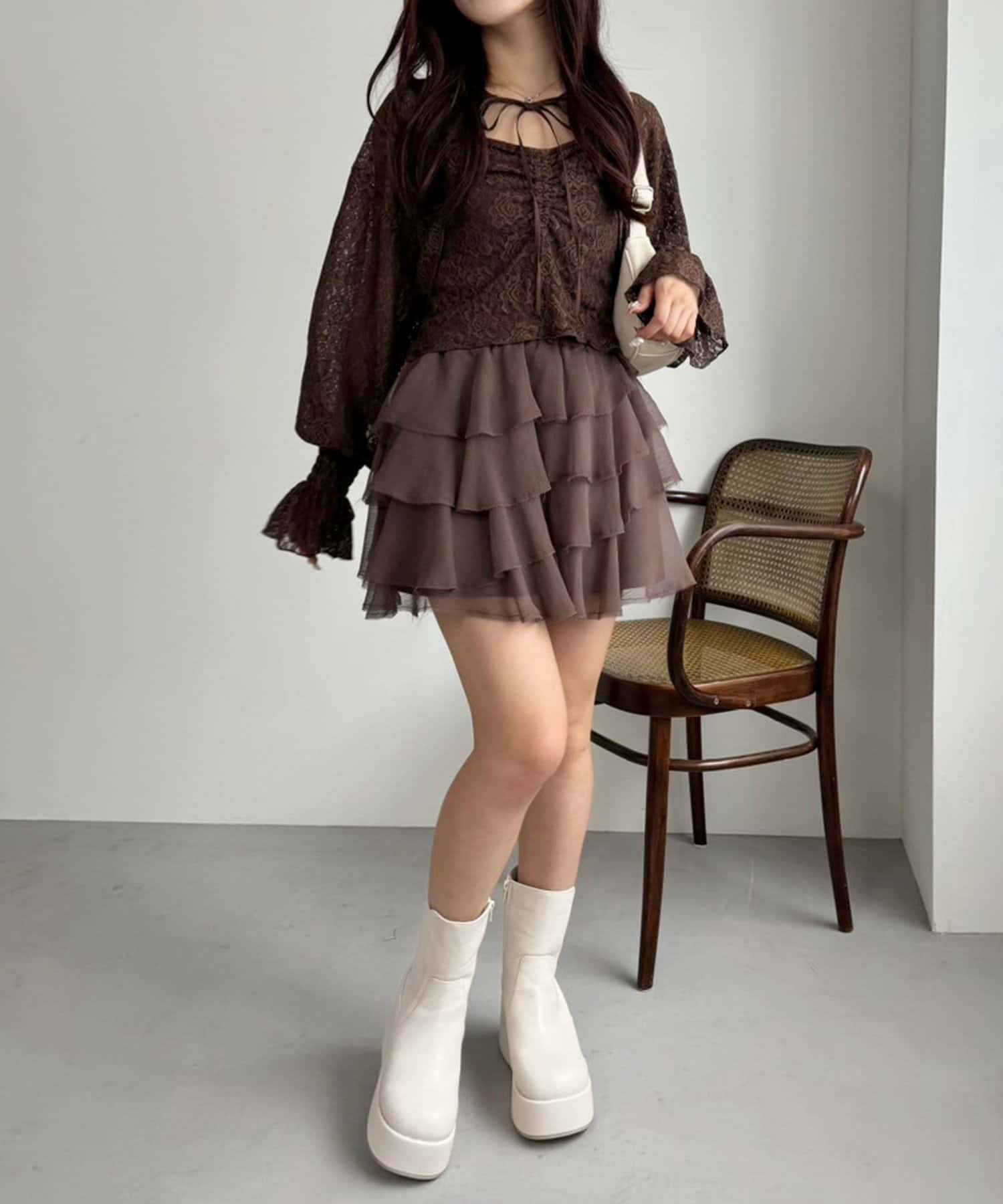 ガーリーなコーディネートがお好きな方は、マーメイドスカートやミニスカートと合わせるのがオススメです。