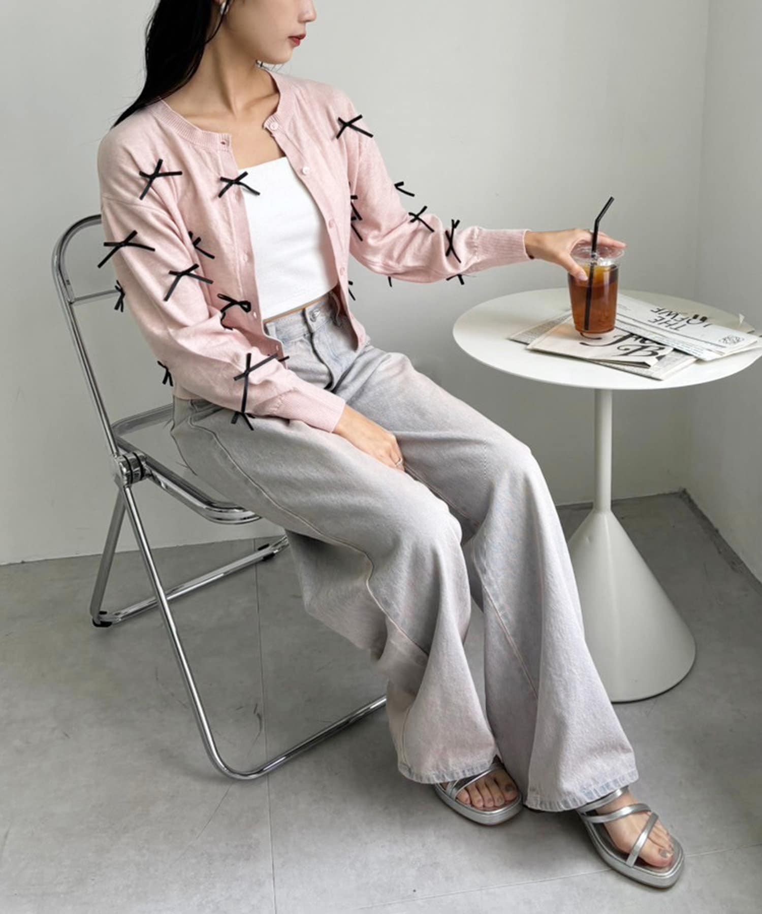• NICE CLAUP / OLIVE des OLIVE OUTLET(ナイスクラップ  / オリーブ デ オリーブ アウトレット) 【one after another】リボンいっぱいカーデ
