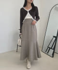 トップスとして着るときは前のボタンを閉じ、中にキャミソールを合わせるのがオススメ。