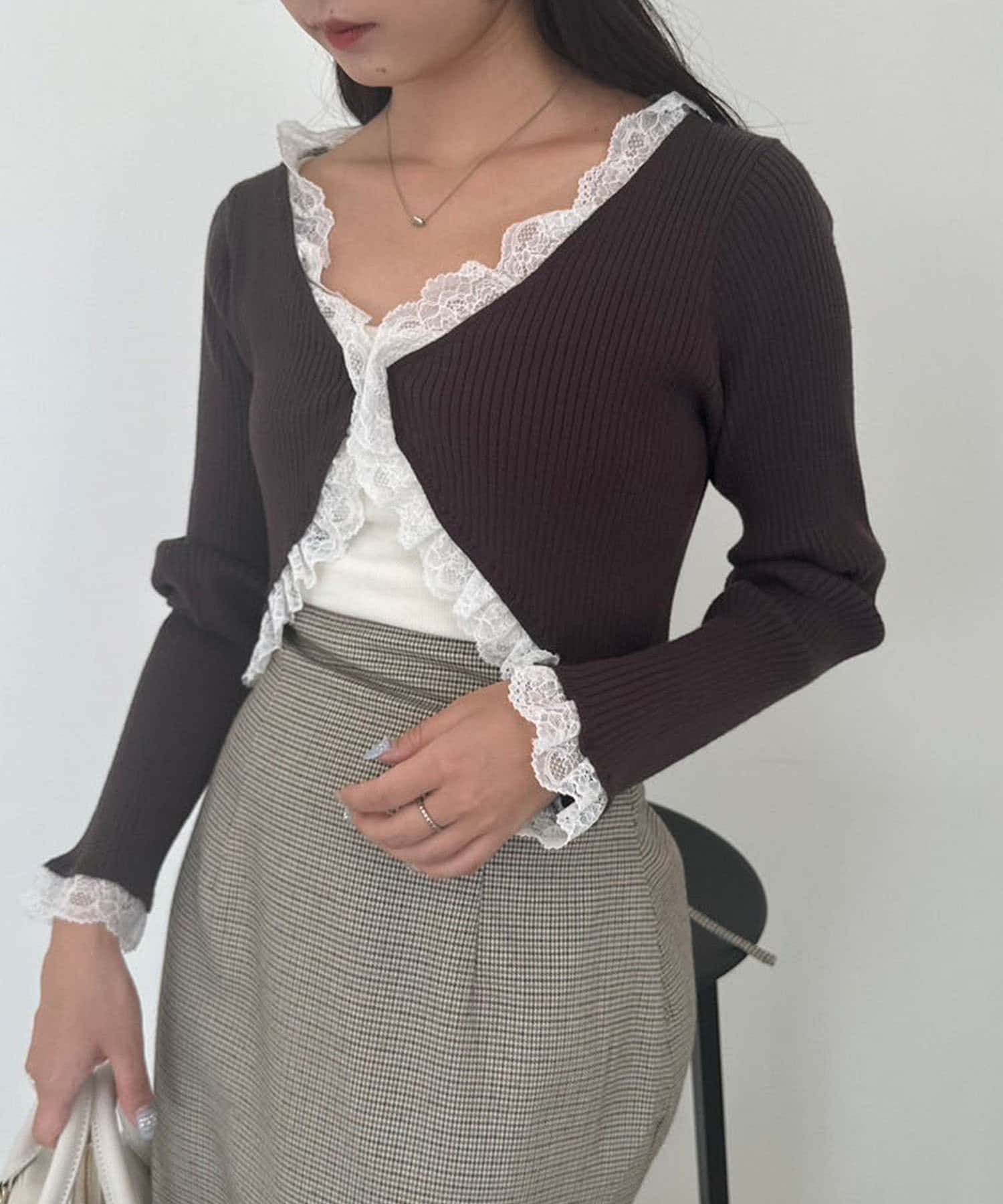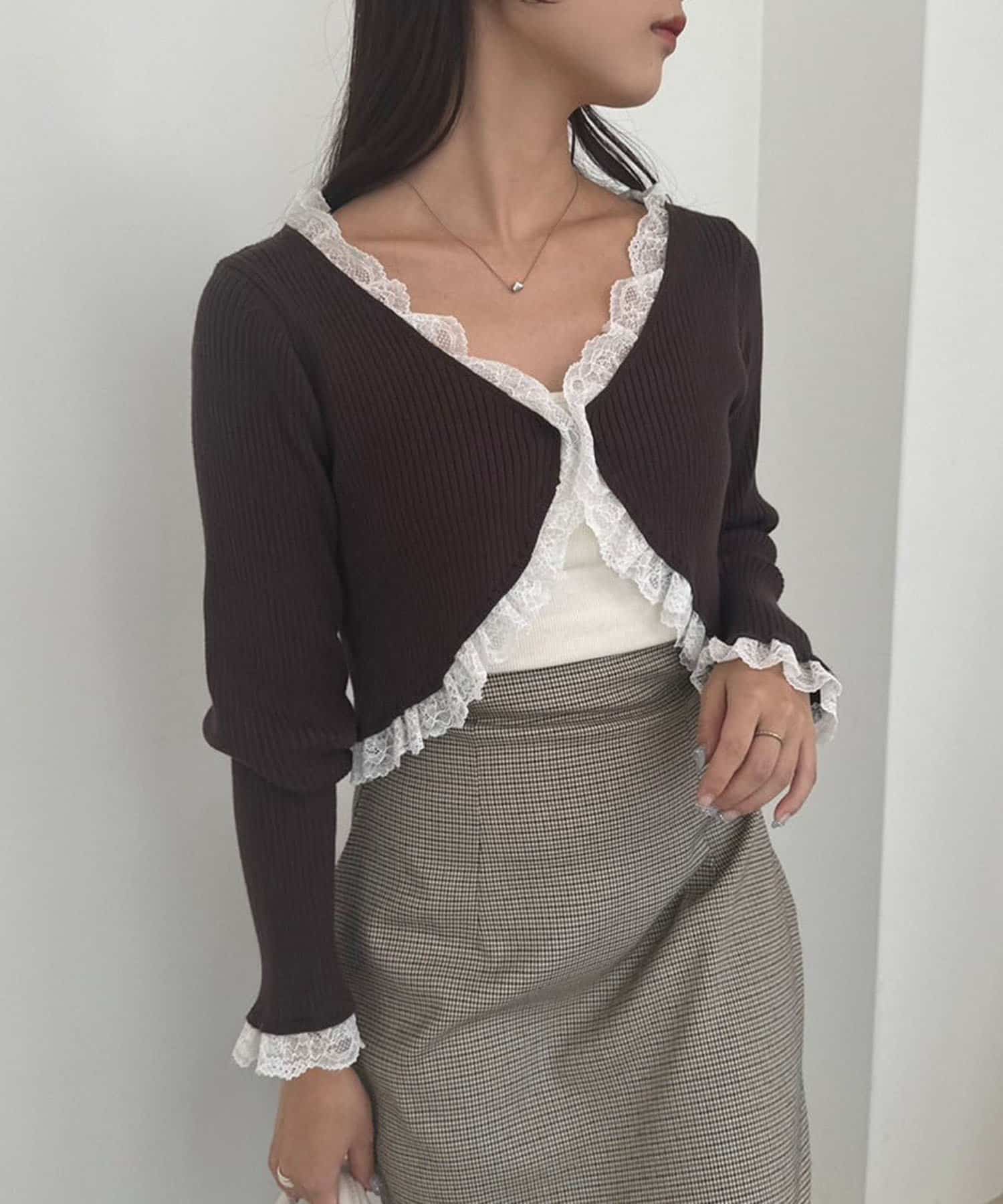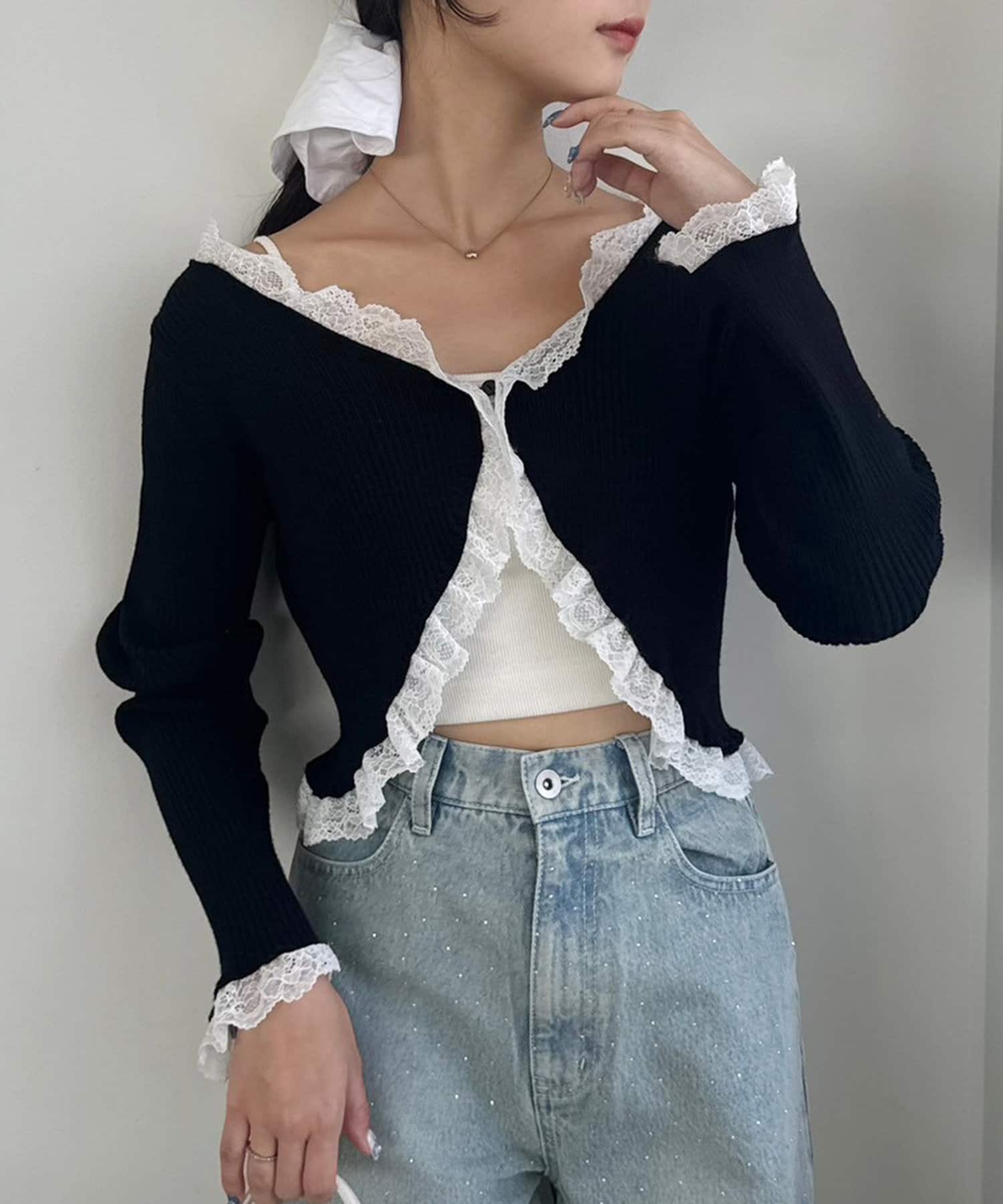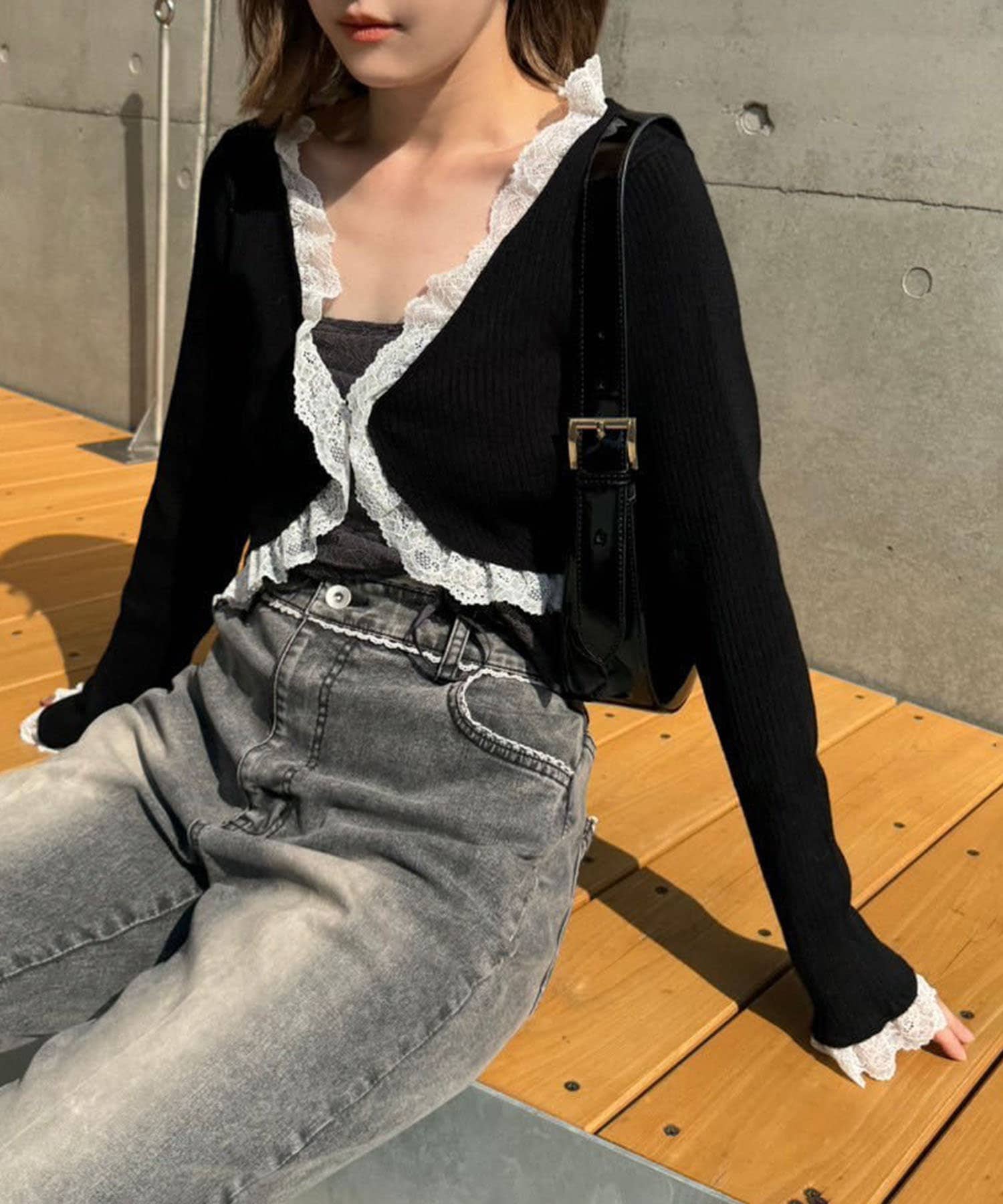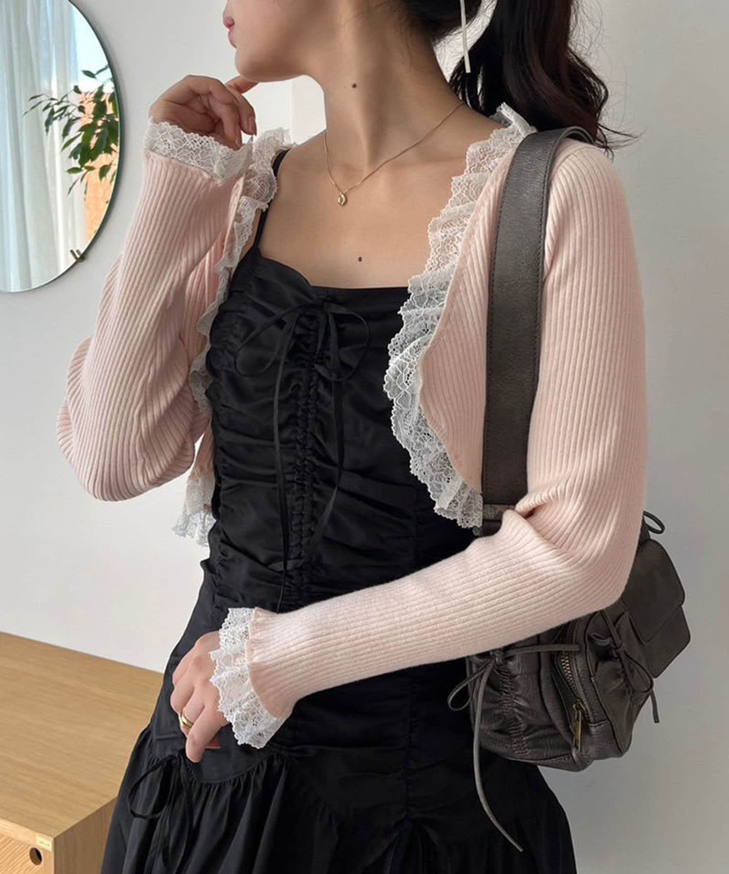 ショート丈でこなれ感があり、レースが華やかさをプラスしてくれるボレロカーディガン