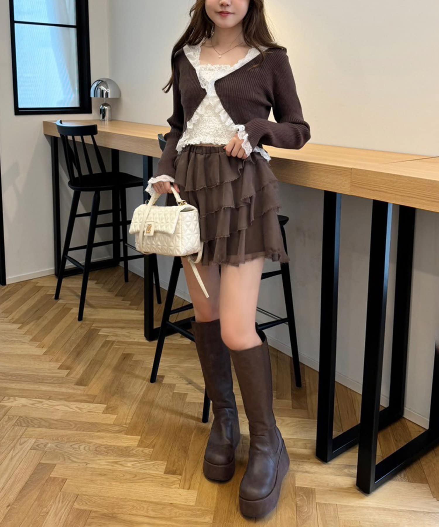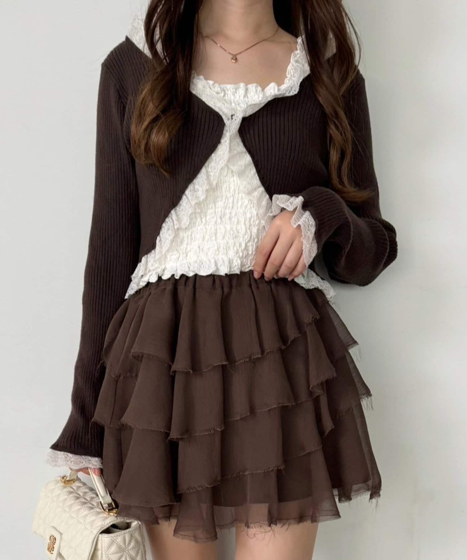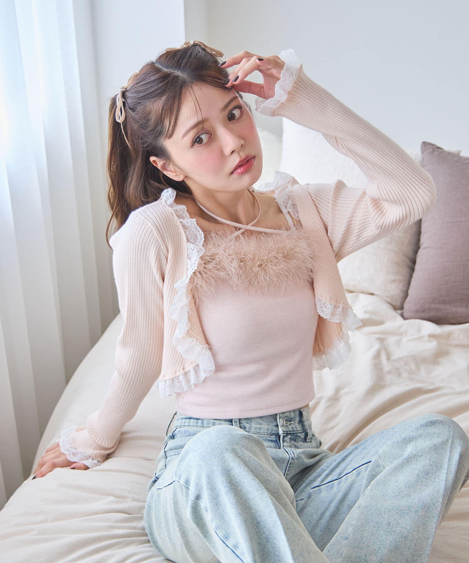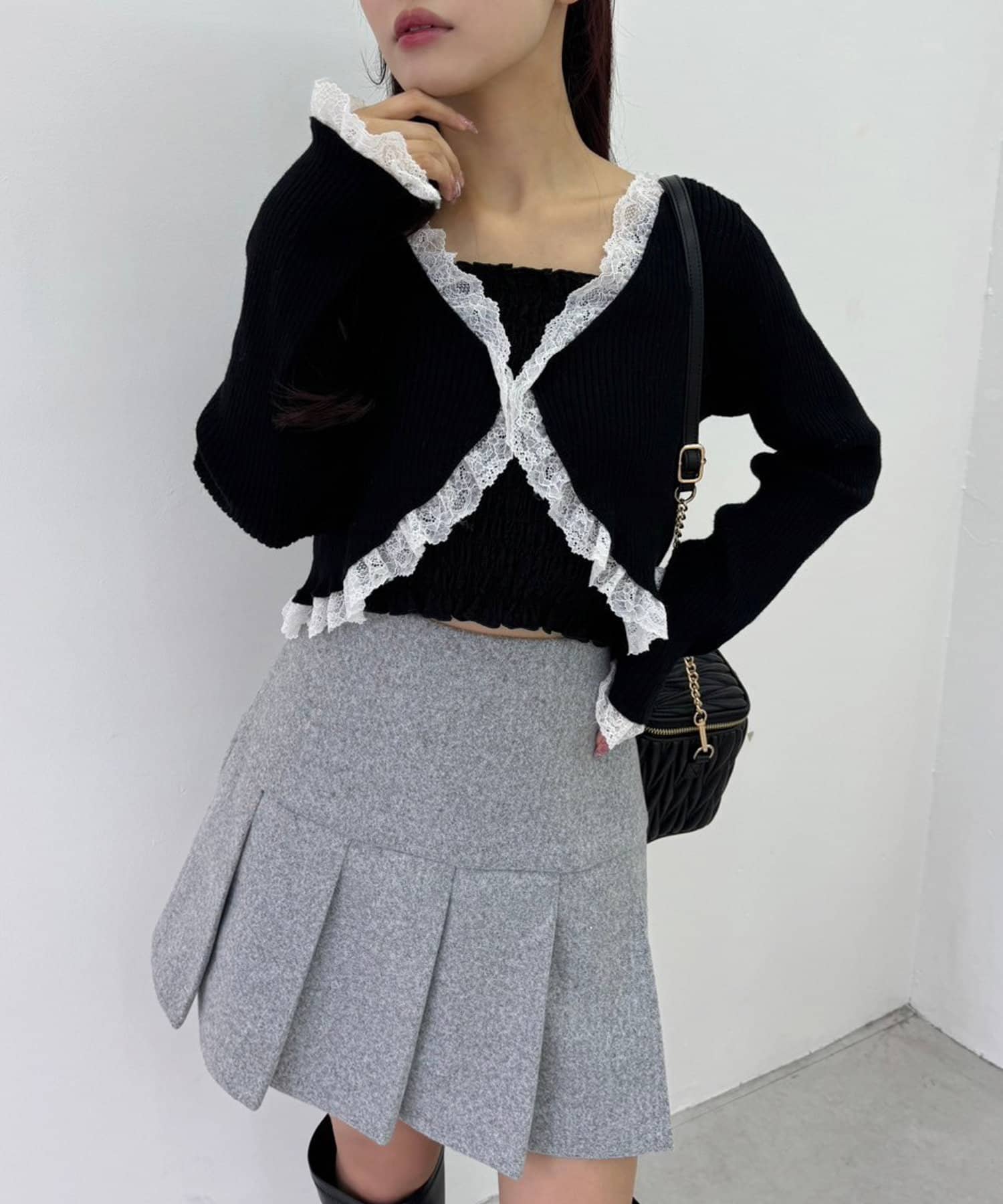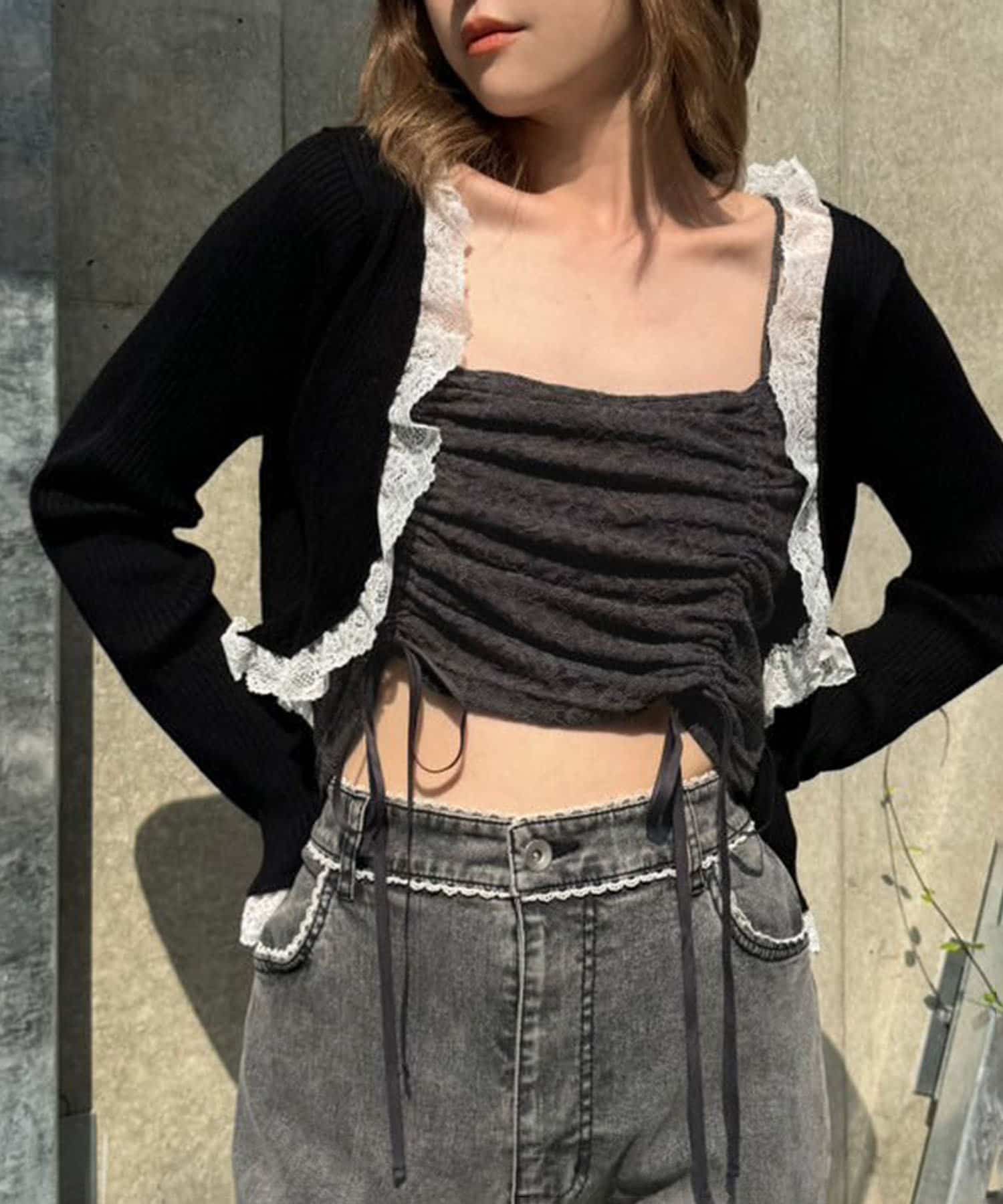 ショート丈でこなれ感があり、レースが華やかさをプラスしてくれるボレロカーディガン