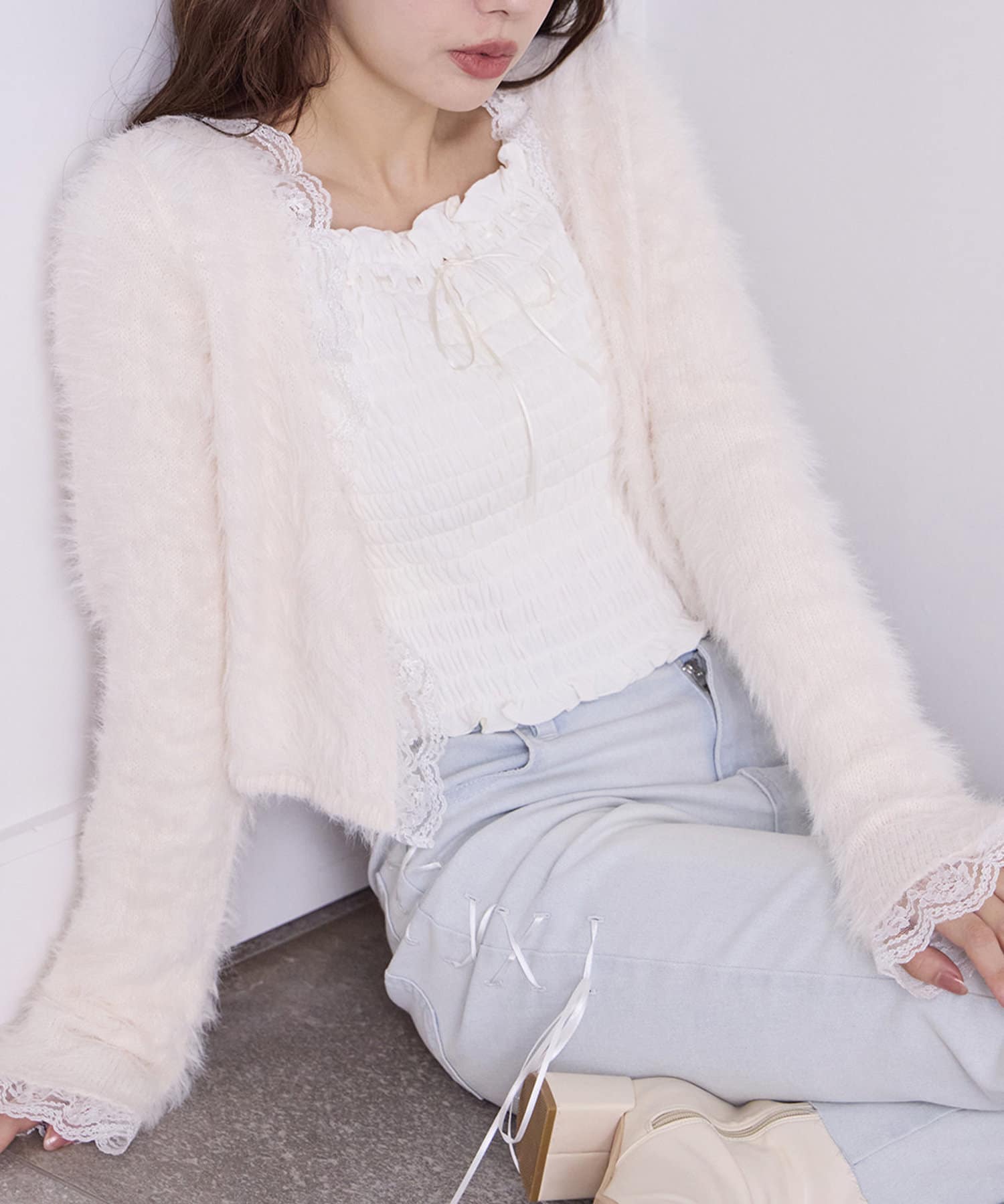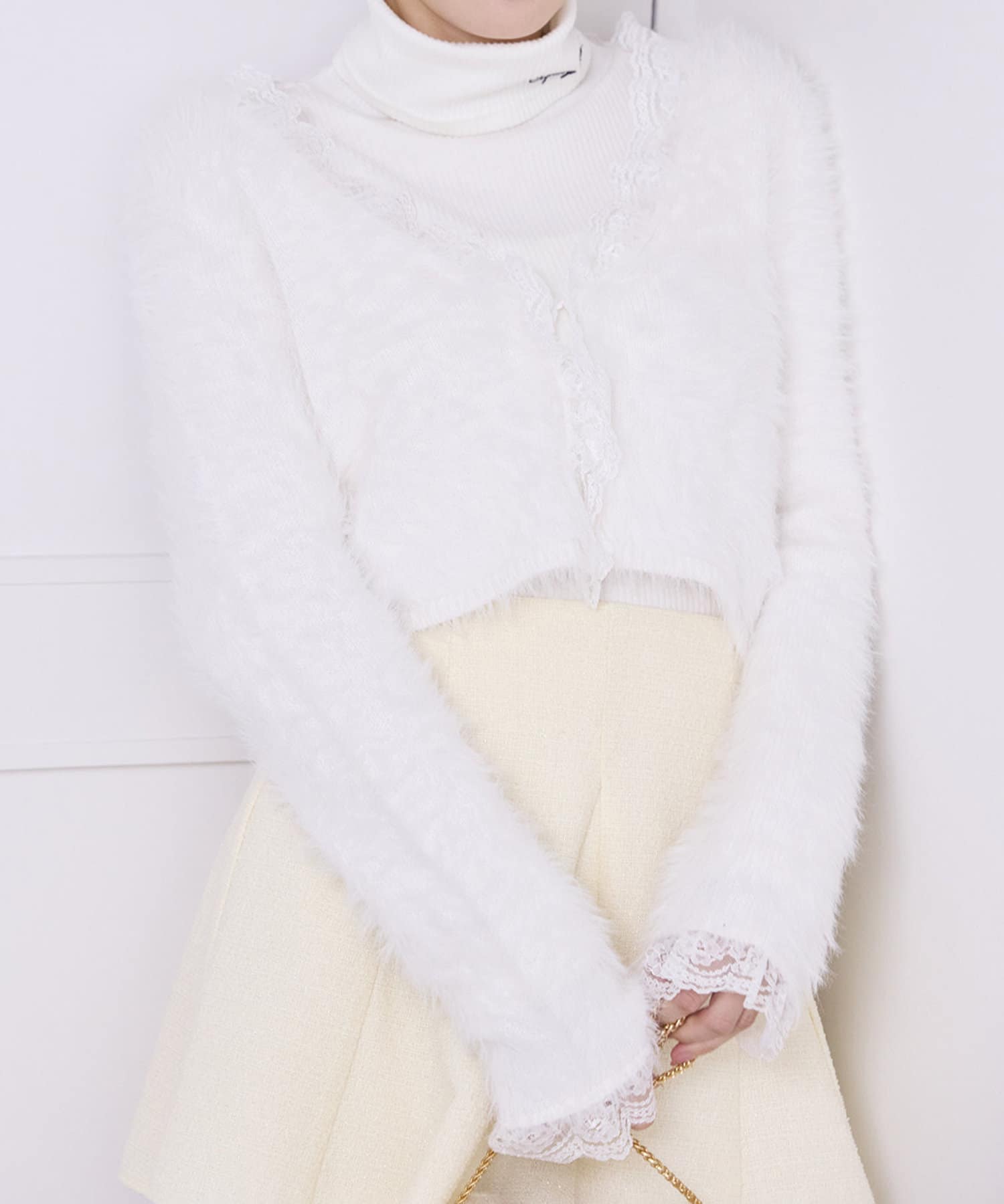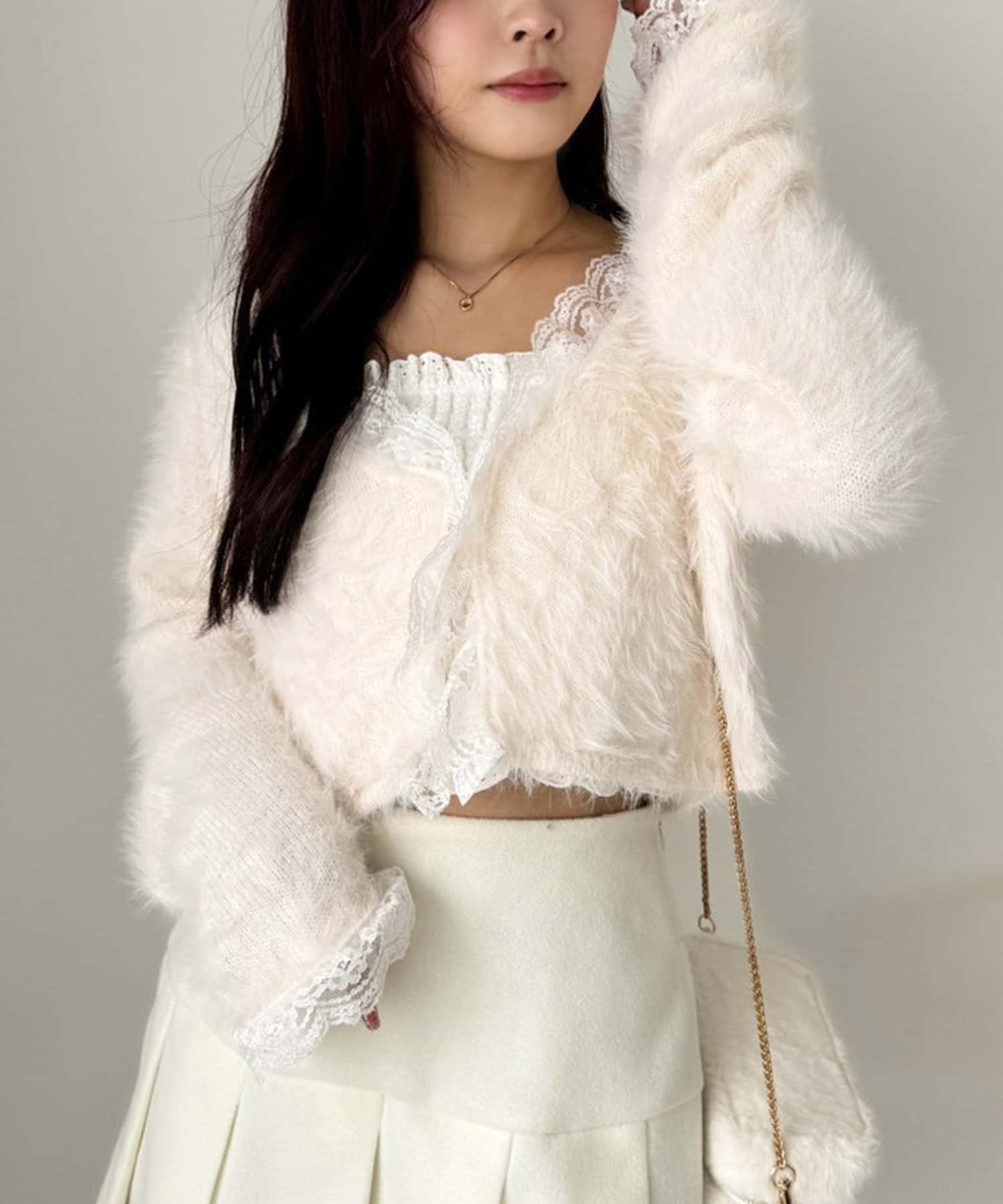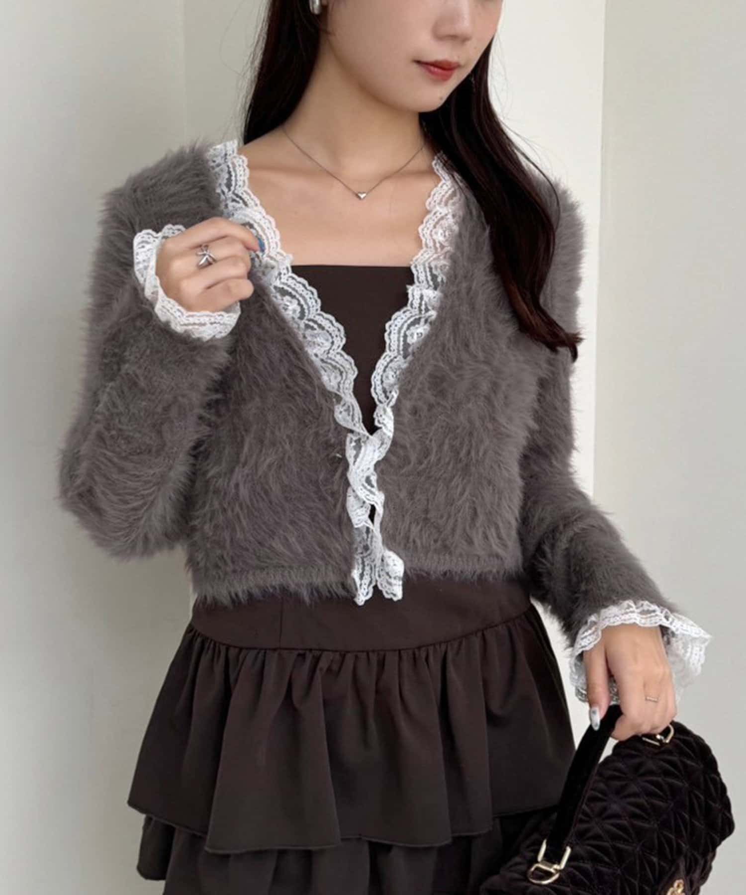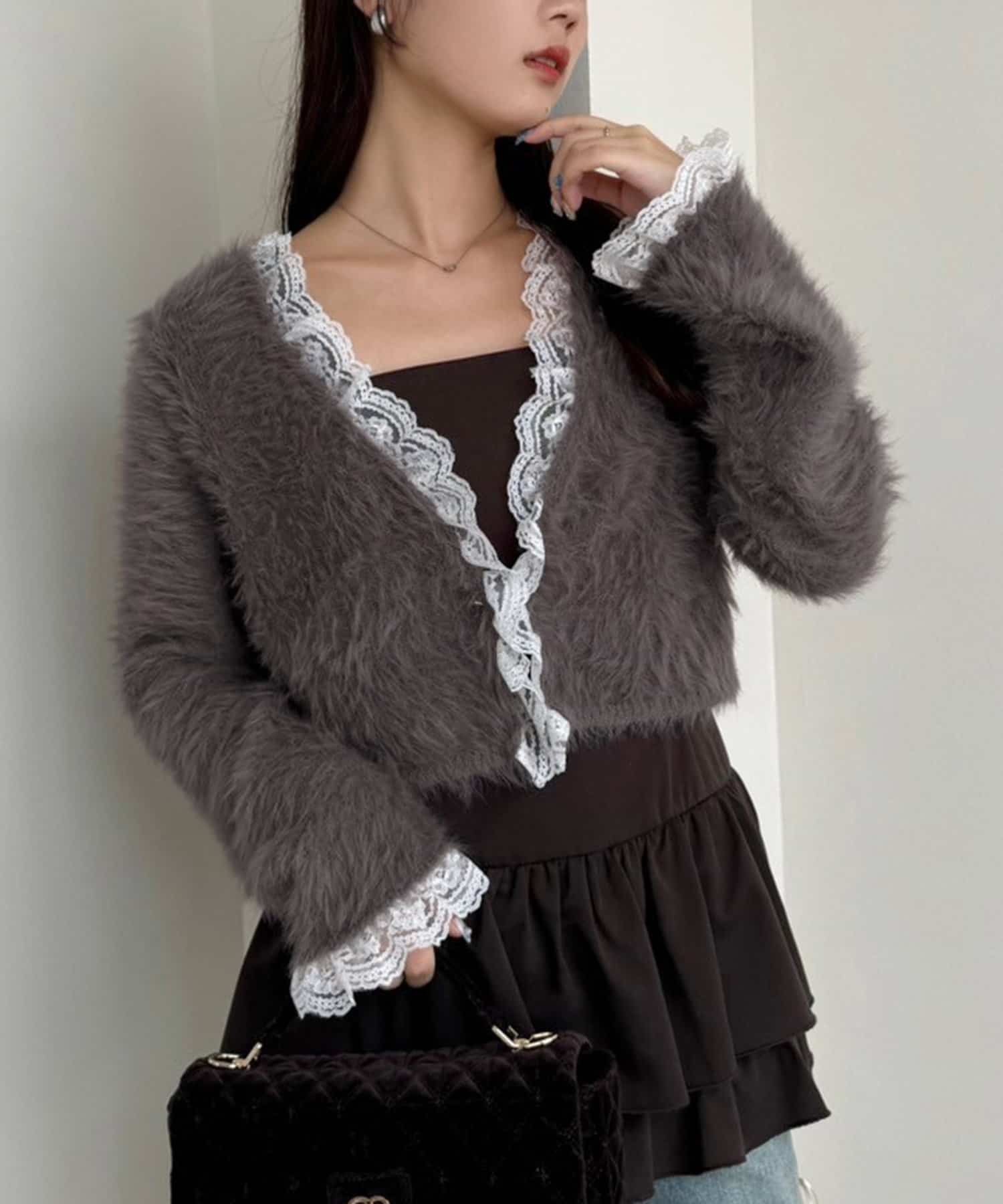ふわふわな着心地で、レースが華やかさをプラスしてくれるニットカーディガン