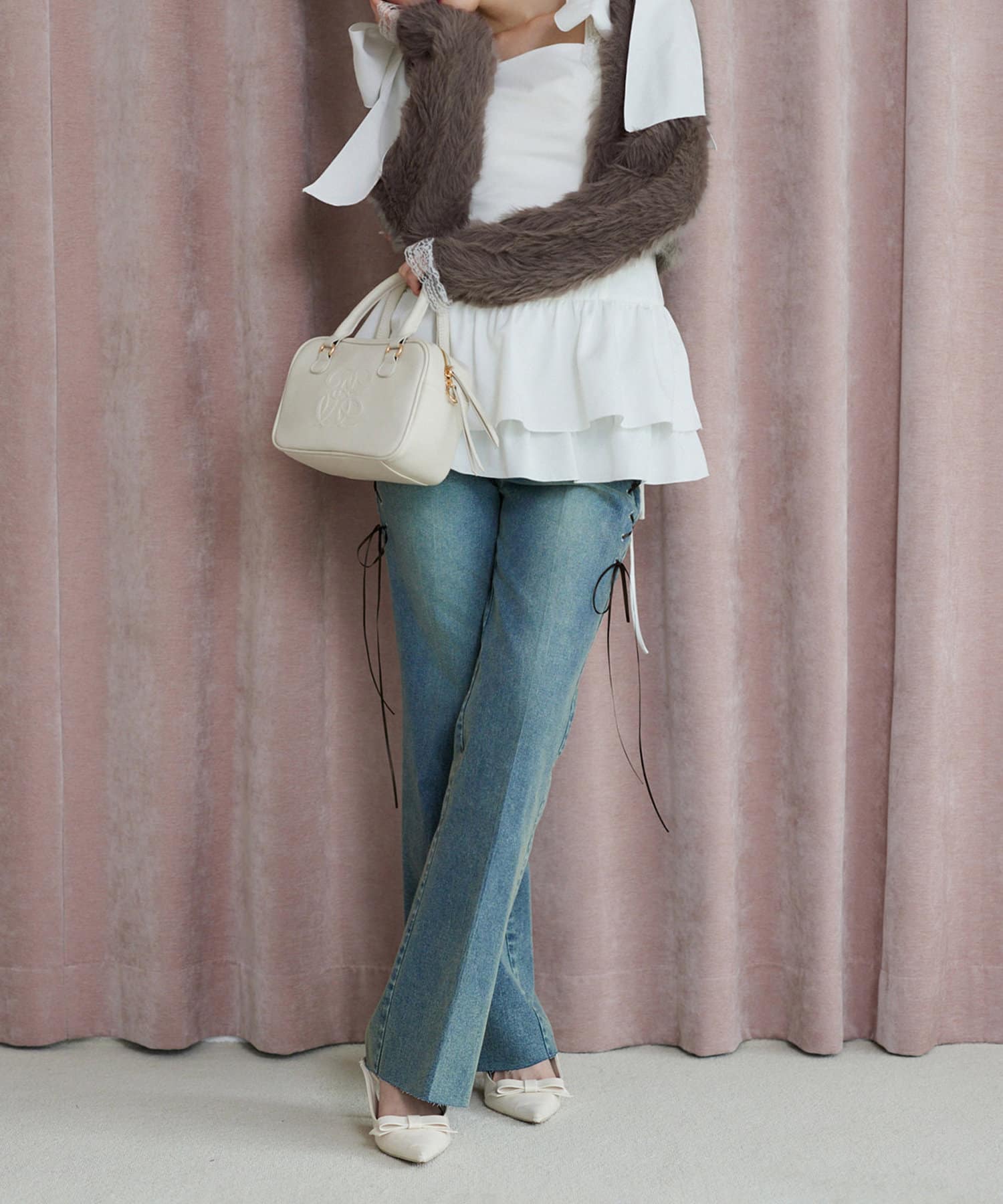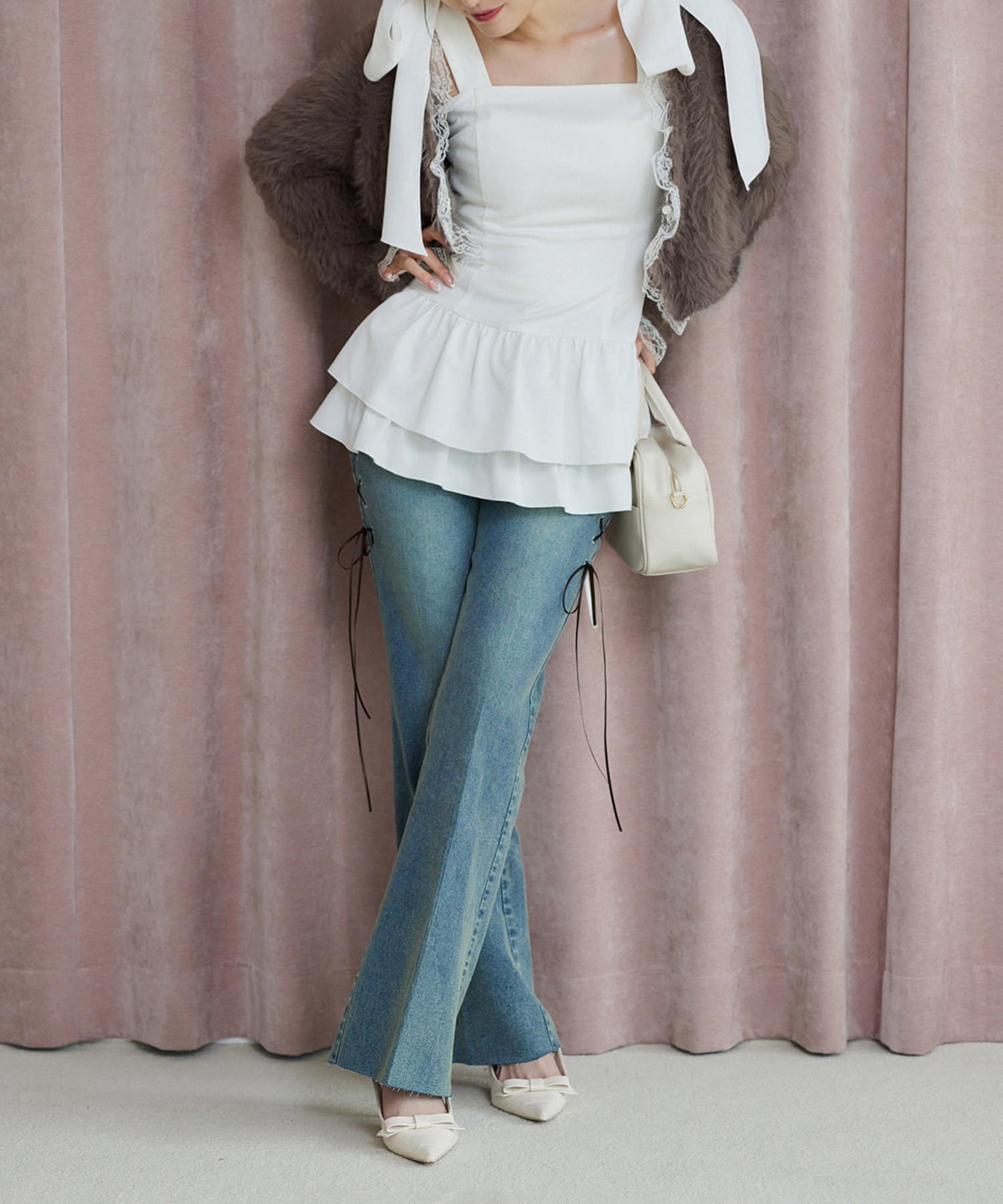 ブラウスと合わせればフェミニンなスタイリングが完成します。