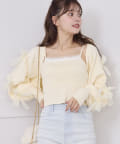 キャミソールは胸元にマラボ-をあしらい、フェミニンさをプラス。