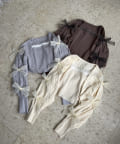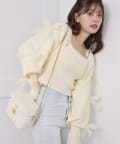 袖にいっぱいのリボンが付いたニットボレロと