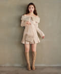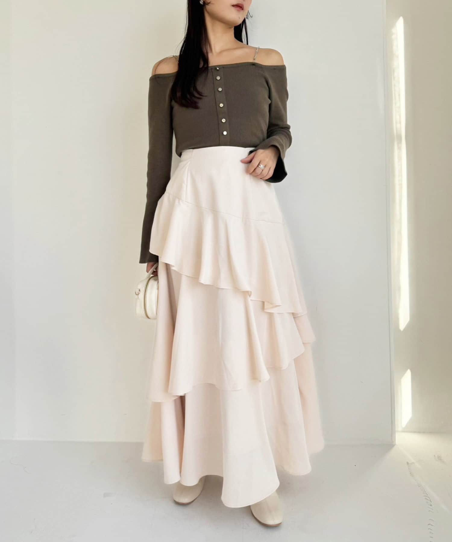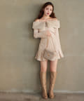 デコルテラインを綺麗に見せてくれるオフショルデザインで、