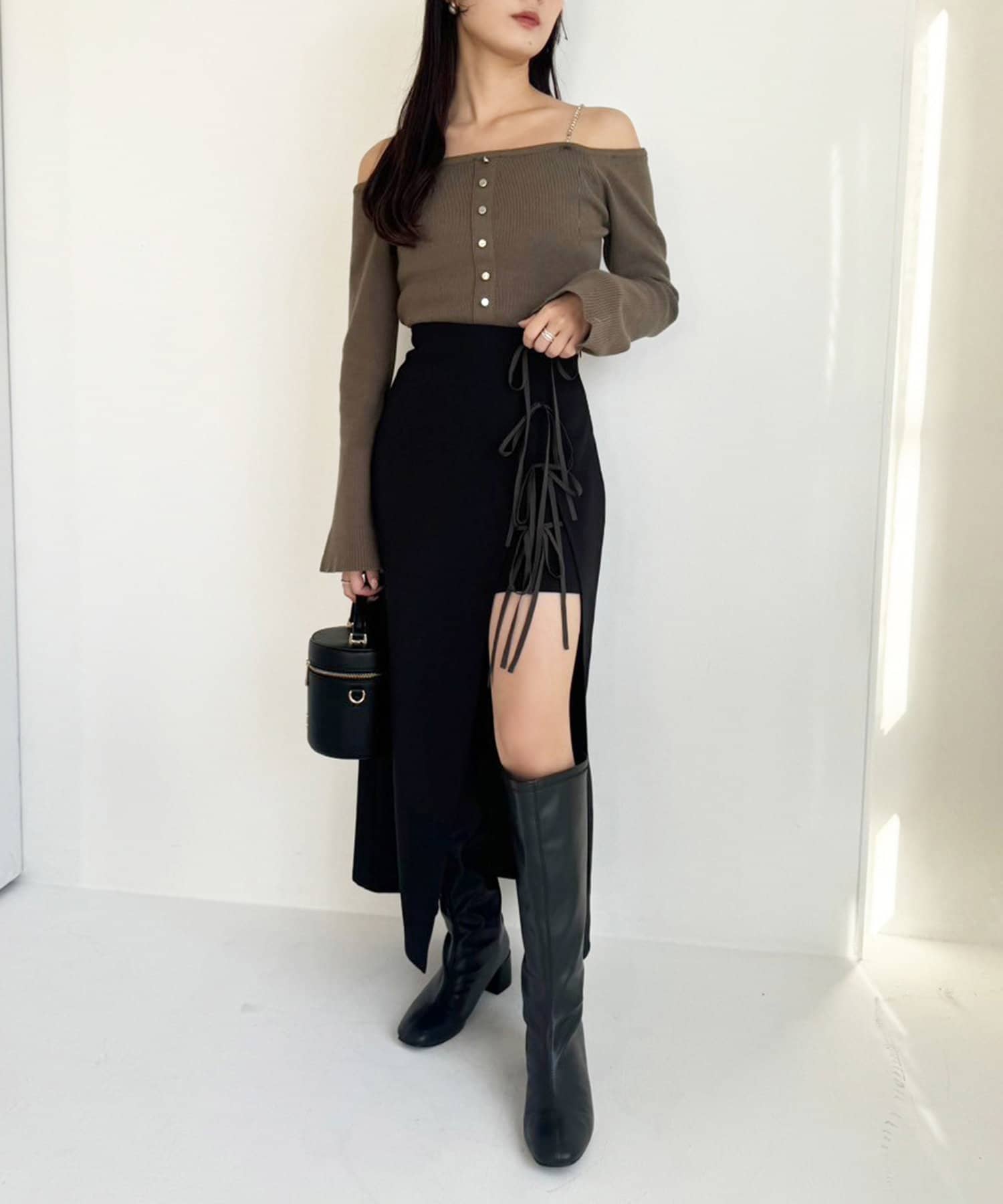 伸縮性のあるリブニットで、程よく身体にフィットし着心地も抜群。