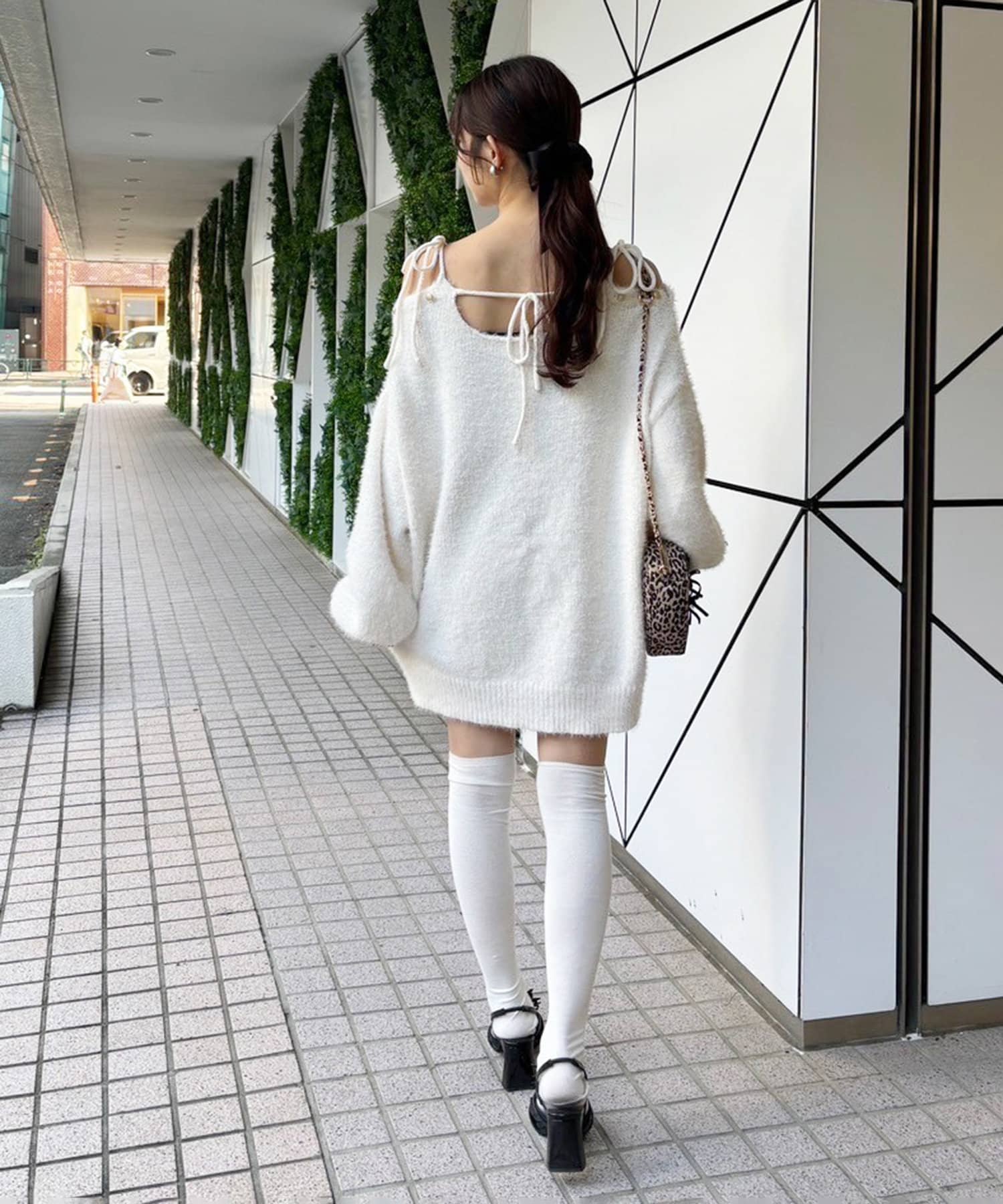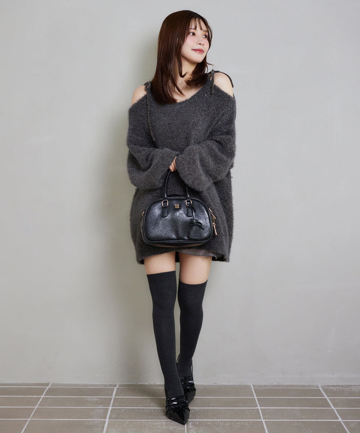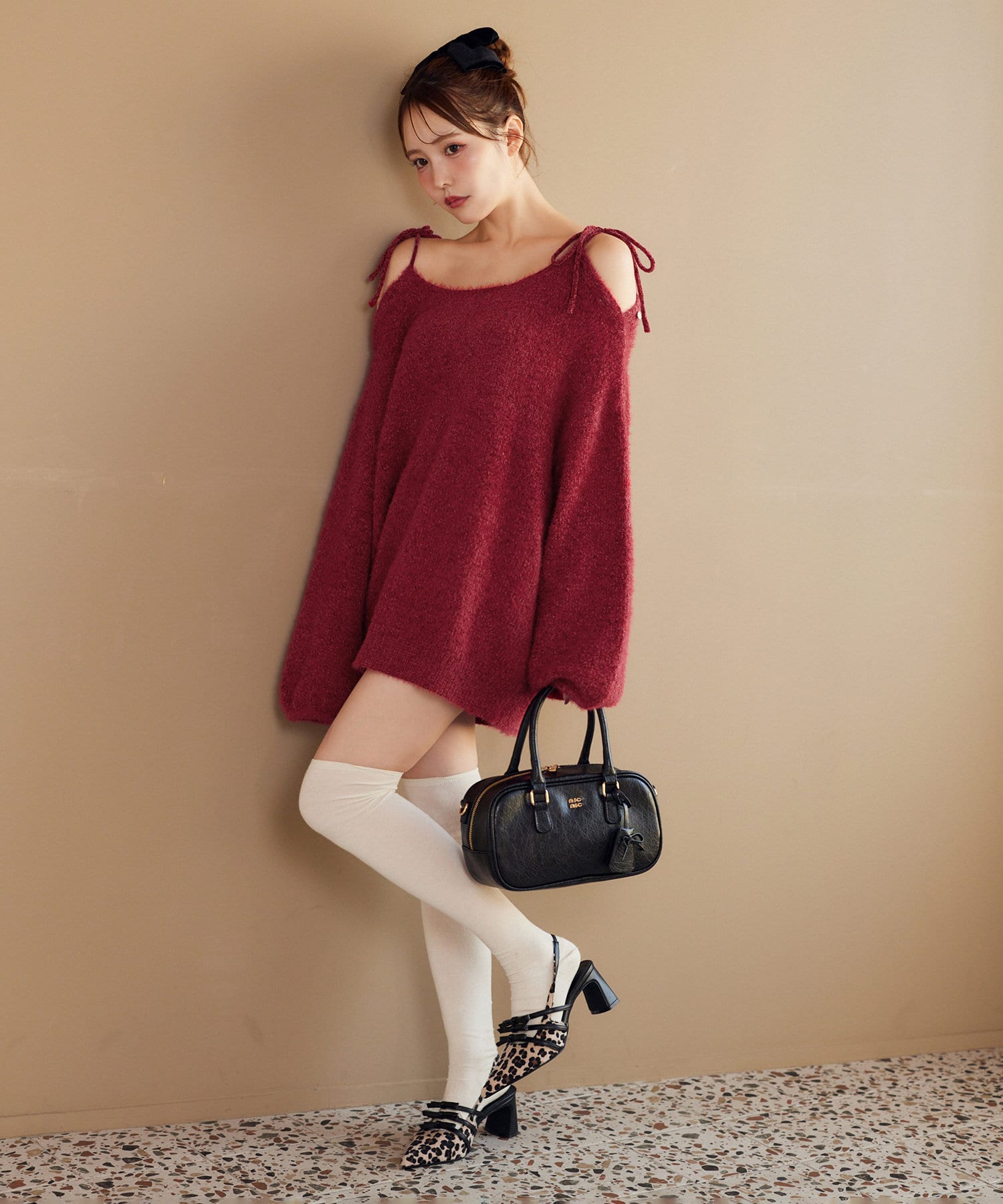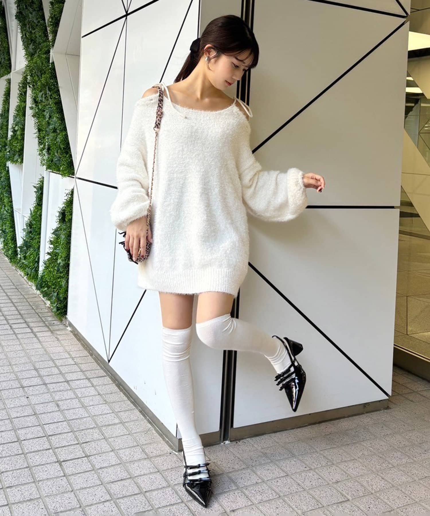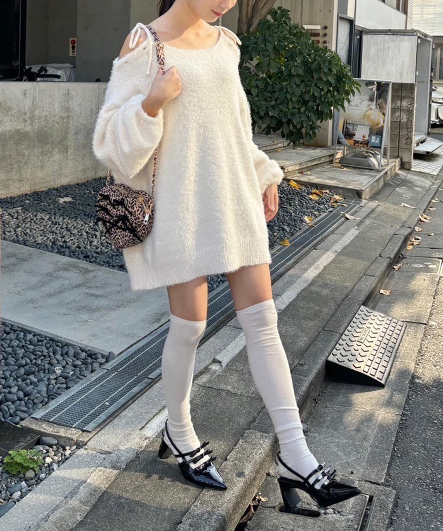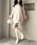 足元はロングブーツで合わせるとあざとモテコーデが完成します。