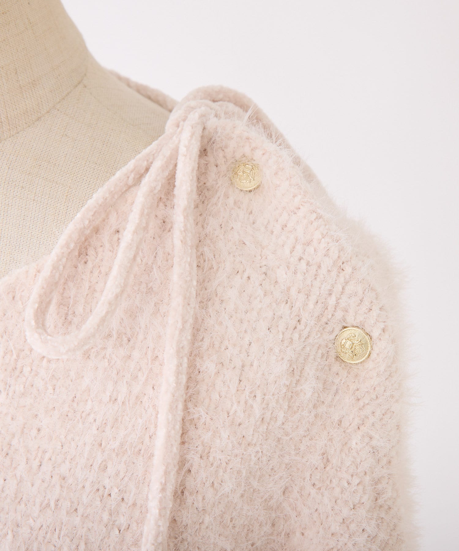 肩に付いたゴールドボタンが高級感ある仕上がりに。
