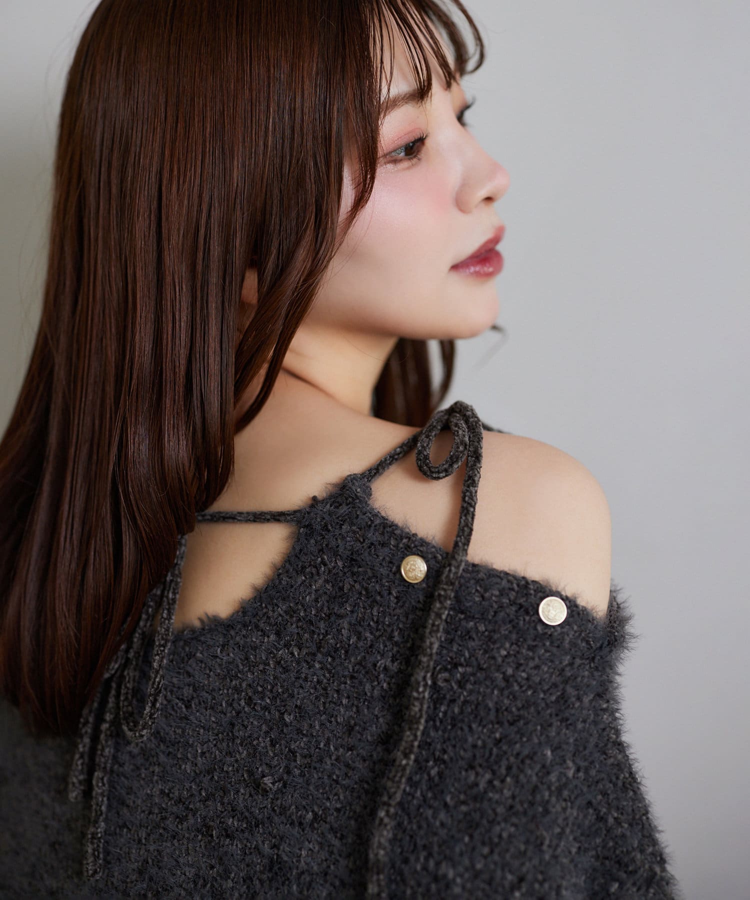 ボタンを開けるとヘルシーな肌見せが叶います。