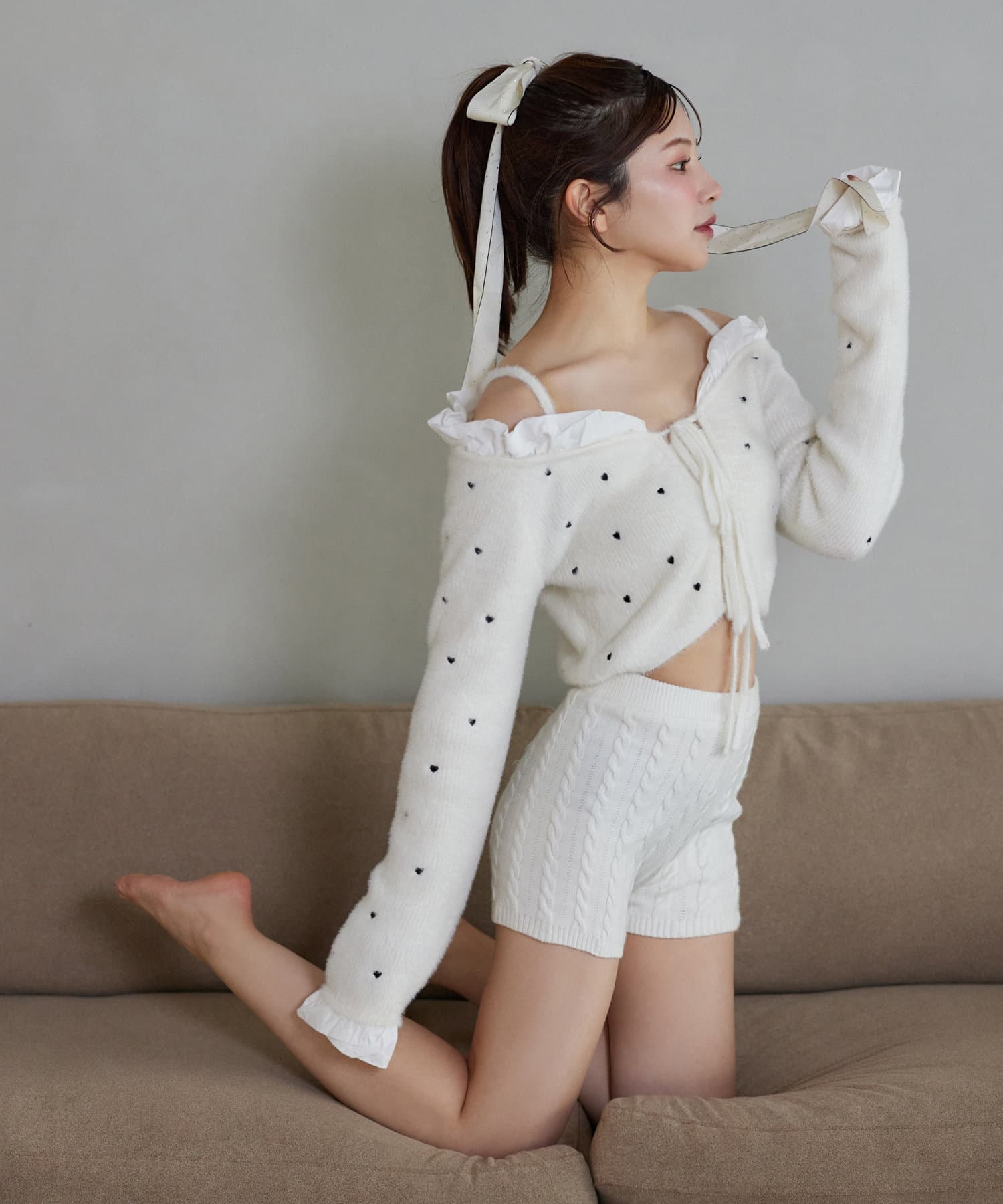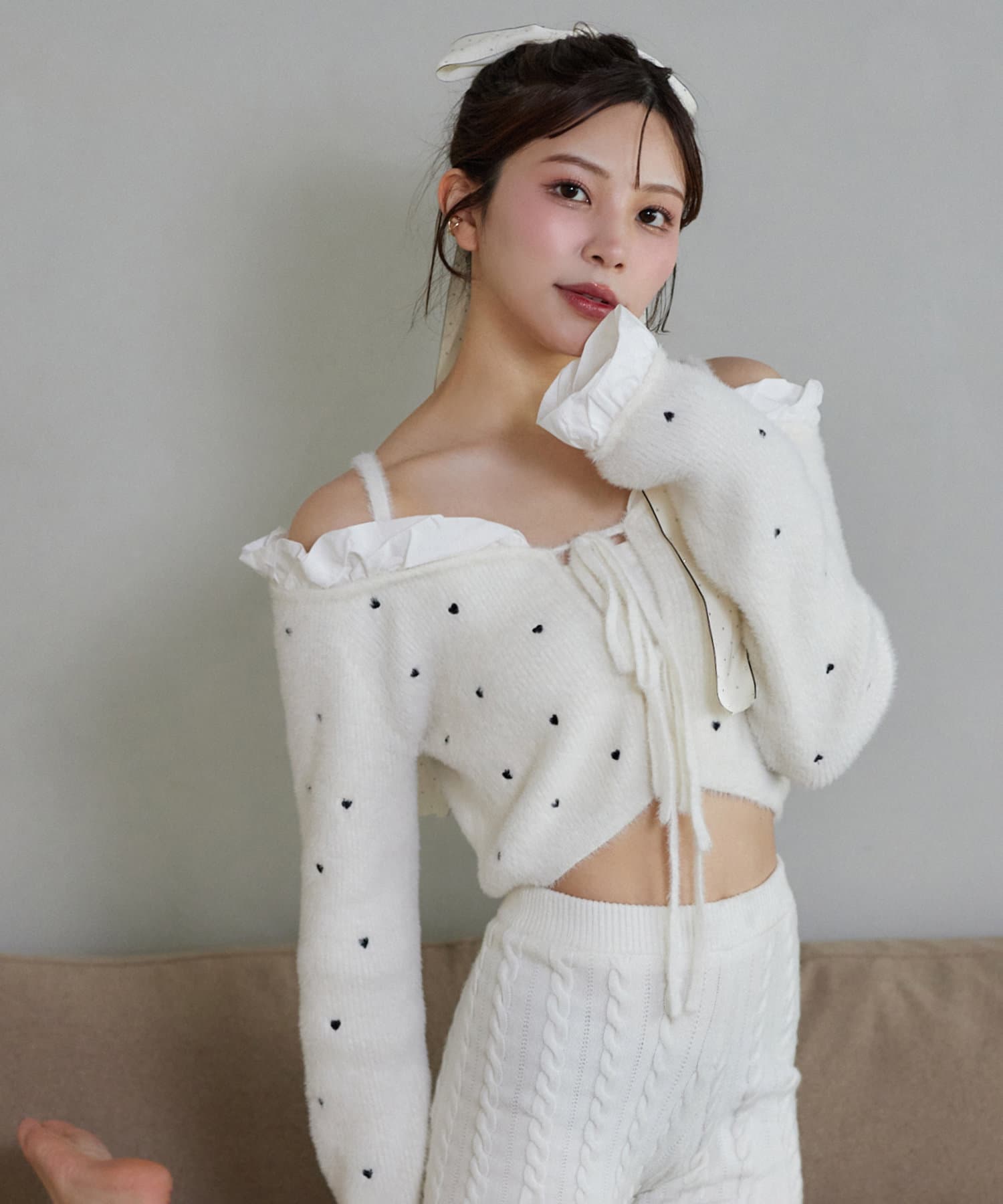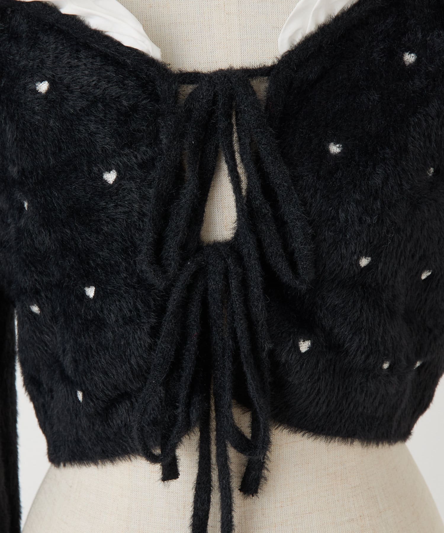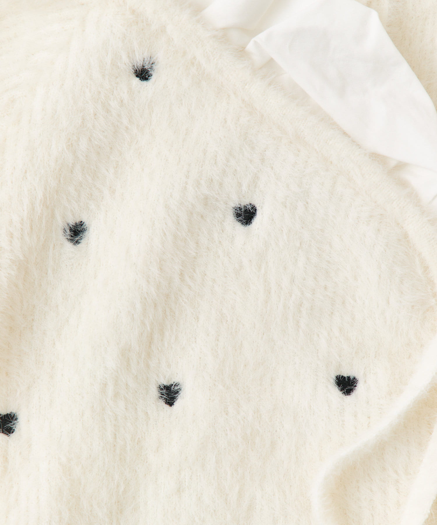 ふわふわな着心地でフロントのリボンとハートの刺しゅうが可愛らしさをプラスしてくれるニット
