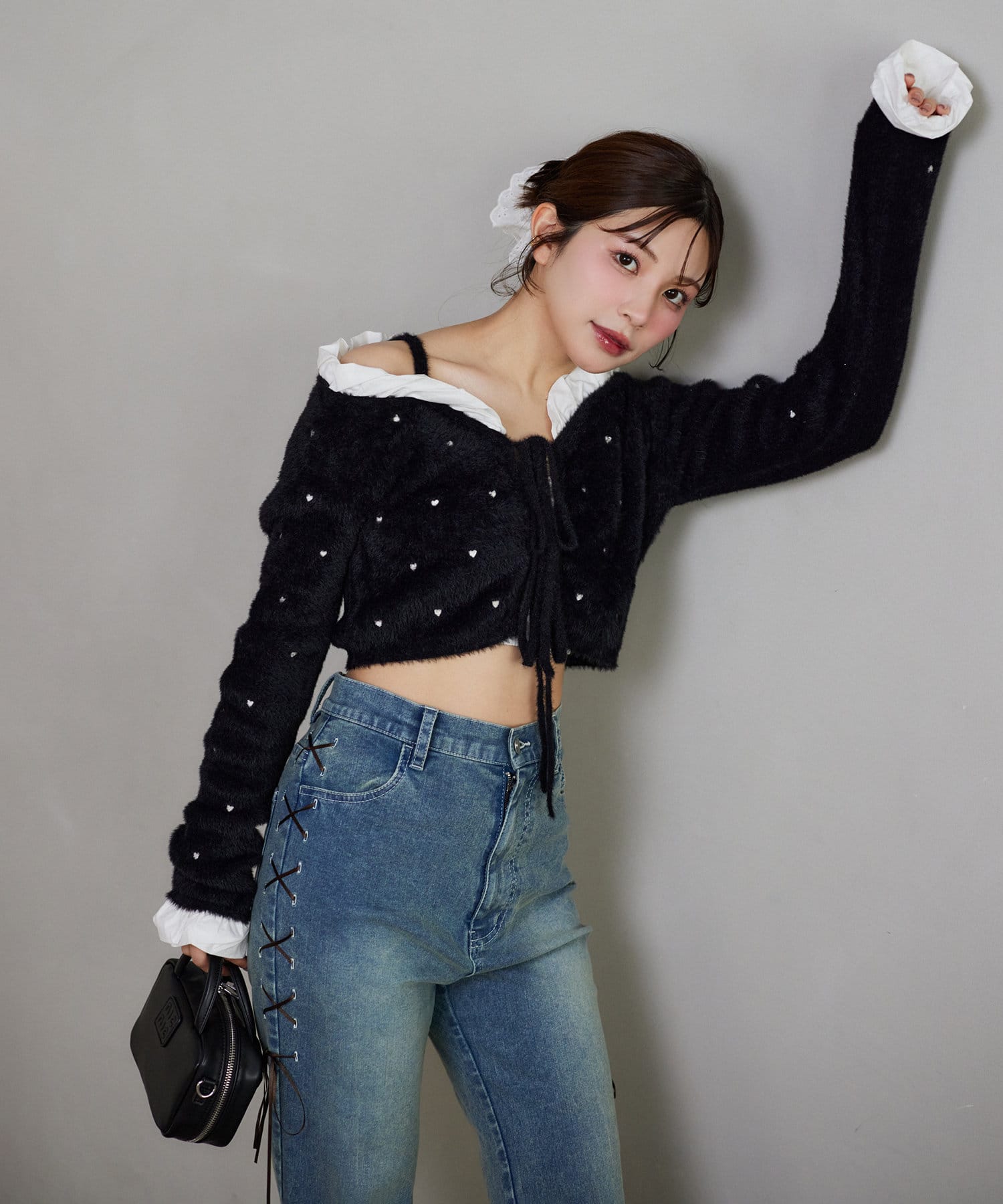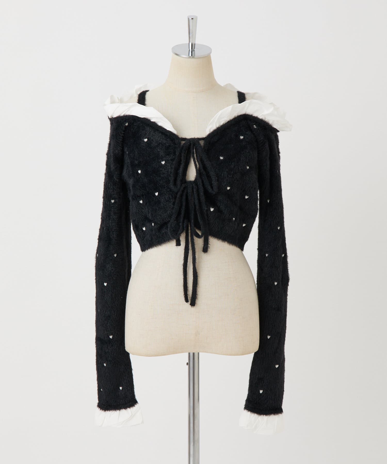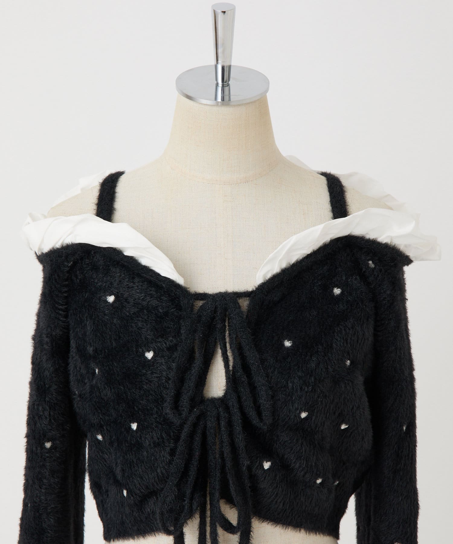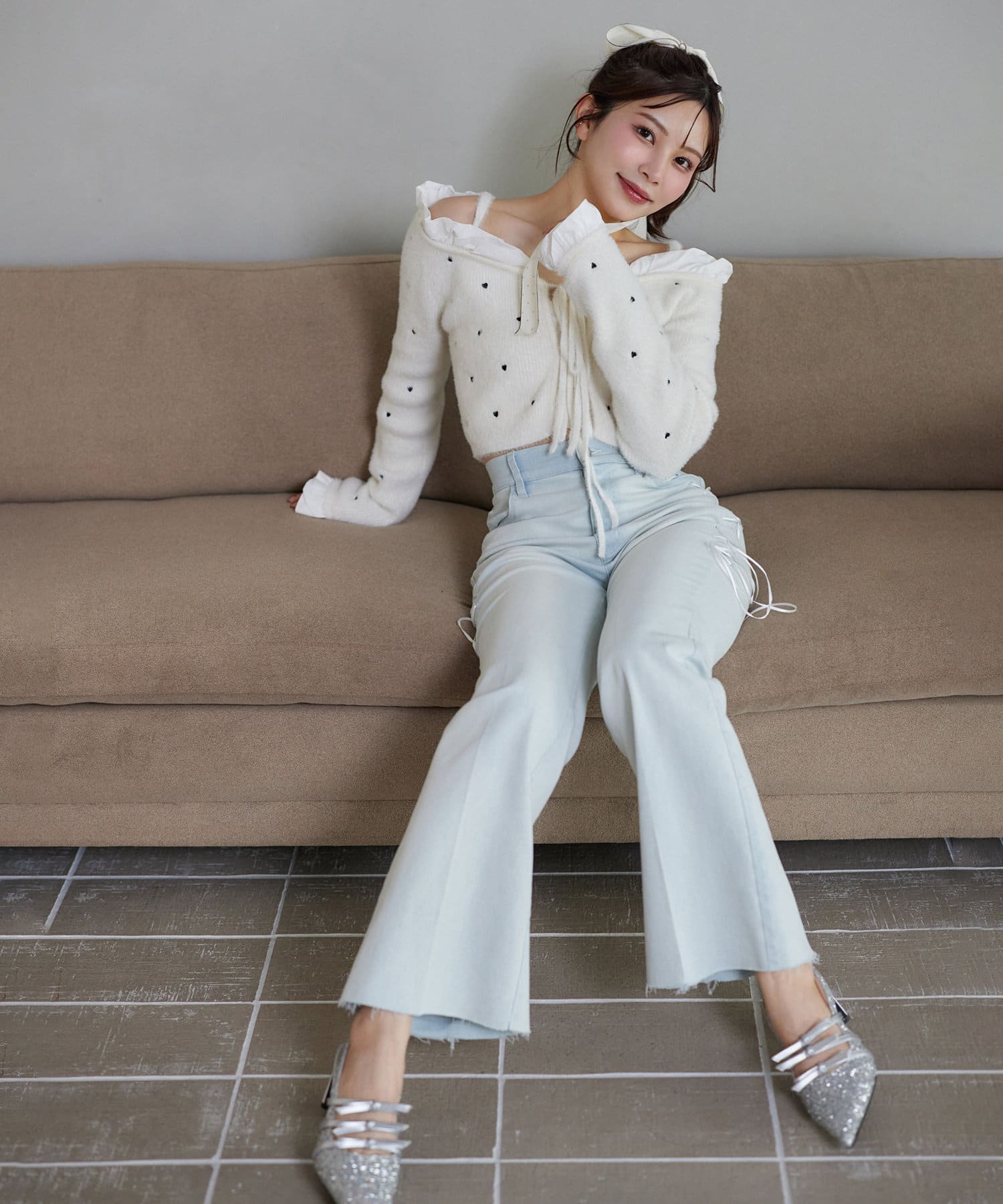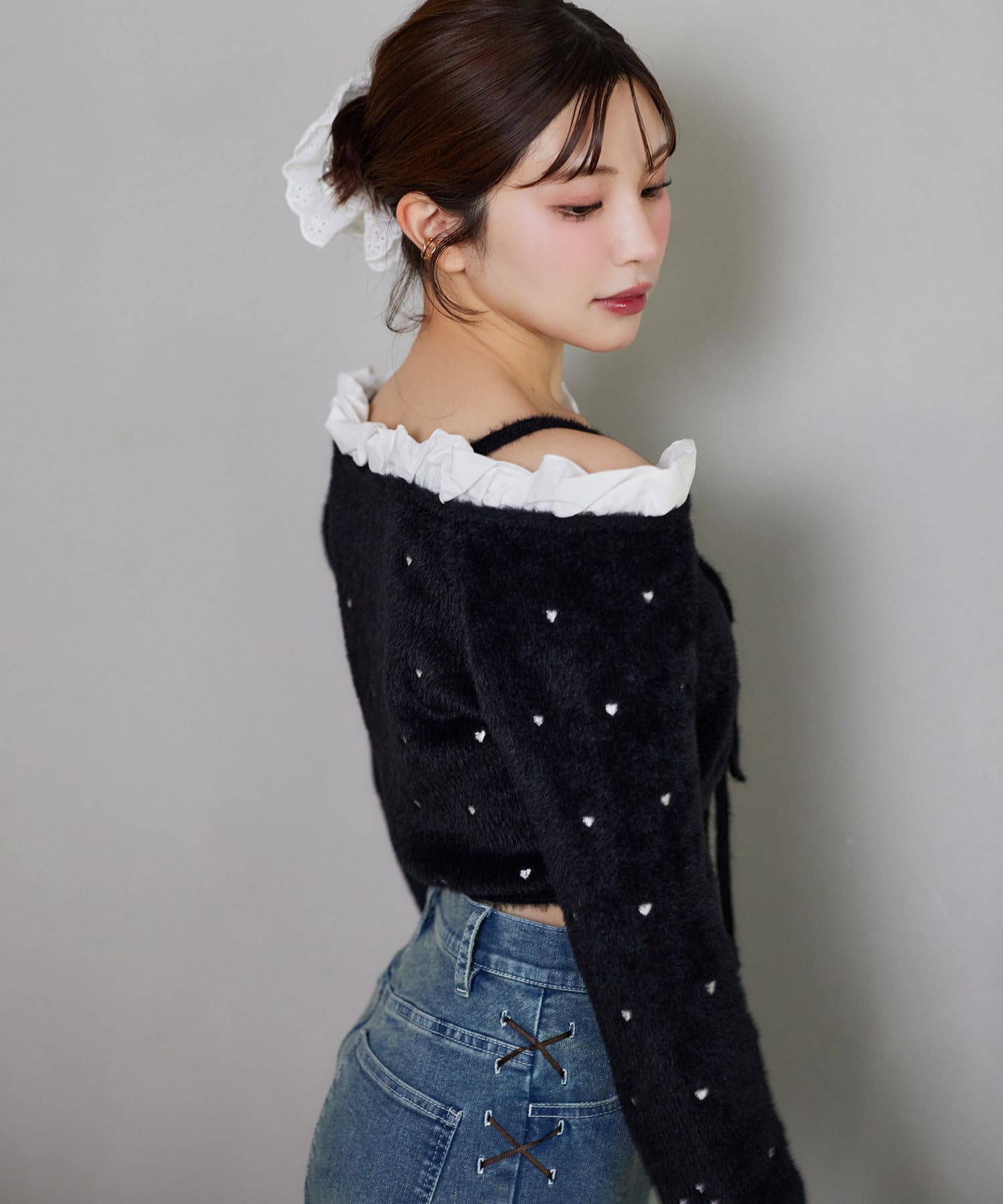 ふわふわな着心地でフロントのリボンとハートの刺しゅうが可愛らしさをプラスしてくれるニット