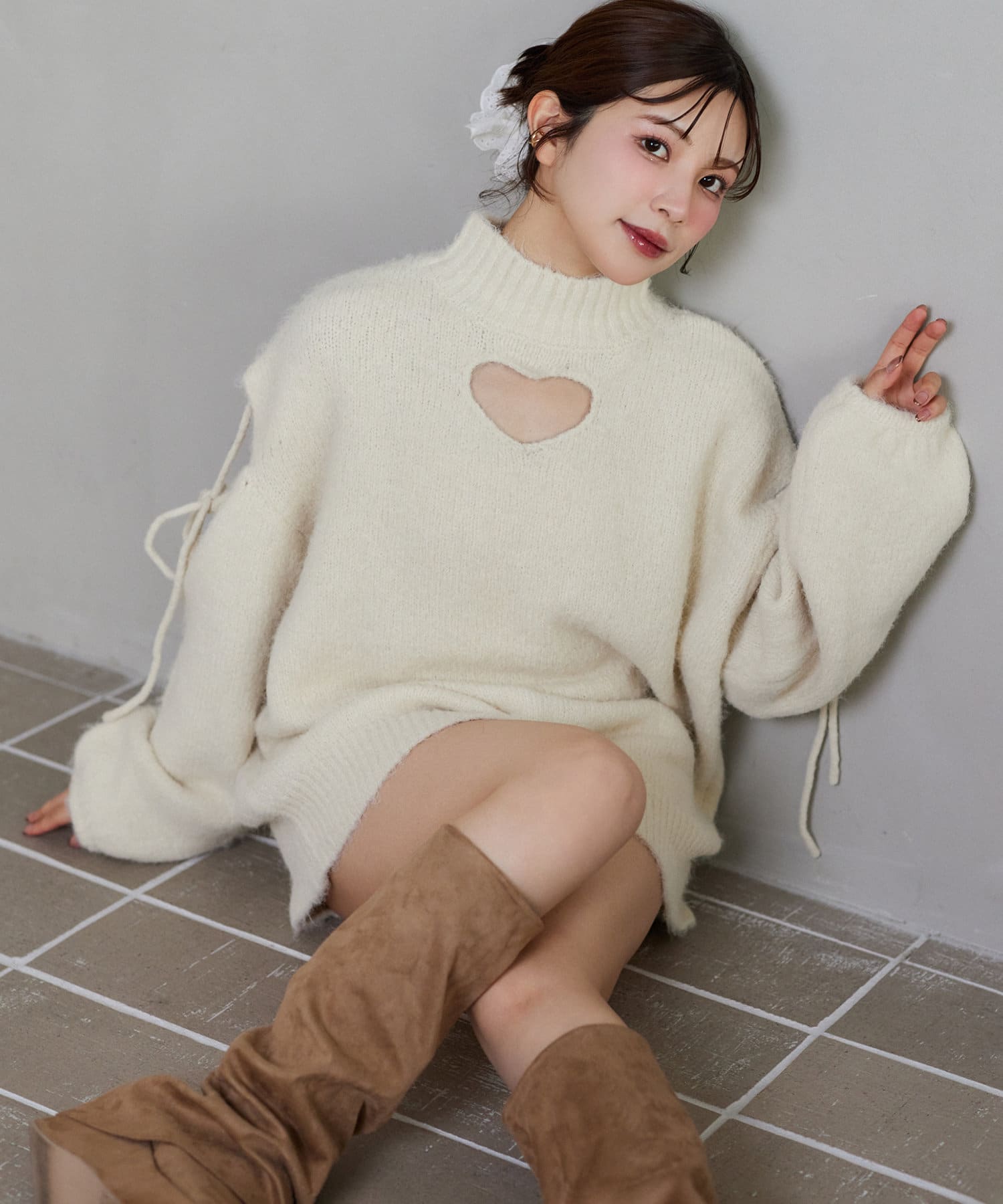 【Heart collection】肩リボンニットチュニック