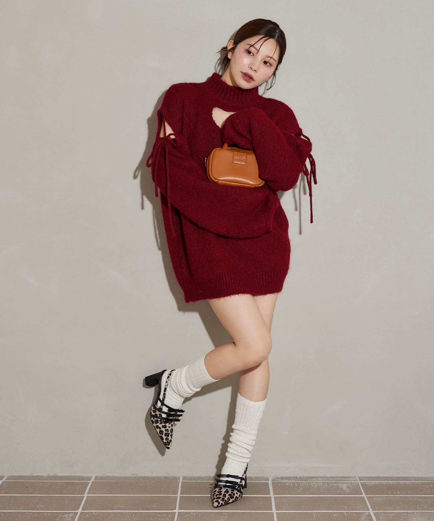 冬のあざとコーデにぴったりな肩あきのミニワンピ