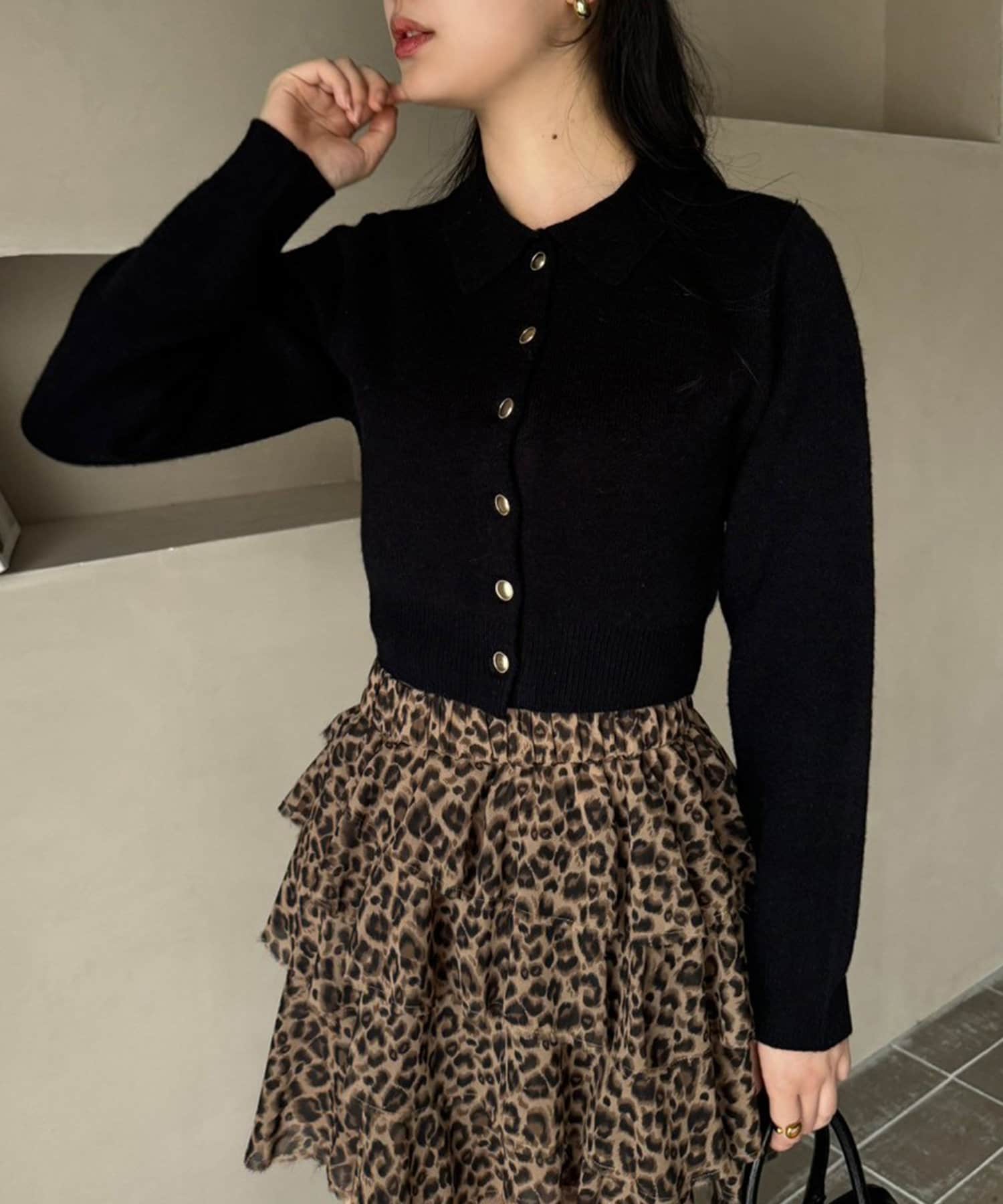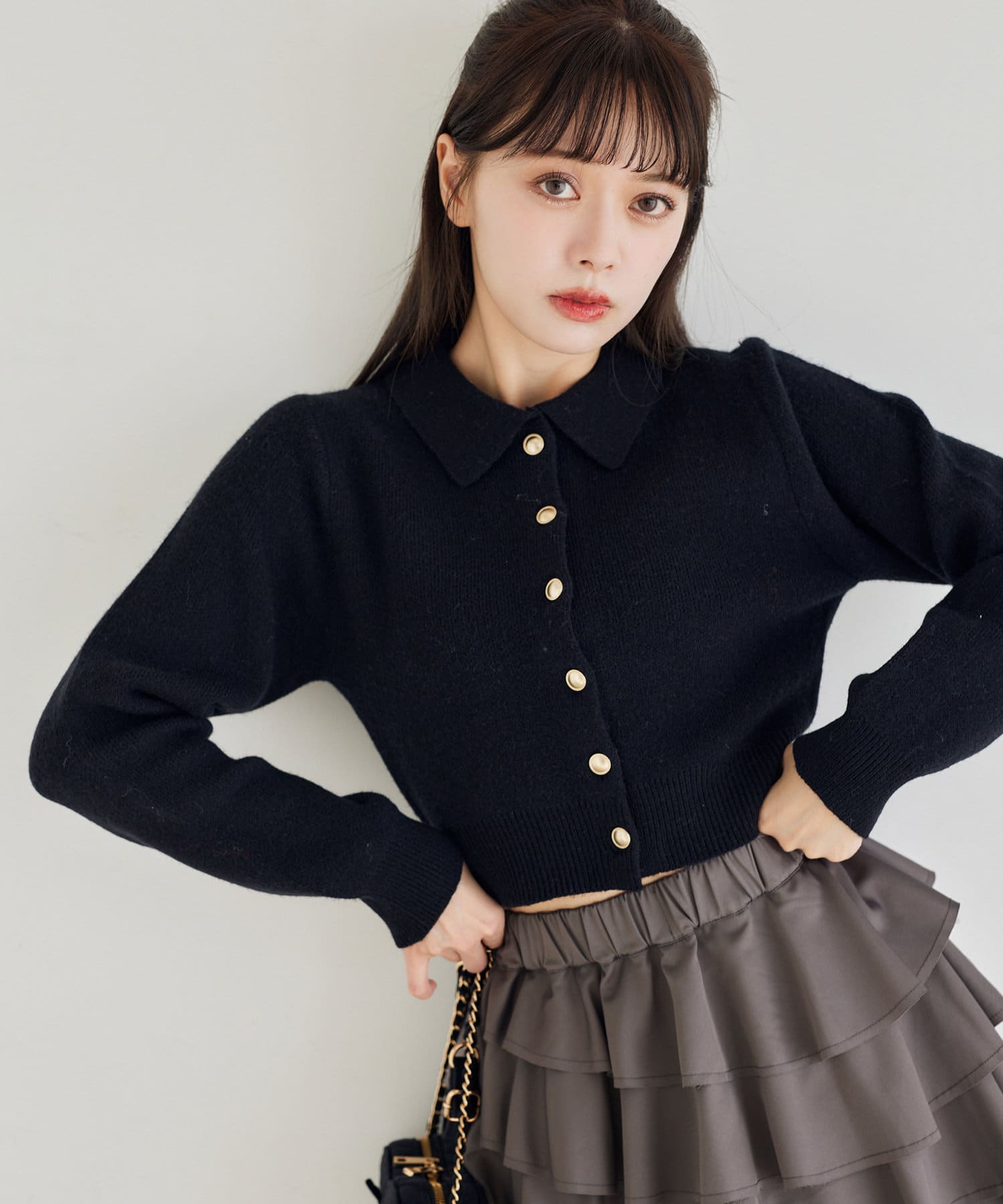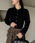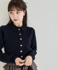 ゴールドボタンもちもちポロ襟ニット